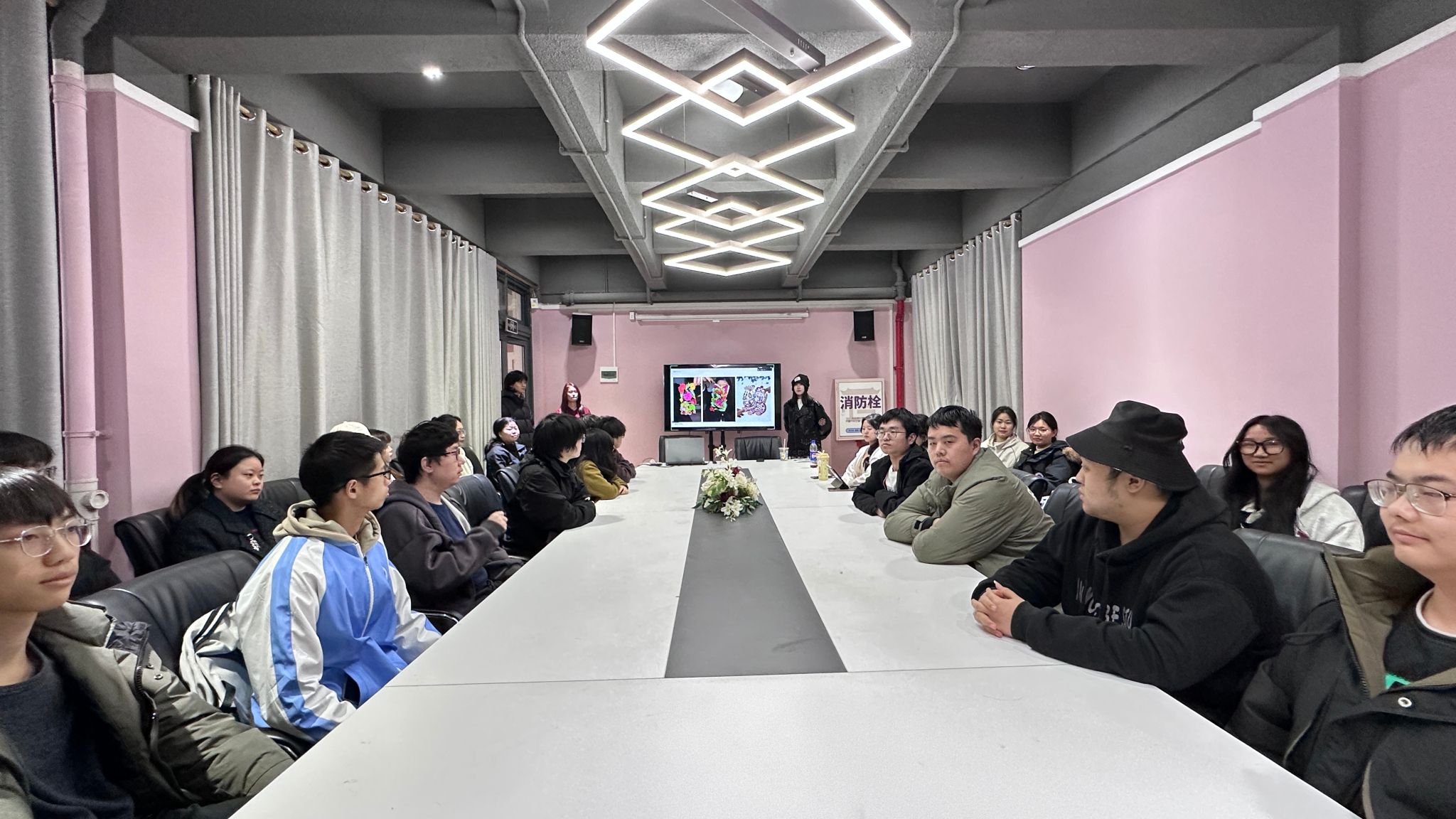 首期活动在别都书院多功能研讨室拉开帷幕,廖梦航老师以“如何设计一张海报”为主题,结合两大赛事的品牌定位与主题内涵,引导学生从赛事调性出发,提炼核心视觉元素。通过案例分析,廖老师强调“视觉设计是品牌无声的语言”,并指导学生如何通过色彩、构图、符号等要素传递赛事文化,为后续创作奠定理论基础。现场35名学生通过互动讨论,逐步明晰从主题延展到视觉落地的设计逻辑。