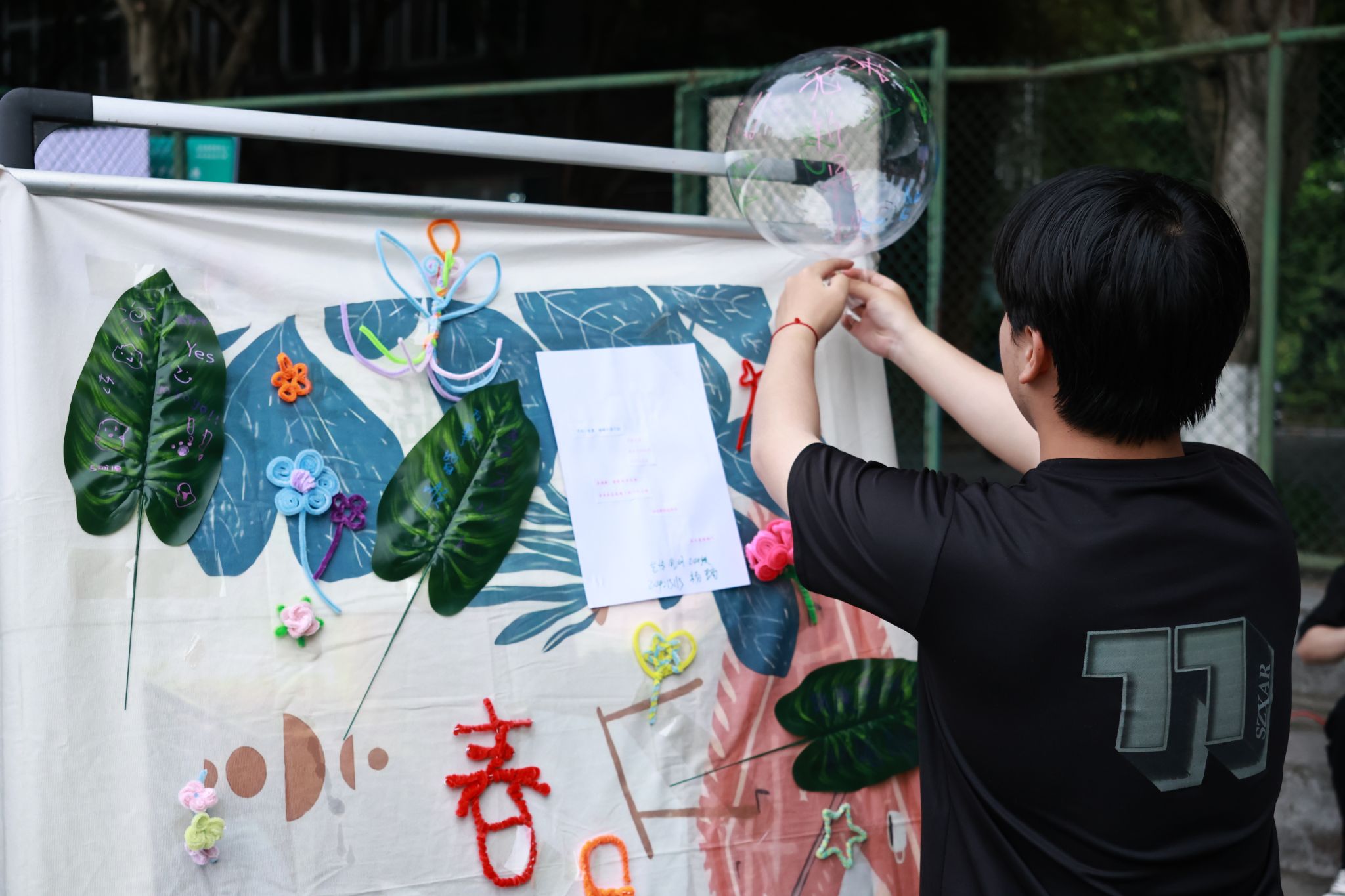 现场氛围热烈而欢快,同学们彼此分享着创作灵感,交流声此起彼伏。“你这句诗写得好有意境,是怎么想到的呀?”“我是看到气球飘起来,突然有了灵感。”大家相互探讨、互相启发,在交流中碰撞出更多的创意火花,让诗歌创作更具即时性和个性化。当我们把诗歌从稿纸中解放出来,让它成为可触摸、可分享的实体,才会真正意识到——诗歌不是遥不可及的阳春白雪,而是藏在生活褶皱里的心跳。