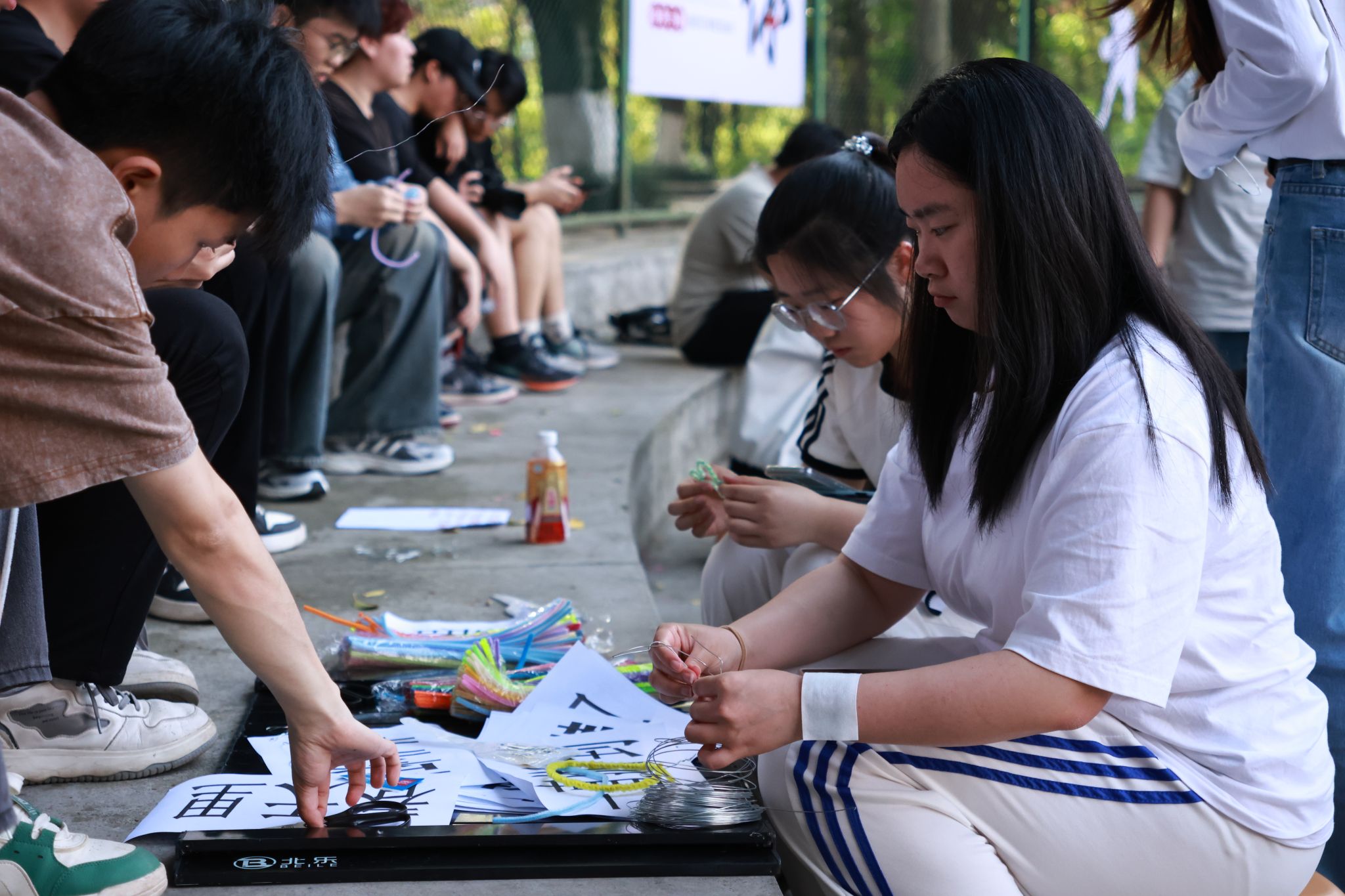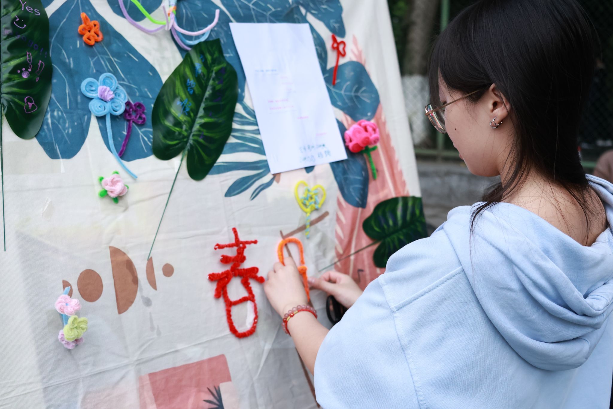 这种将平面诗句转化为立体艺术呈现的全新形式,让同学们兴奋不已,许多同学坦言,这是他们第一次正式创作诗歌:“今天才发现,原来诗可以长在气球上、绕在铁丝里,甚至藏在每一次弯折的弧度中。”大家在制作过程中感受着诗歌别样的魅力,尽情释放着创意与才华。