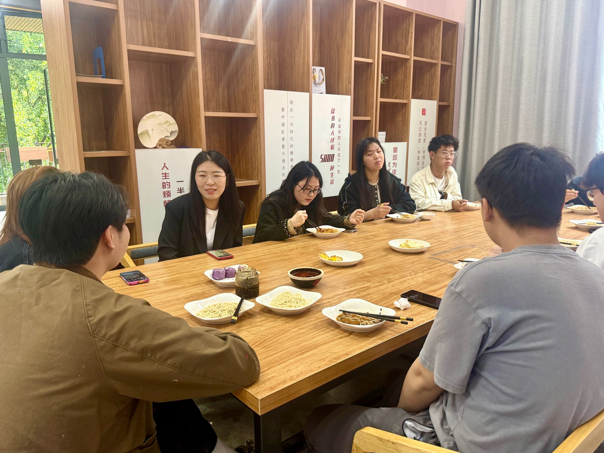 从汤圆到面条,从灶台到职场,别都书院将“早餐会”升维为“育人IP”,构建师生“1+N”协同体系:以“朋辈导师”机制邀请书院学生分享“校园早餐故事”,用“实际案例”深入解析生活困惑,以“成长档案”追踪学生职业认知迭代。在这里,就业焦虑被熬煮成暖胃粥,职业迷茫被翻炒成醒神茶,而书院始终是那个掌勺的“大家长”——用美食的温度熨平成长的褶皱,以空间的活力点燃前行的星火。