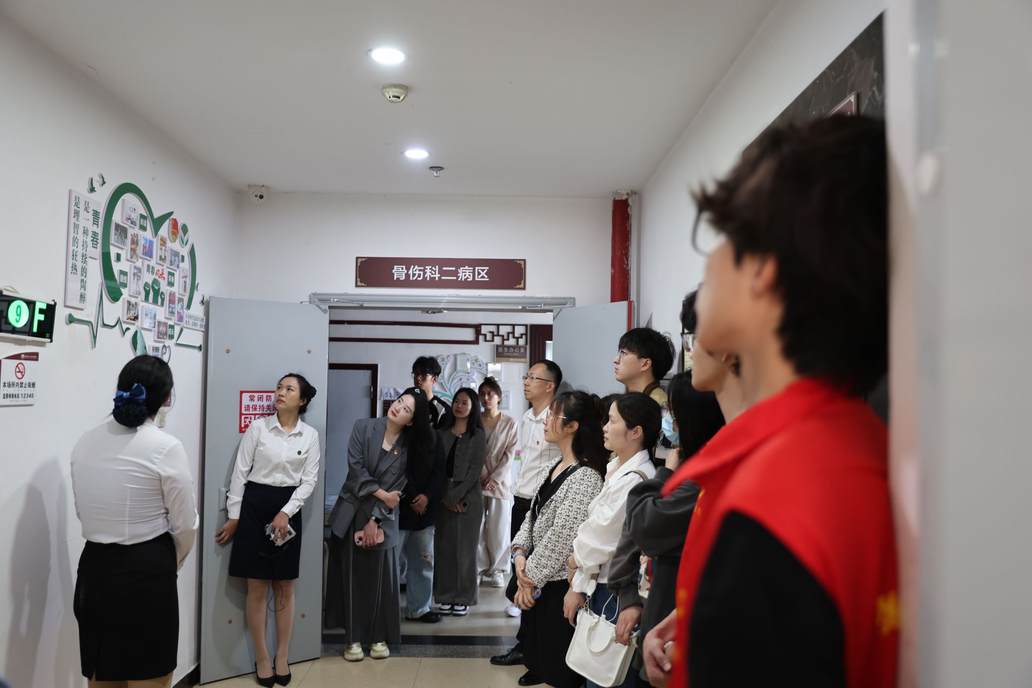 会前,在合川中医院青年医护代表人员的带领下,重庆移通师生参观了2022—2023年度市级优秀青年文明号集体“骨伤科”,了解到青年文明号的工作内容、岗位监督机制、作用发挥。同时,移通师生跟随合川区中医院青年中医师进行养生八段锦体验,在一招一式中调和身心脉络,从而加深对中医药文化的认同感。