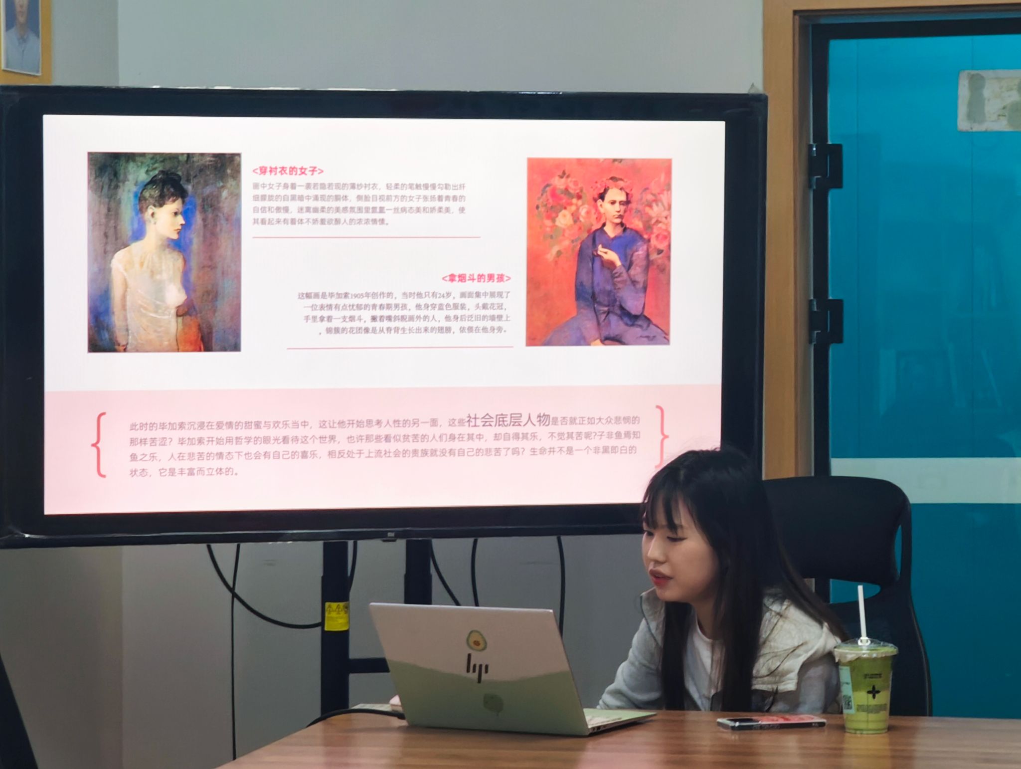 为深化美育教育实践,培养学生多元审美素养。 2025年4月29日16时,廊桥书院举办的“在质疑中坚守:毕加索艺术人生的启迪”——“艺术团”第一期在廊桥书院二号楼树洞议事厅2顺利开展。本期活动以“毕加索的作品”为主题,主讲老师闫欣怡老师通过讲述毕加索在不同时期下,他的绘画风格以及创作故事,希望能让同学们多方面知晓毕加索的作品同时也让同学们能够意识到不要被传统的思维和方法所局限,要敢于尝试新的事物,勇于创新,才能不断取得进步和突破。