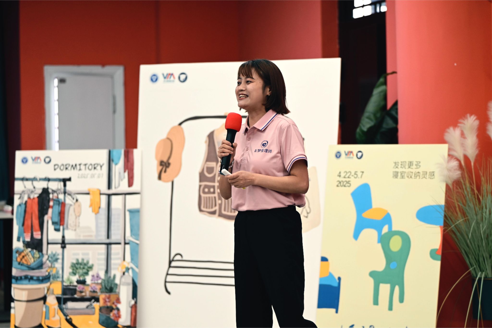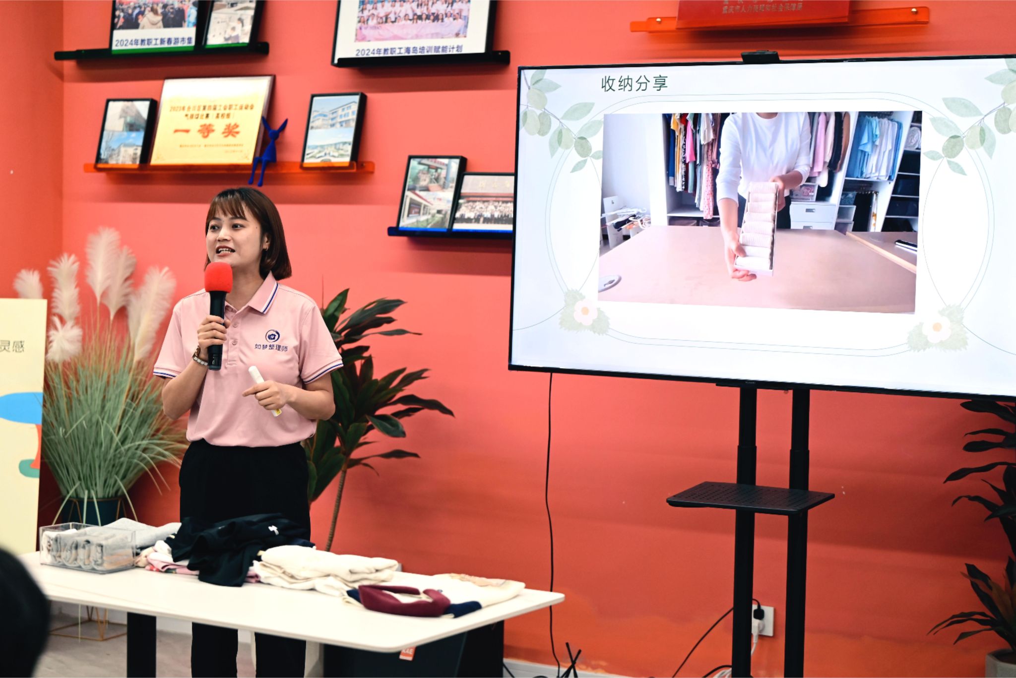 赛后互动环节,学生们更是踊跃提问,和收纳师一起探讨如何在小空间实现“高效”与“美感”的平衡、性价比最高收纳、包包难收纳等问题。这场沙龙不仅是一场技能的传授,更是一场关于生活哲学的启蒙,理论与实践的交融,让学生在趣味互动中掌握生活美学技能。