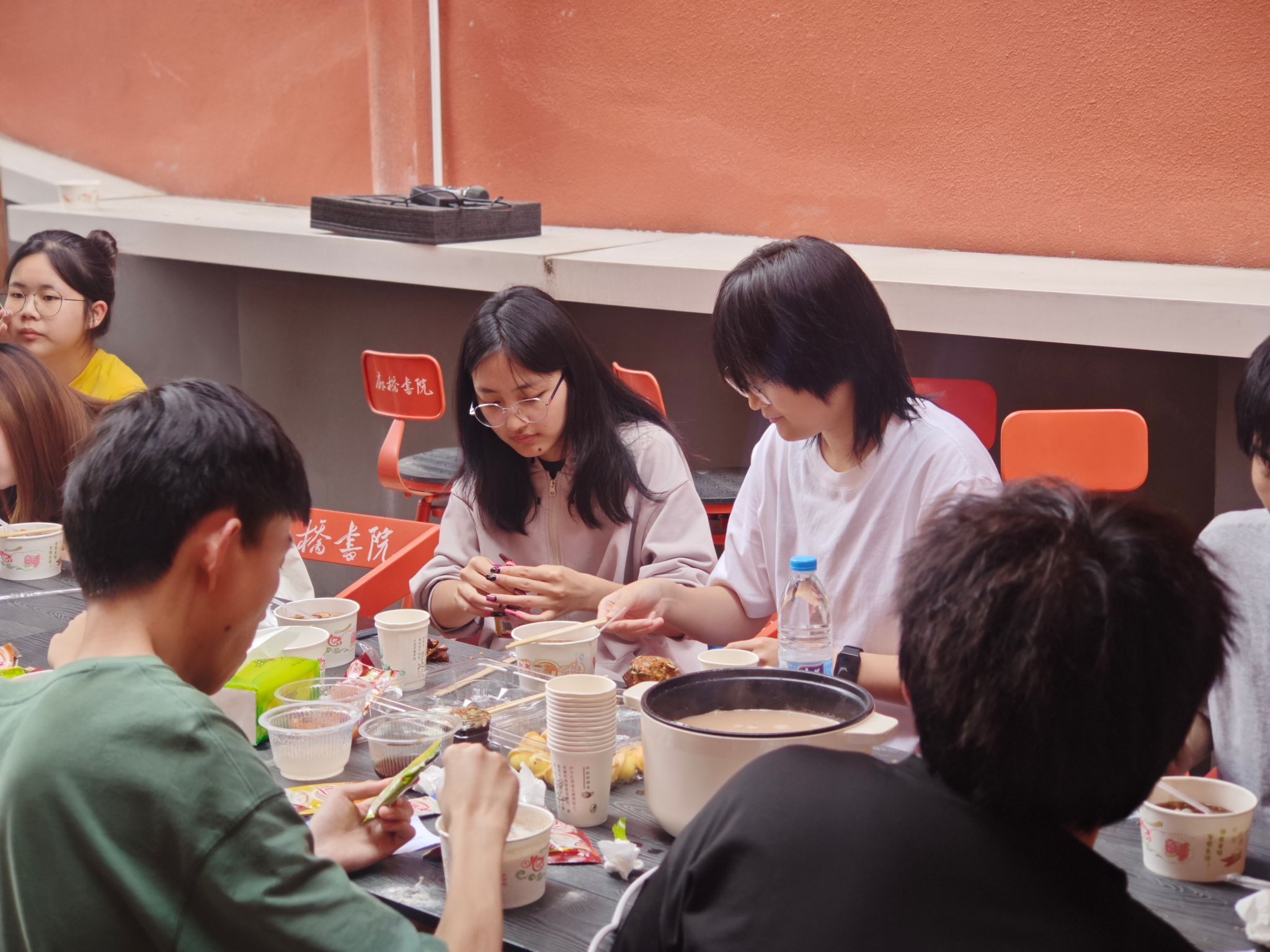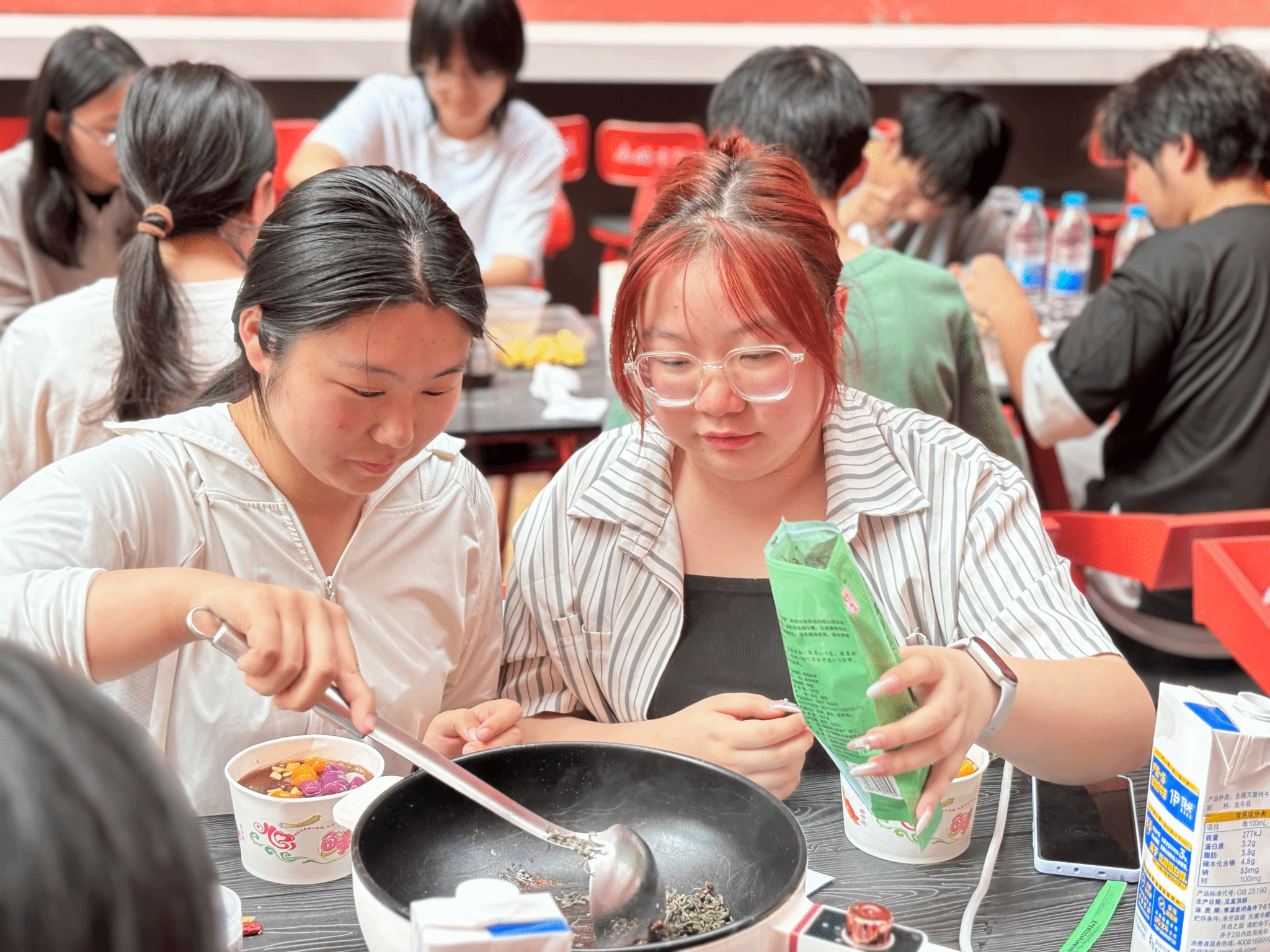 为激发同学们的创意实践能力,共同讨论奶茶社交文化的时代内涵。2025年5月9日,廊桥书院于廊桥书院1号楼与2号楼之间平台开展晚餐吐槽会,此次活动的主题是“从快乐水到社交文化”,旨在通过DIY甜水和讨论的方式为同学们搭建一个增强动手能力,自由讨论的平台,加强同学们们之间的交流,释放同学们的压力。
