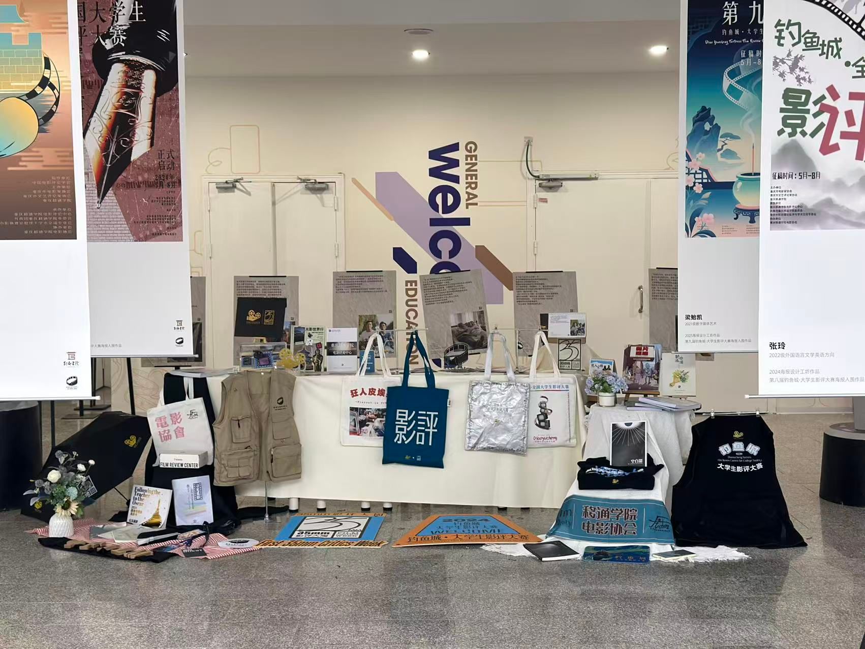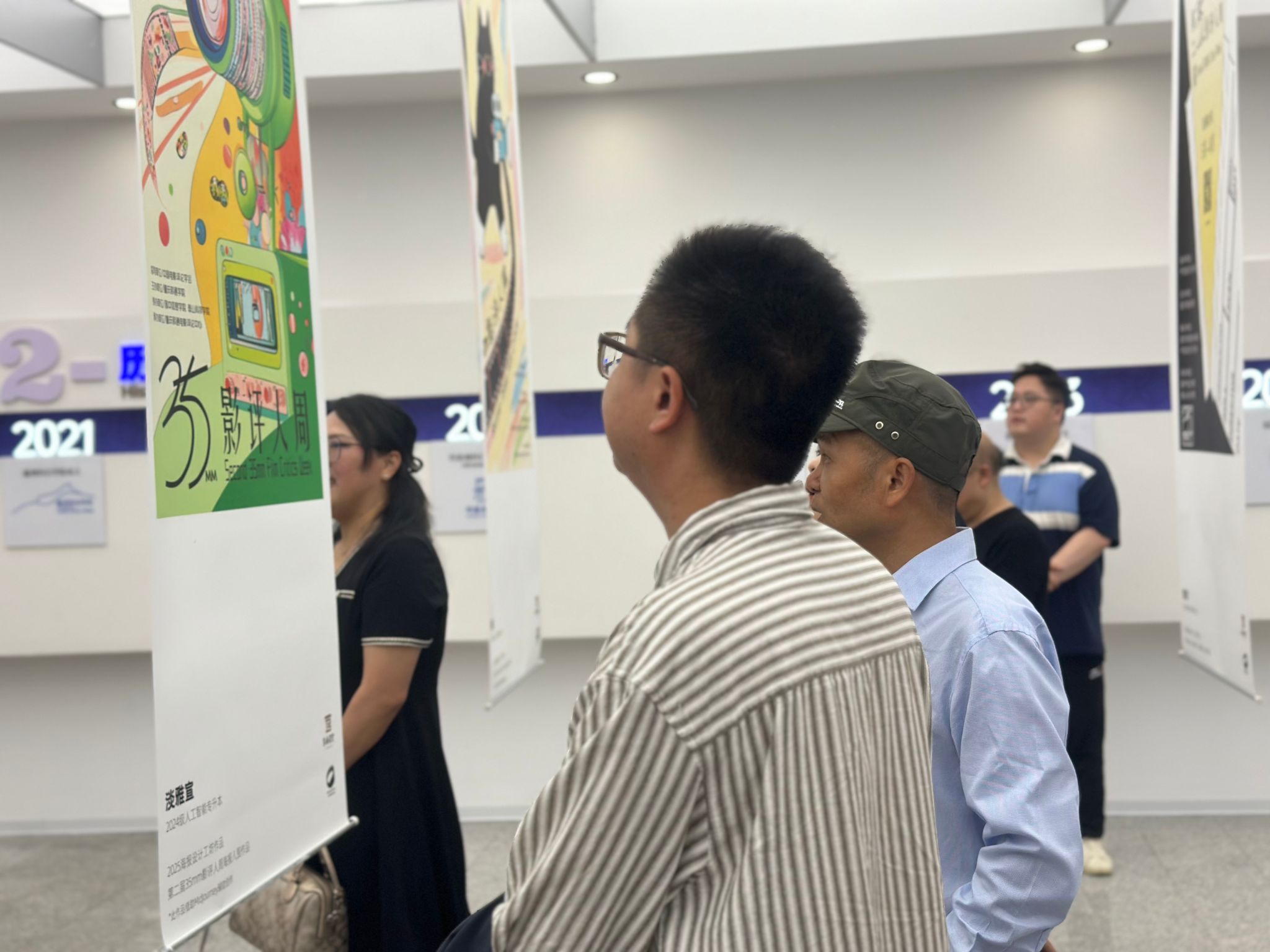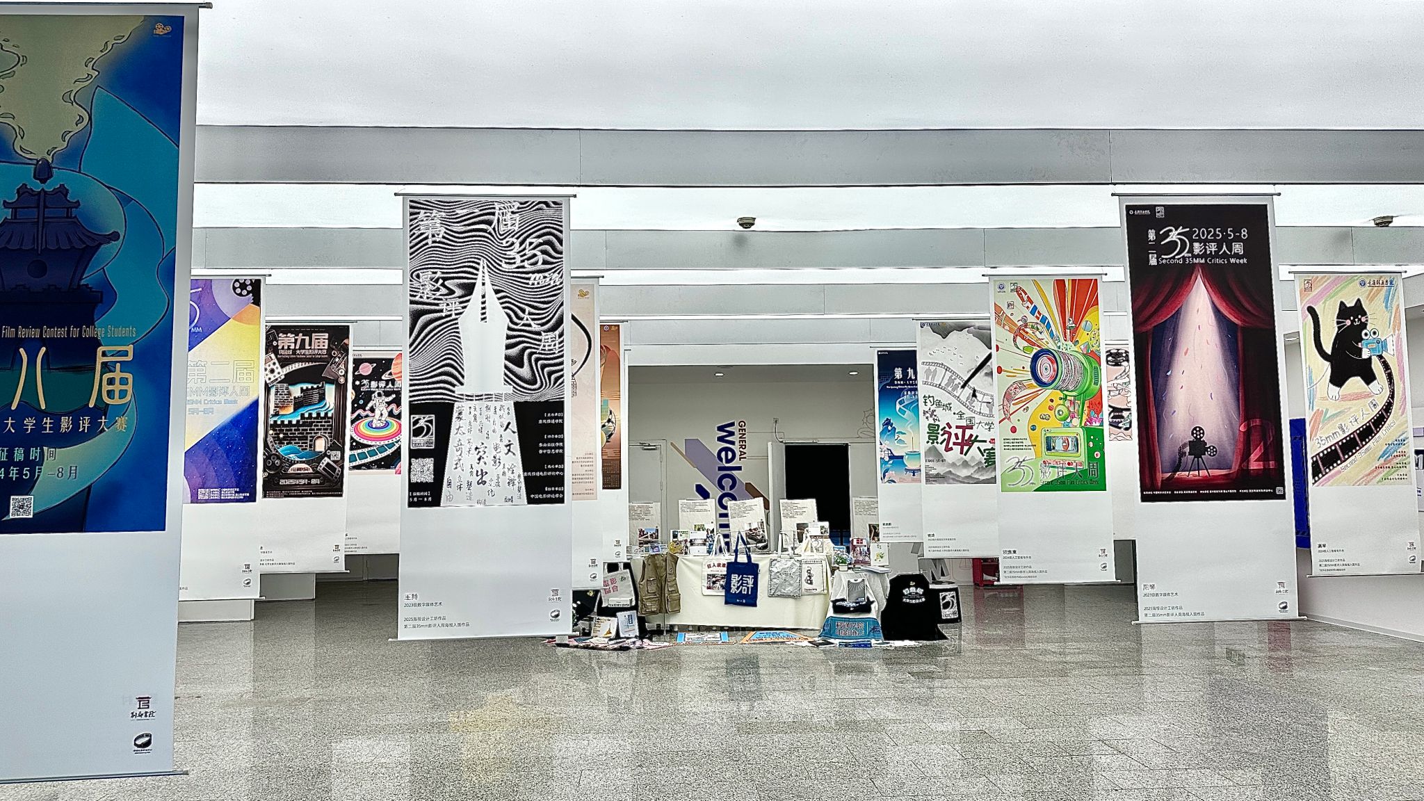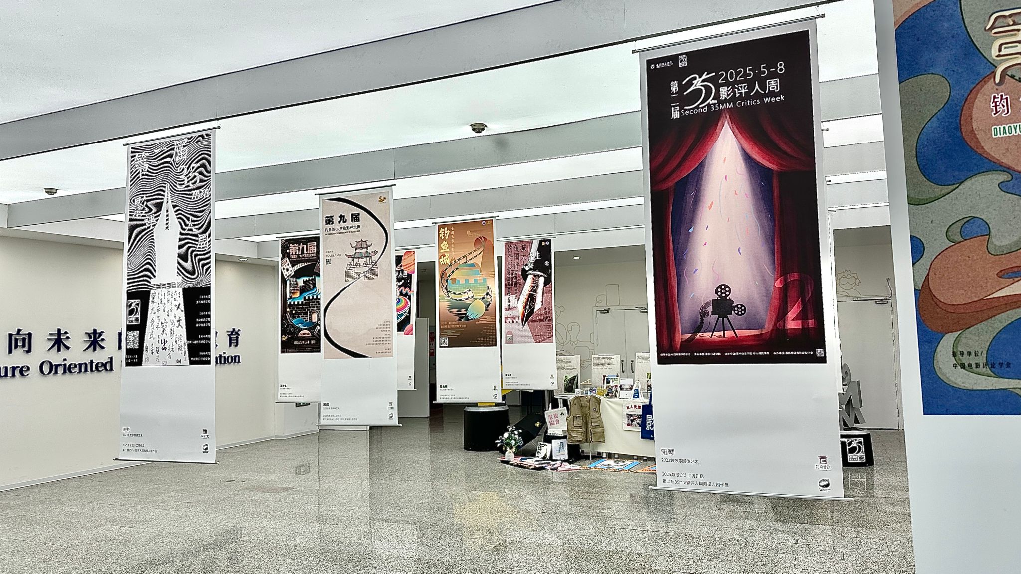 5月12日,学校北校区第九教学楼大厅宛如一座创意与文化交织的艺术殿堂,由别都书院与电影评论中心联合打造的“视YU主理人”项目工坊活动——“以影为索,腾云而来”主题成果展在此惊艳启幕。此次展览不仅是30余件作品的集中亮相,更是别都书院“视YU主理人”项目工坊育人成果的一次精彩呈现。30件为“第九届钓鱼城·大学生影评大赛”及“第二届35mm影评人周”两大赛事创作的海报作品,以独特的设计语言与创新表达,激活了影评赛事文化宣传,彰显出别都书院项目工坊在人才培养上的卓越成效。