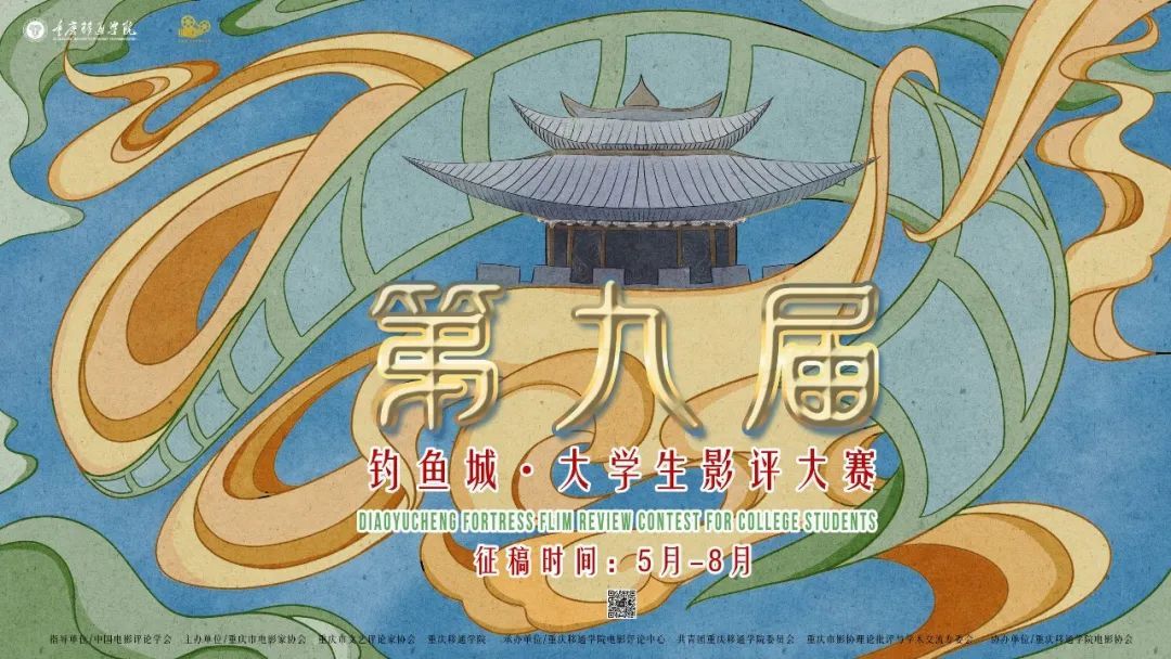“视YU主理人”项目工坊骨干学生阳琴的作品最终被选为赛事主视觉海报发布,她的作品灵感源于1961年动画电影《大闹天宫》的水墨美学与电影语言,以“胶卷”为核心意象,既取材于影像中的法宝——筋斗云与捆仙索,也象征影评对电影的穿透与缠绕。画面构图以胶卷环绕城楼,层层递进,营造出“多重时空并置”的剧场感,既展现对经典的回望,也为未来思维的提升留下更多想象空间。