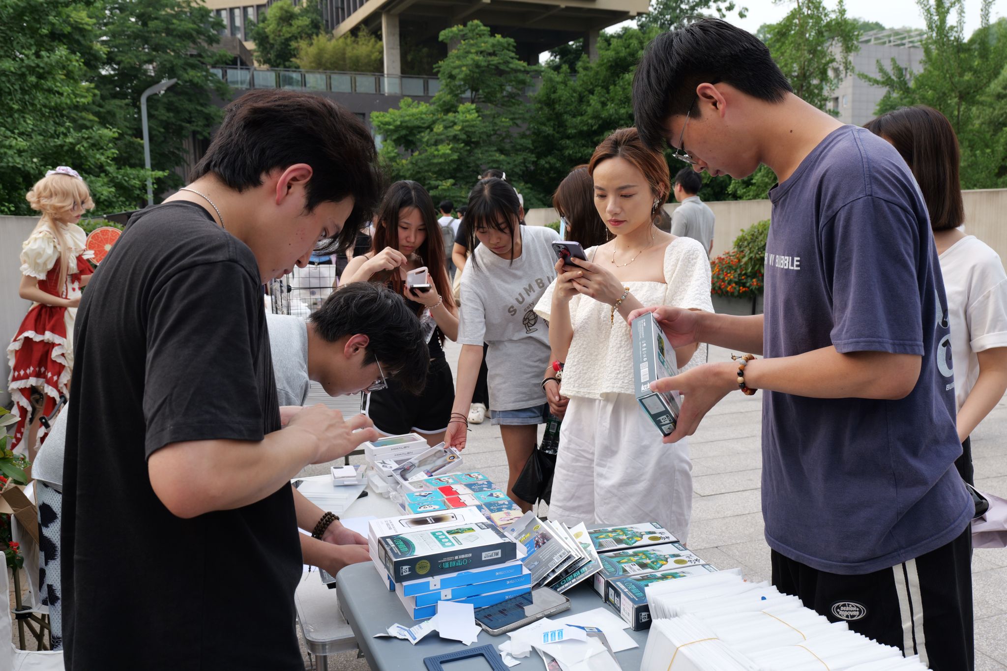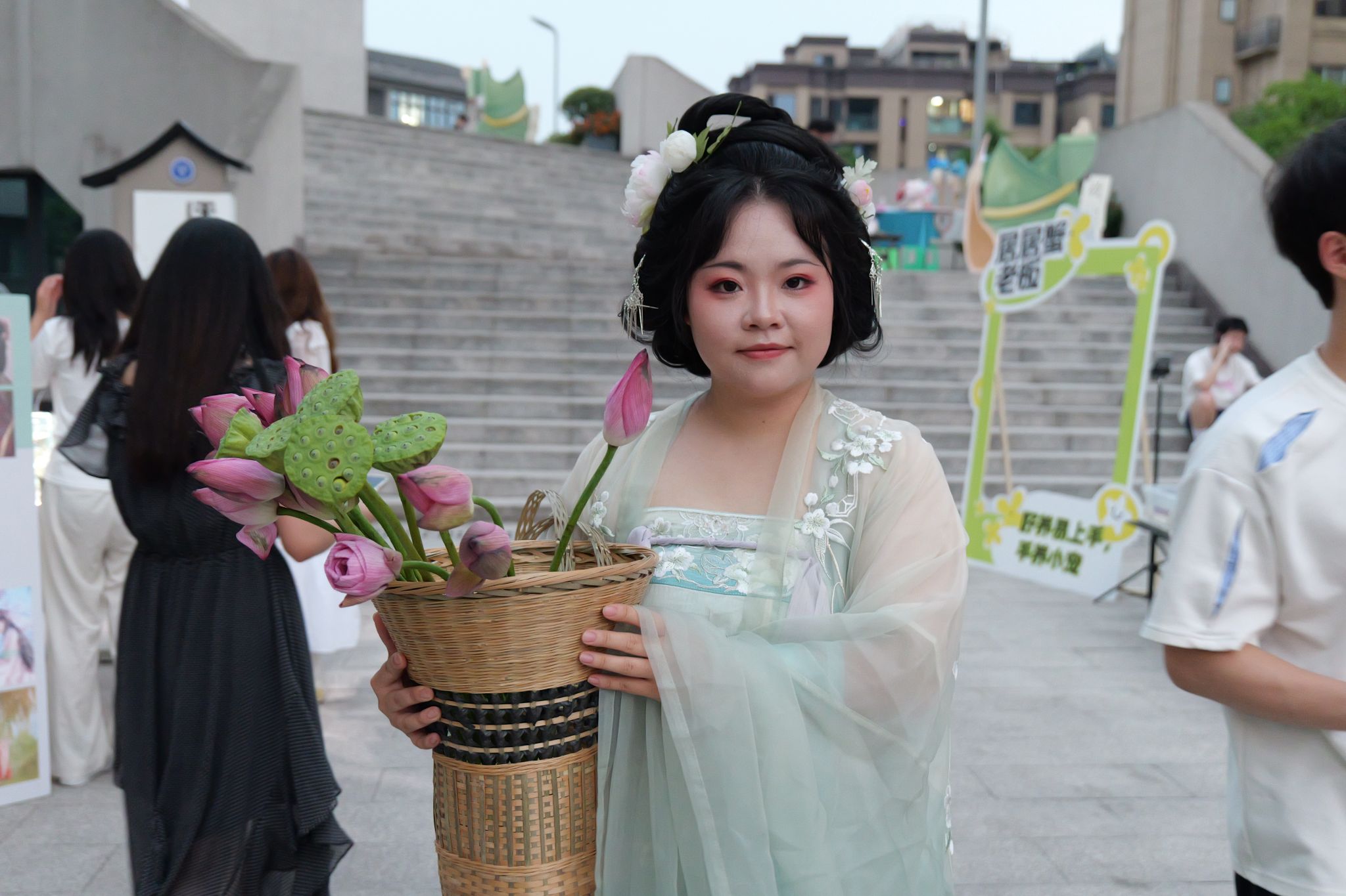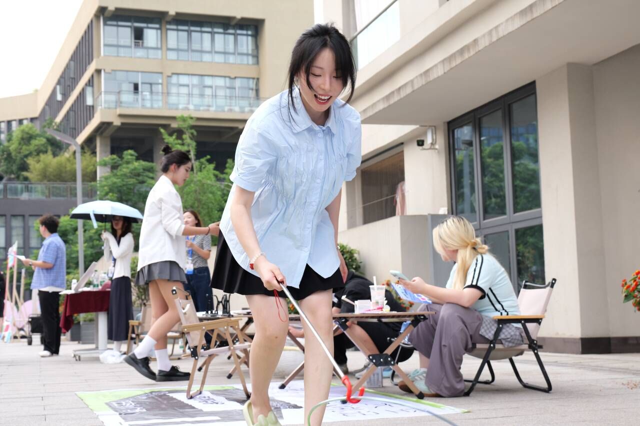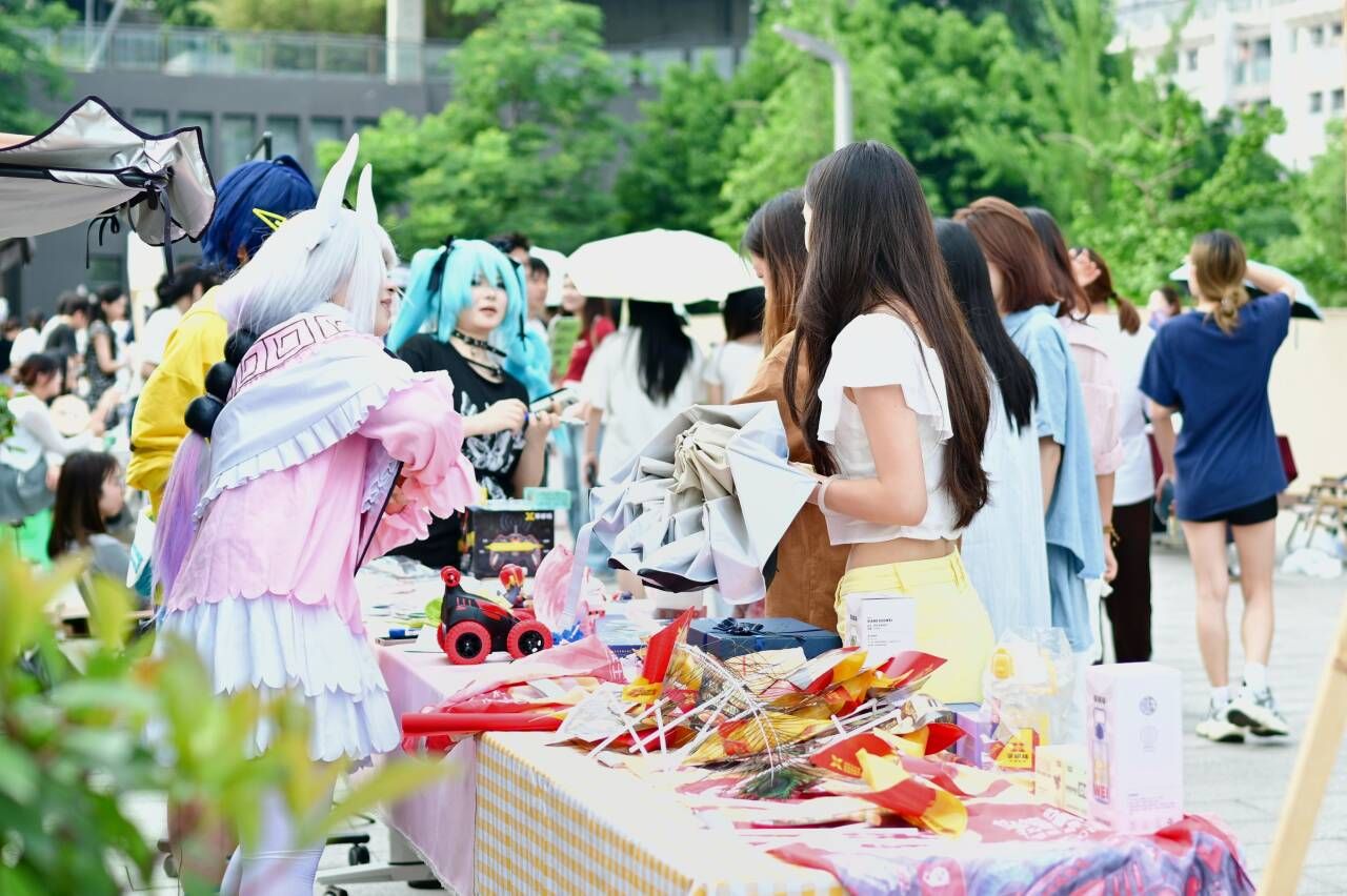 双创助力,焕新往年奇妙夜形式,书院体验摊点与双创集市全面开放,参与者热情不退,在今年首热浪潮下,由书院搭建的12个体验区被学生包裹:上课暂停,和室友一起比试滚直铁环、齐心协力定制宿舍地毯、设计个性签名;端午在即,邀请三五好友制香囊祛百病、拉满弓箭射五毒、打卡“与粽不同”;正值初夏,移通也有了对诗送荷,由衫时汉服体验馆出妆的卖花女郎,全移通寻找幸运儿,赠送荷花、莲蓬。