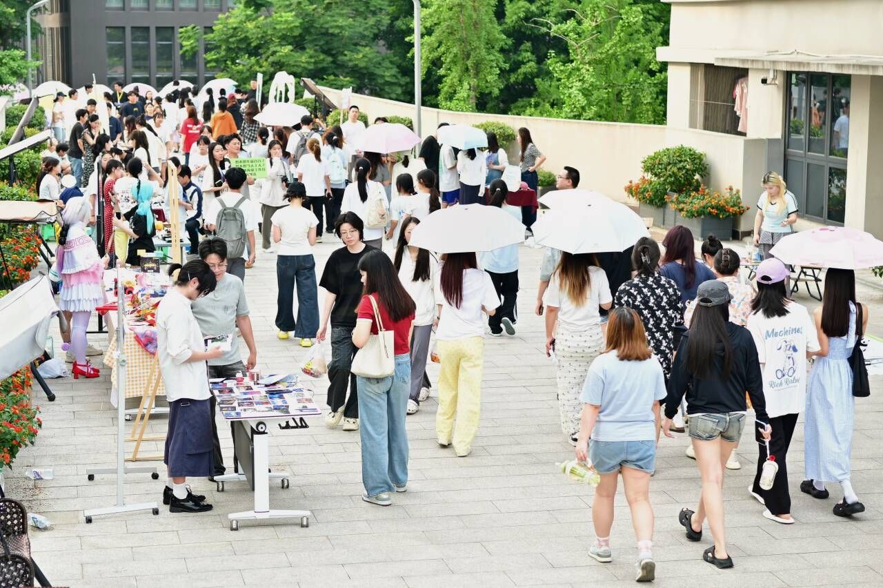 市集各大摊位前体验手工制品、观赏新秀萌宠、品尝地方小吃……的顾客络绎不绝。“作业—作品—产品—商品”双创学院与天空社区学子的创业选品从课堂实训到创意孵化经受了市场考验,“下江湖市集”点燃的不只是校园创业热情,更是学子服务经济社会发展的担当。“同学,荣昌卤鹅,买不买不要紧,都来尝尝”现场唯一的熟食摊位上,来自北山书院淬炼商学院的禾粒云乡村振兴特产摊位负责人陈奕孜介绍道“我们选择售卖荣昌卤鹅等地方特色产品,最核心的出发点就是希望以美食为纽带,为乡村振兴注入活力,没有想过要盈利。”