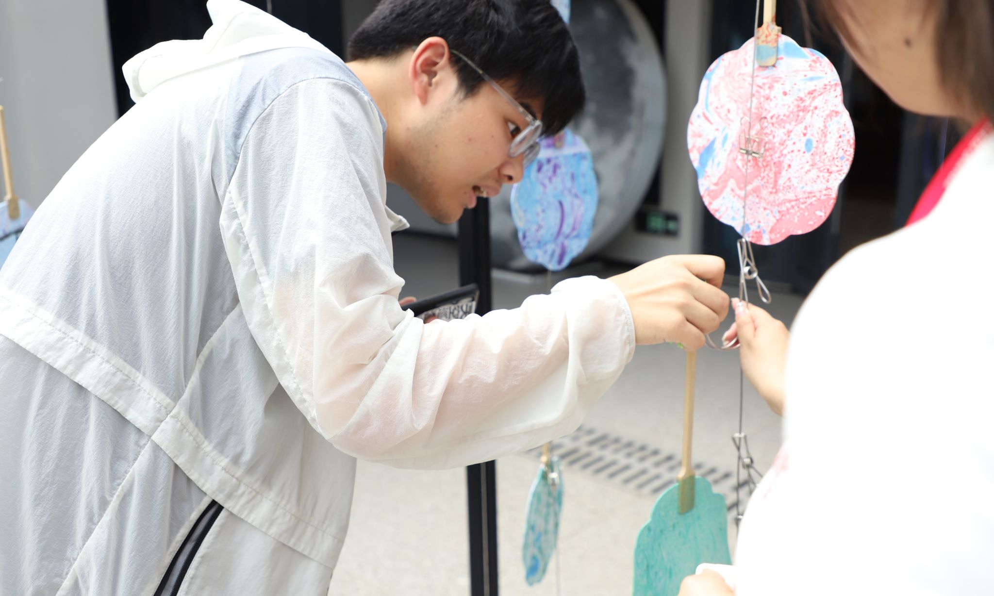 开放云端,想象翻番。活动当日,钓鱼城科幻学院以创意漆扇、碎片寻宝、空间讲解、自由派对等沉浸式项目面向全校300余名体验官开放中华传习所、声乐工坊、万物音库等品牌空间,通过实践育人作品,呈现社区发展成效;打开想象力大门,工作人员带领参与者深度体验科幻与艺术的灵性碰撞,进一步提升云端艺术社区品牌影响力。