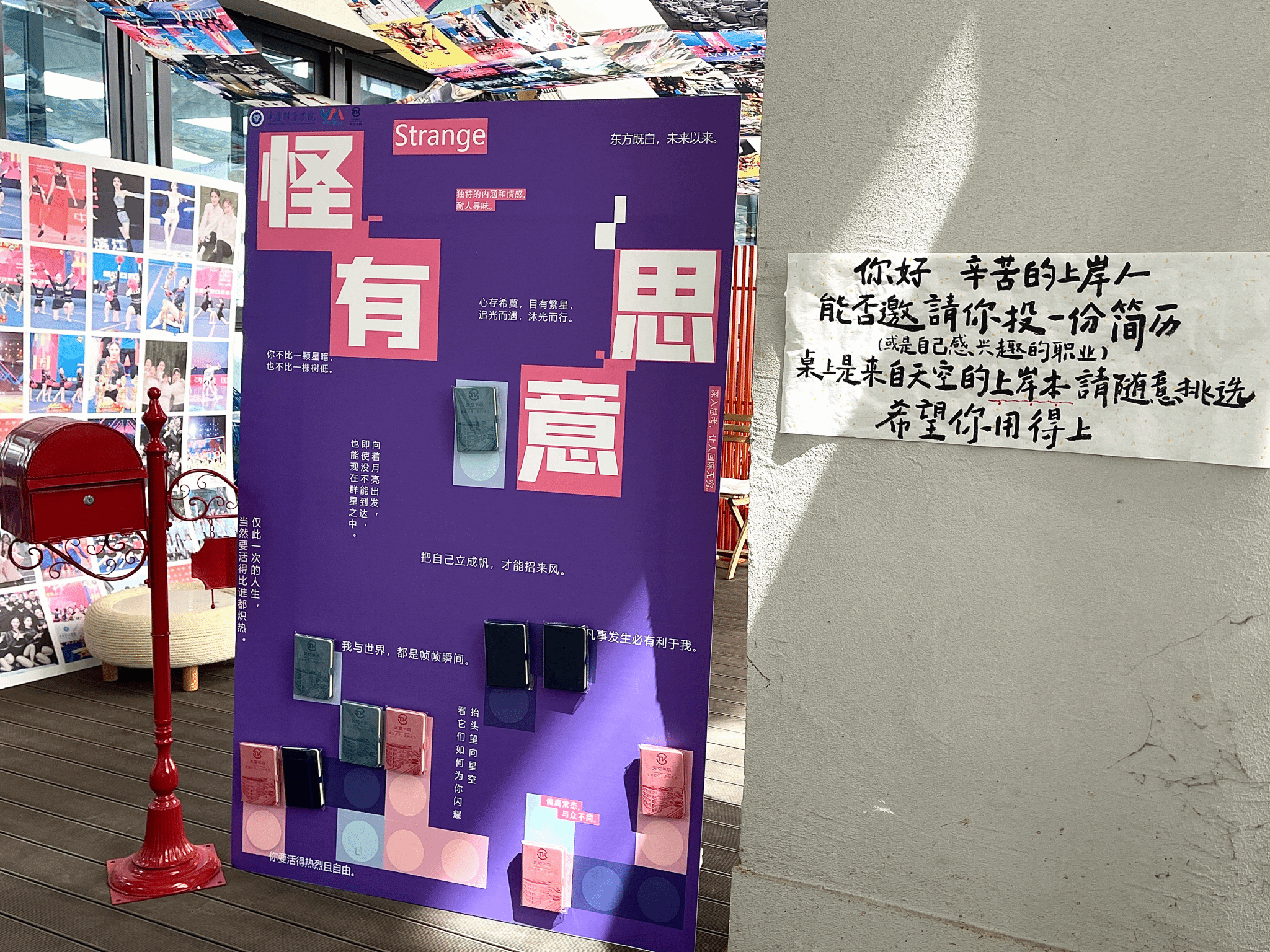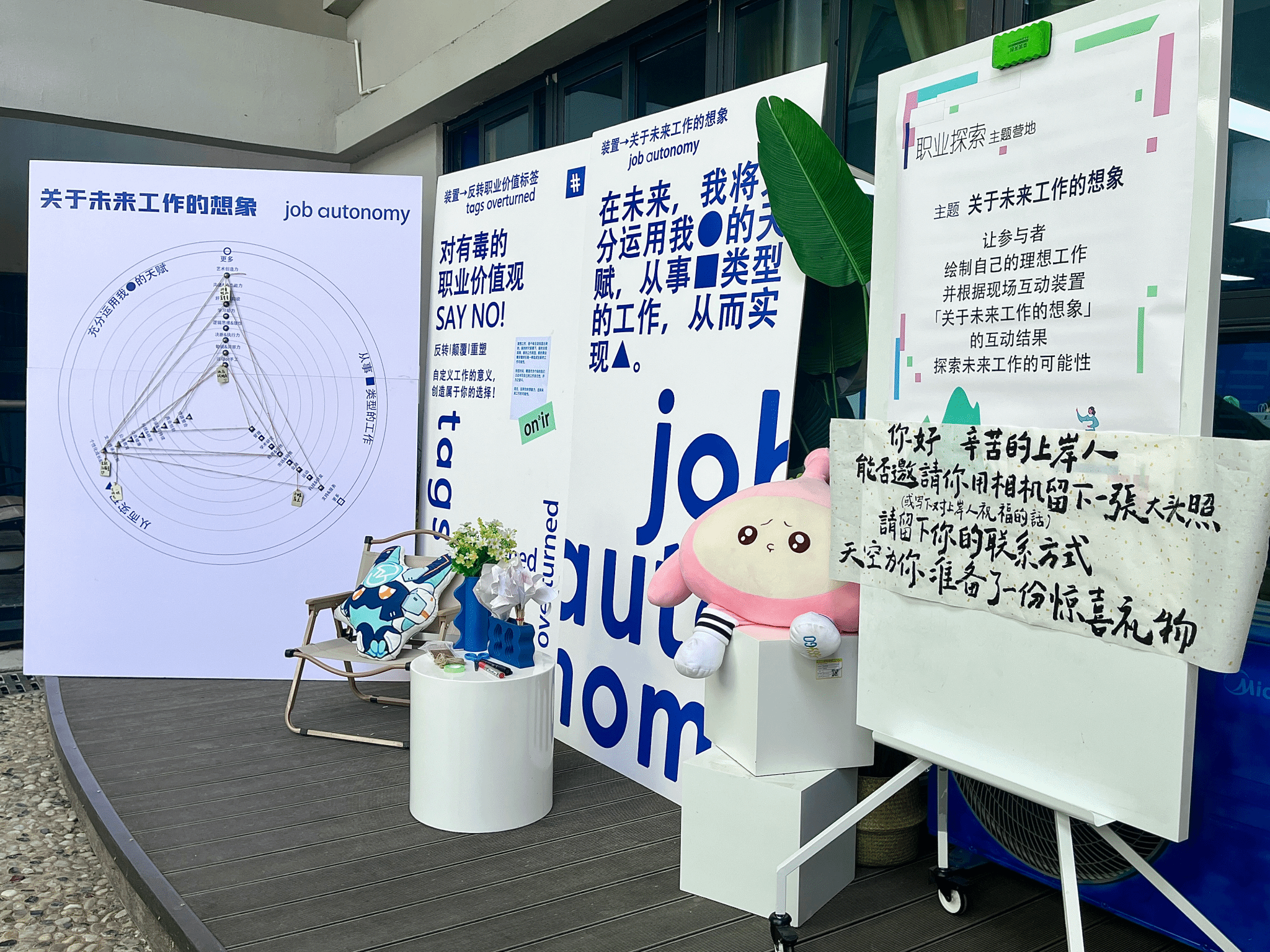 活动期间,天空书院在霞蔚自习室门口设置职业探索营地为学子们打开通往未来职业世界的大门,通过精准对接大三学子的特点与需求,围绕工作自主性展开。倡导参与者突破单一的职业评价标准,重视个人天赋与多元能力的结合。