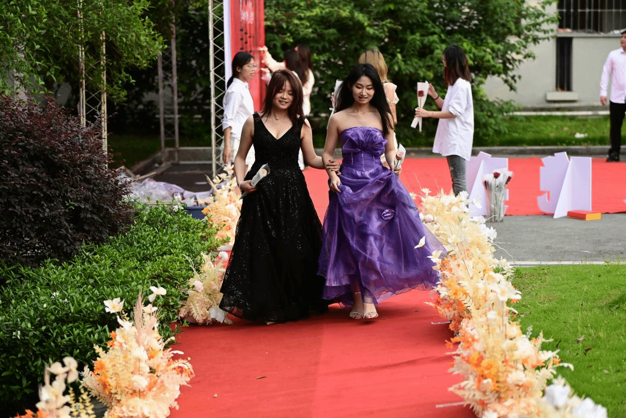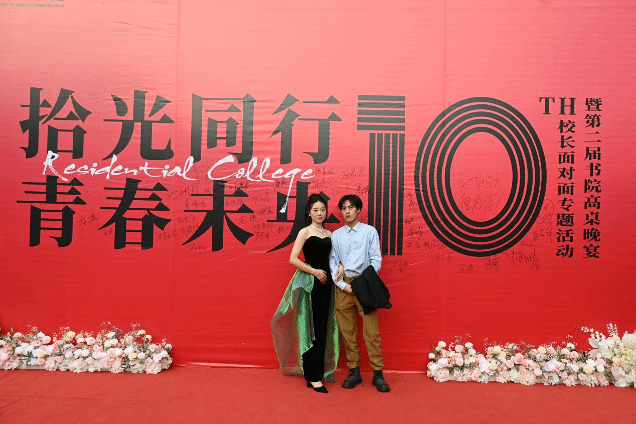 参与本次活动的39名2025届毕业生代表们身着正装与晚礼服踏上红毯,在签名墙前留下姓名与合影,镜头记录下他们的对未来的自信坦荡与对校园的留恋不舍。重庆移通学院校领导随后入场,与书院学子共同见证这一庄重而温情的时刻。红毯旁的采访区,毕业生们畅谈对母校的感恩、对未来的憧憬,一句“书院是永远的家”道出学子心声。