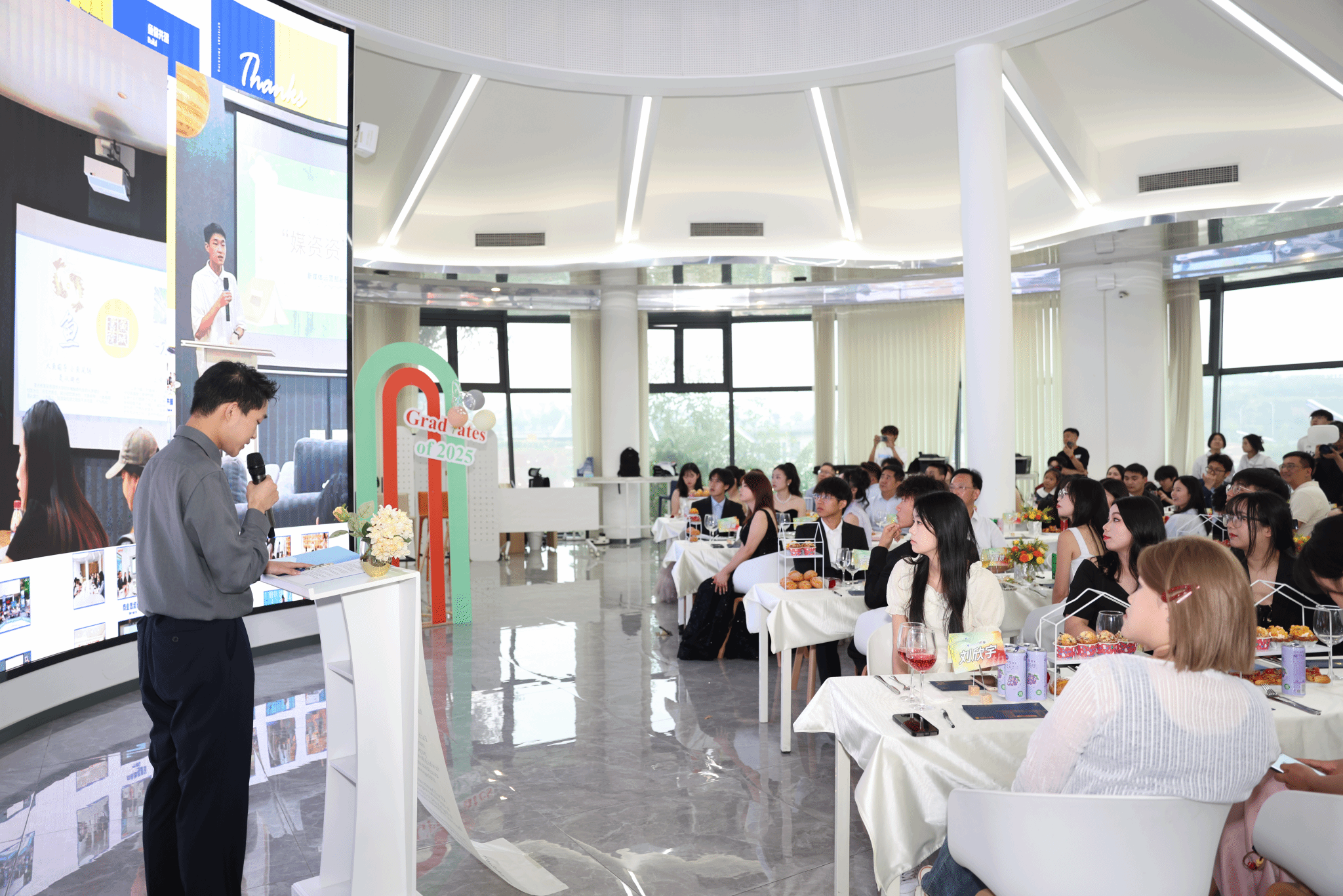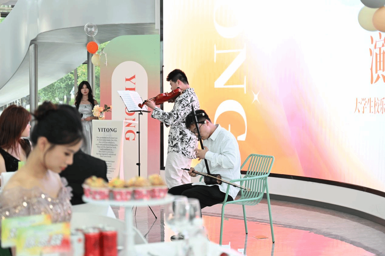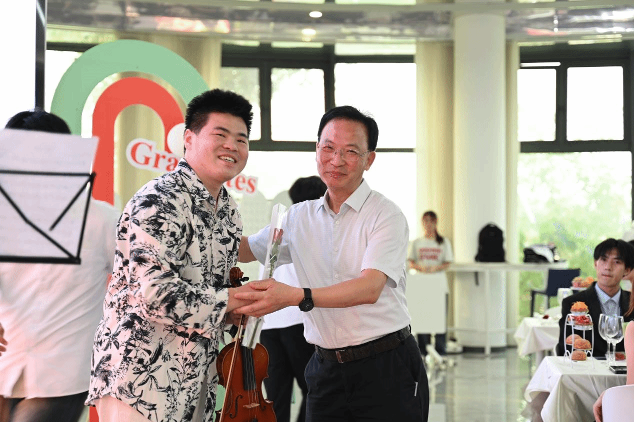 活动以大学生校乐团演奏的《天鹅湖》拉开序幕,二重奏的萨克斯表演烘托出温馨的书院家园氛围。随后播放的定制短片《拾光·未央》重现了书院生活的四季剪影,学院辅导员、书院发展导师、全生异科导师以及食堂阿姨、宿管阿姨为毕业生们送上真情的祝福。来自艺术传媒学院、北山书院的左天娇与通信与信息工程学院、廊桥书院的陈奕博作为毕业生代表登台分享,从完满教育的历练到全生异科导师的陪伴,从深夜策划活动的热血到书院家文化的滋养,字句间尽显在书院里的炽热青春与成长蜕变。