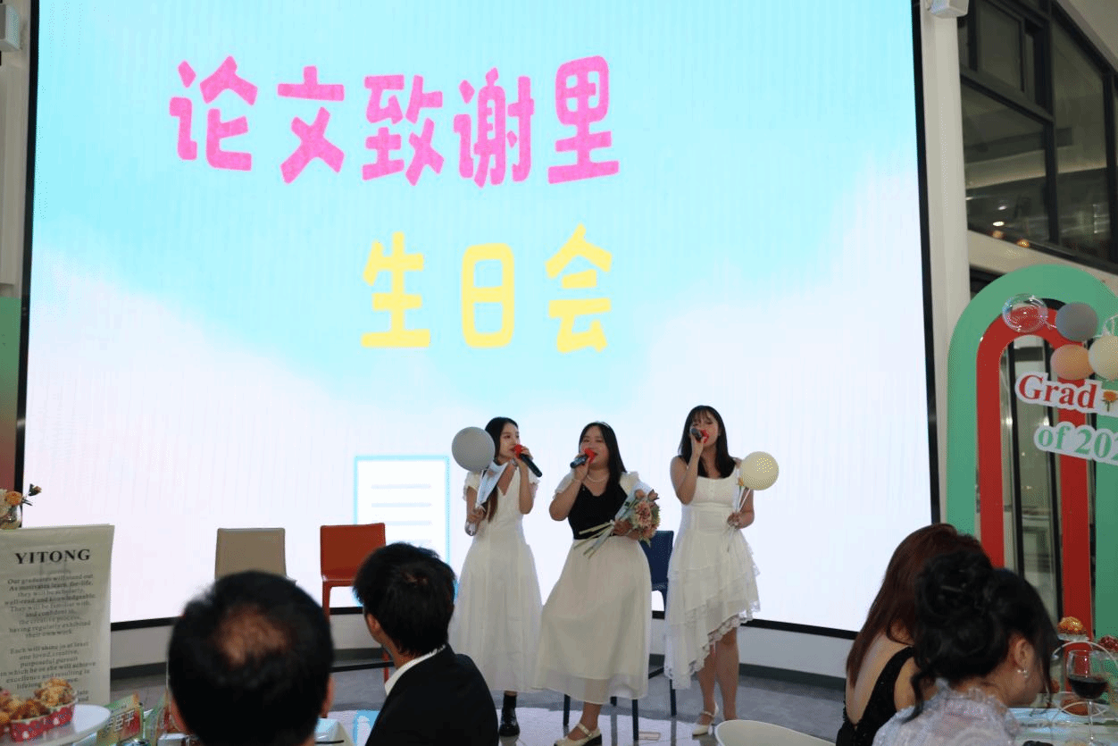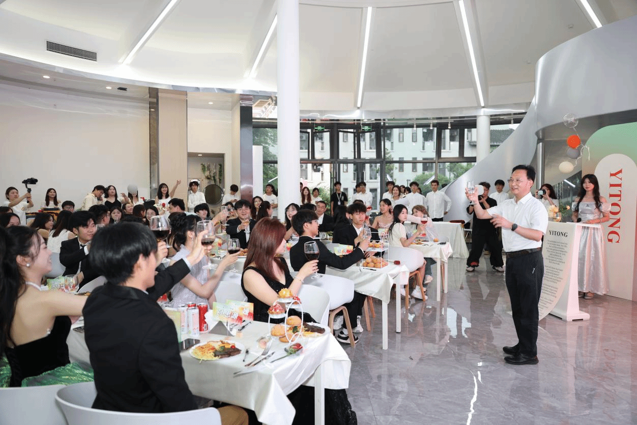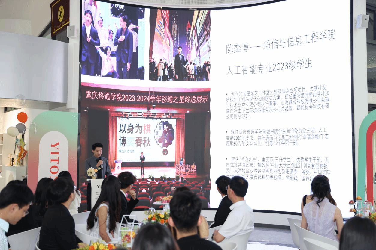 本次活动特别表彰了刘欣宇、孙思源等12位“书院形象大使”,校领导为其颁发纪念奖杯,肯定他们用镜头、文字与行动诠释书院文化与育人理念,“书院形象大使”也将成为书院学子库,为挖掘学生成长故事、书院学生发展案例提供重要的资源。晚宴环节,重庆移通学院校长吕翊教授致辞宣布开宴,师生共品牛排意面,举杯互致祝福。书院导师、全生异科导师与学生代表联袂演绎毕业歌曲串烧,并带来原创歌曲《这棵树记得你》的首次亮相,歌声中饱含对青春的致敬、对未来的期许与对每一位毕业生的祝福。