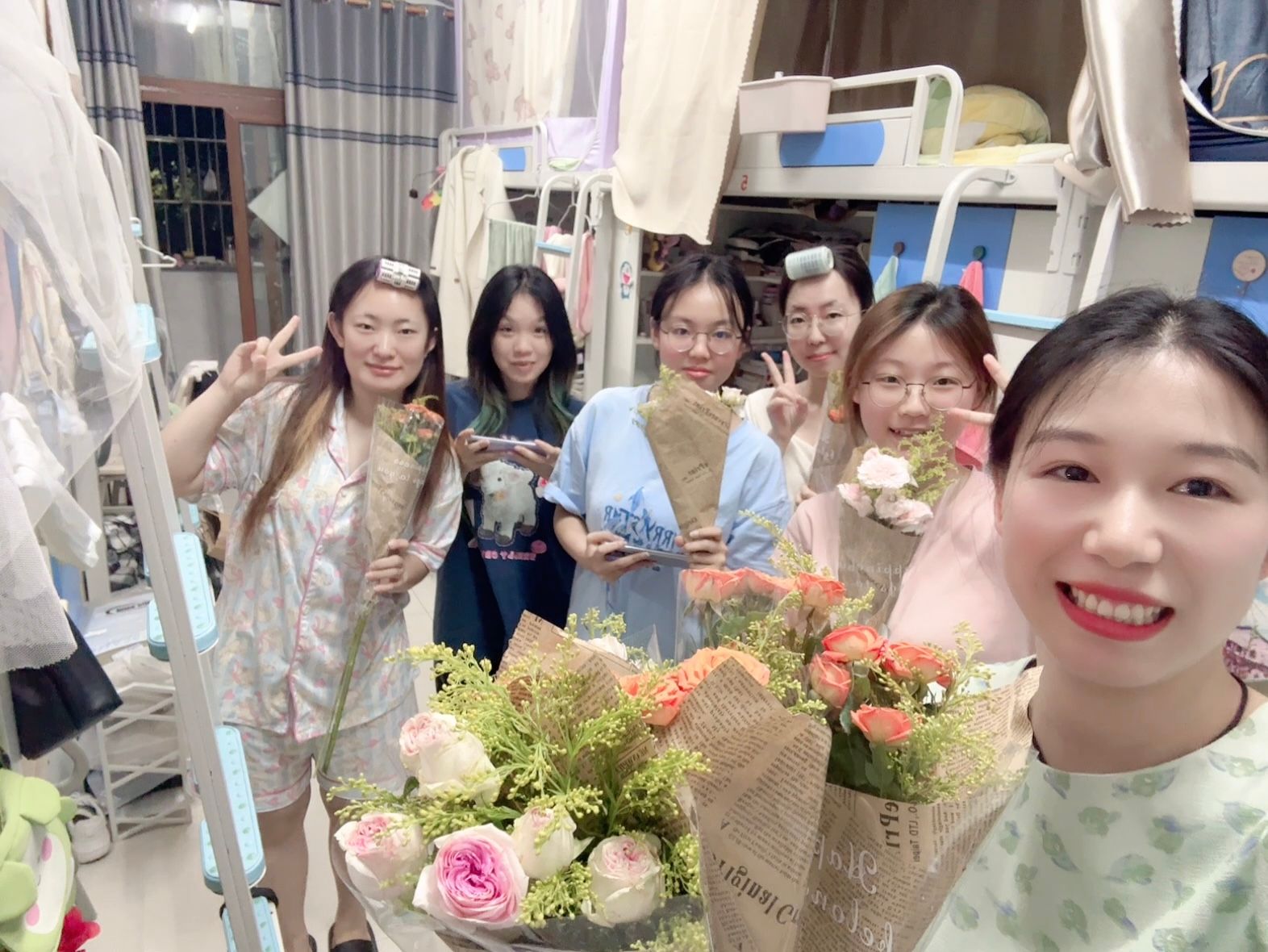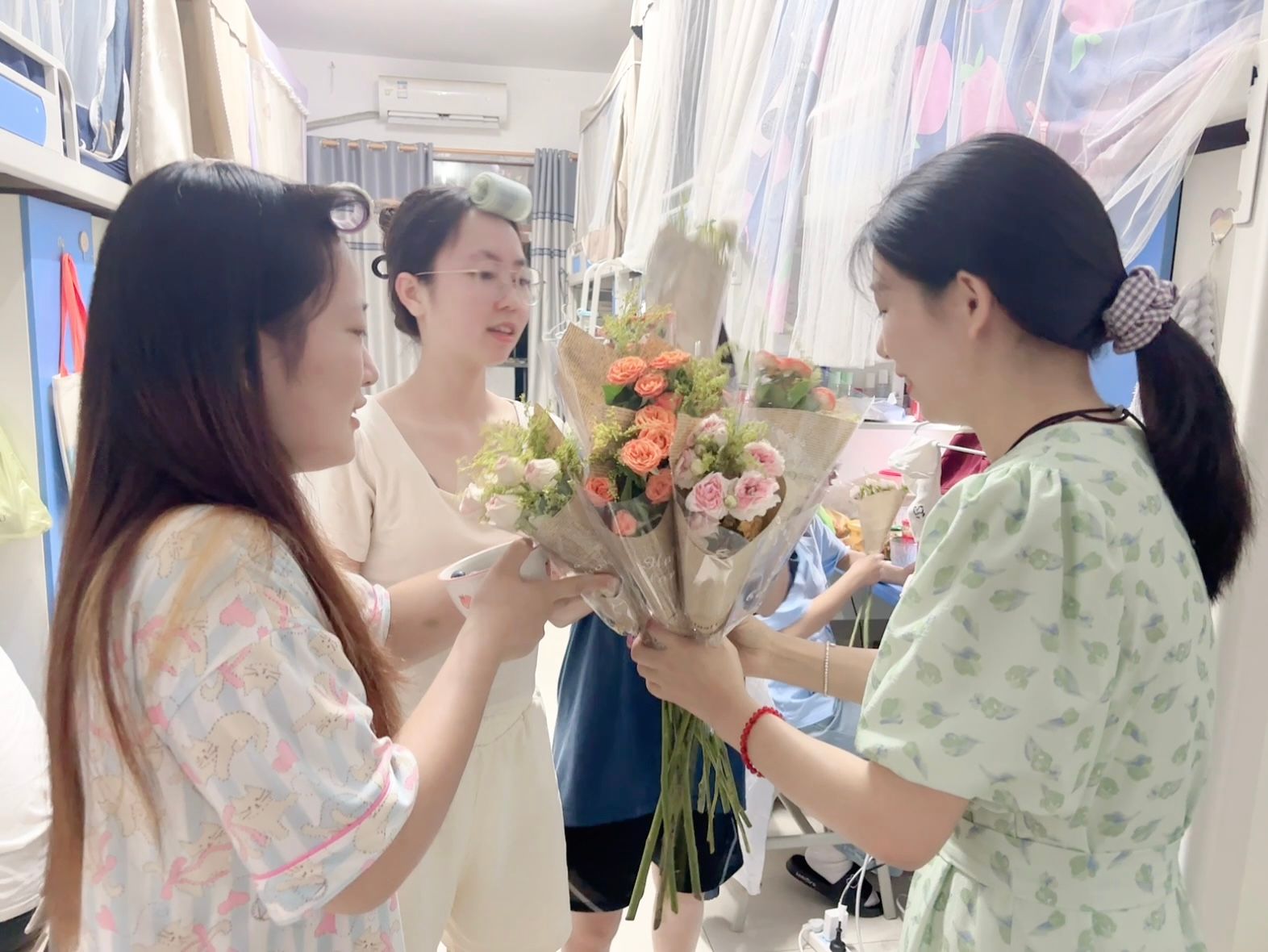 2025年5月20日晚,在这个充满爱意的特殊日子里,异科导师刘晓西走进荷悦书院走访了异科班学生寝室。刘老师为每位同学精心准备了一束鲜花,并送上真挚寄语:“希望你们都能做自己的那朵花,爱人先爱己,永远热爱生活,始终充满希望。”在轻松愉快的交流中,刘老师与同学们畅谈大学生活的点滴,鼓励大家既要学会关爱自我、保持个性,也要以积极乐观的心态面对成长路上的挑战。收到这份特别的520礼物,同学们纷纷表示惊喜和感动。芙蓉同学说:“没想到在寝室也能收到老师送的花,忙碌了一天,回到宿舍看到老师送的花,真的很感动!”此次活动不仅拉近了师生距离,更通过别具匠心的方式传递了积极向上的人生态度。这一束束鲜花,不仅是节日的祝福,更是一份成长的期许。