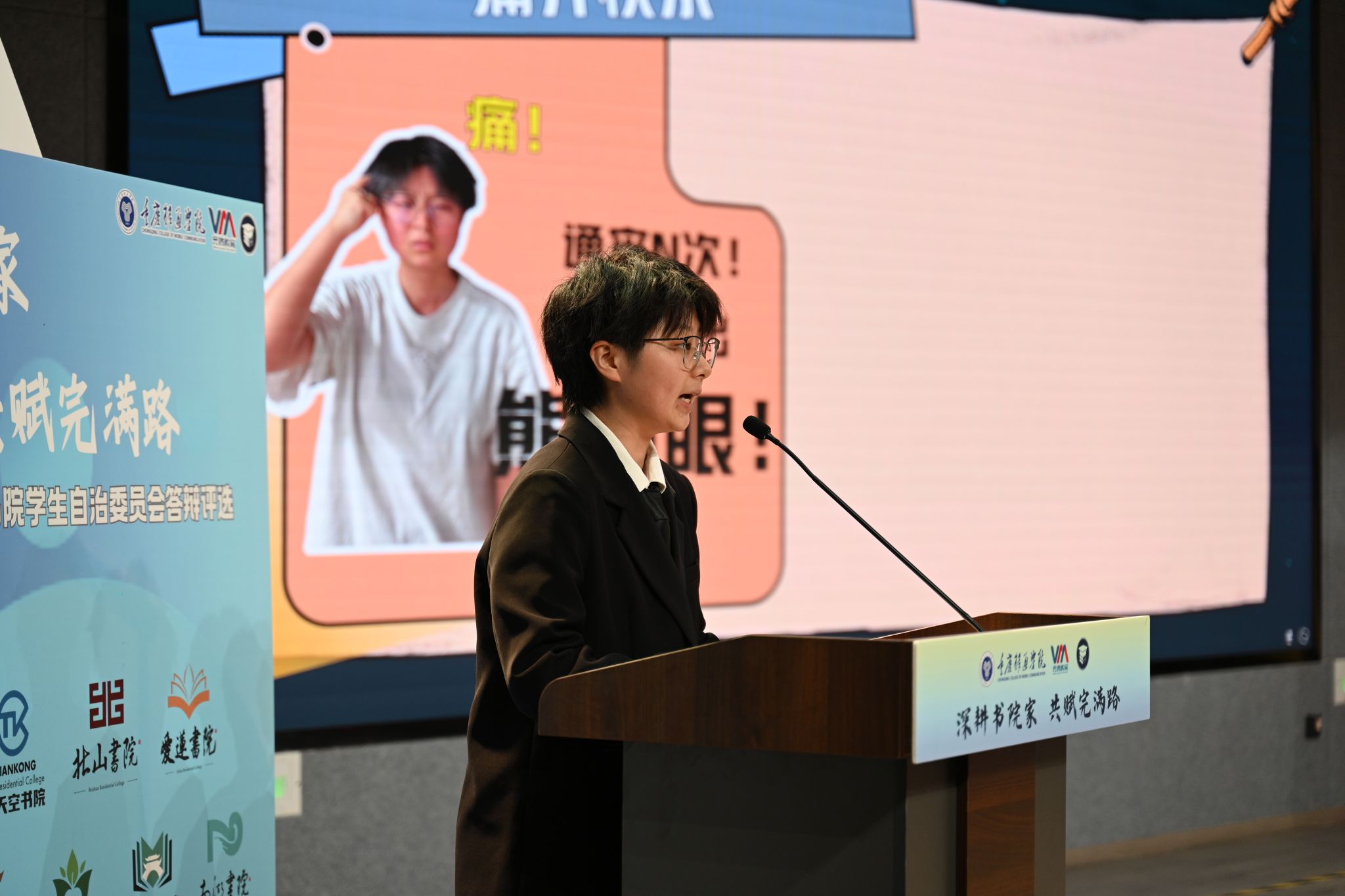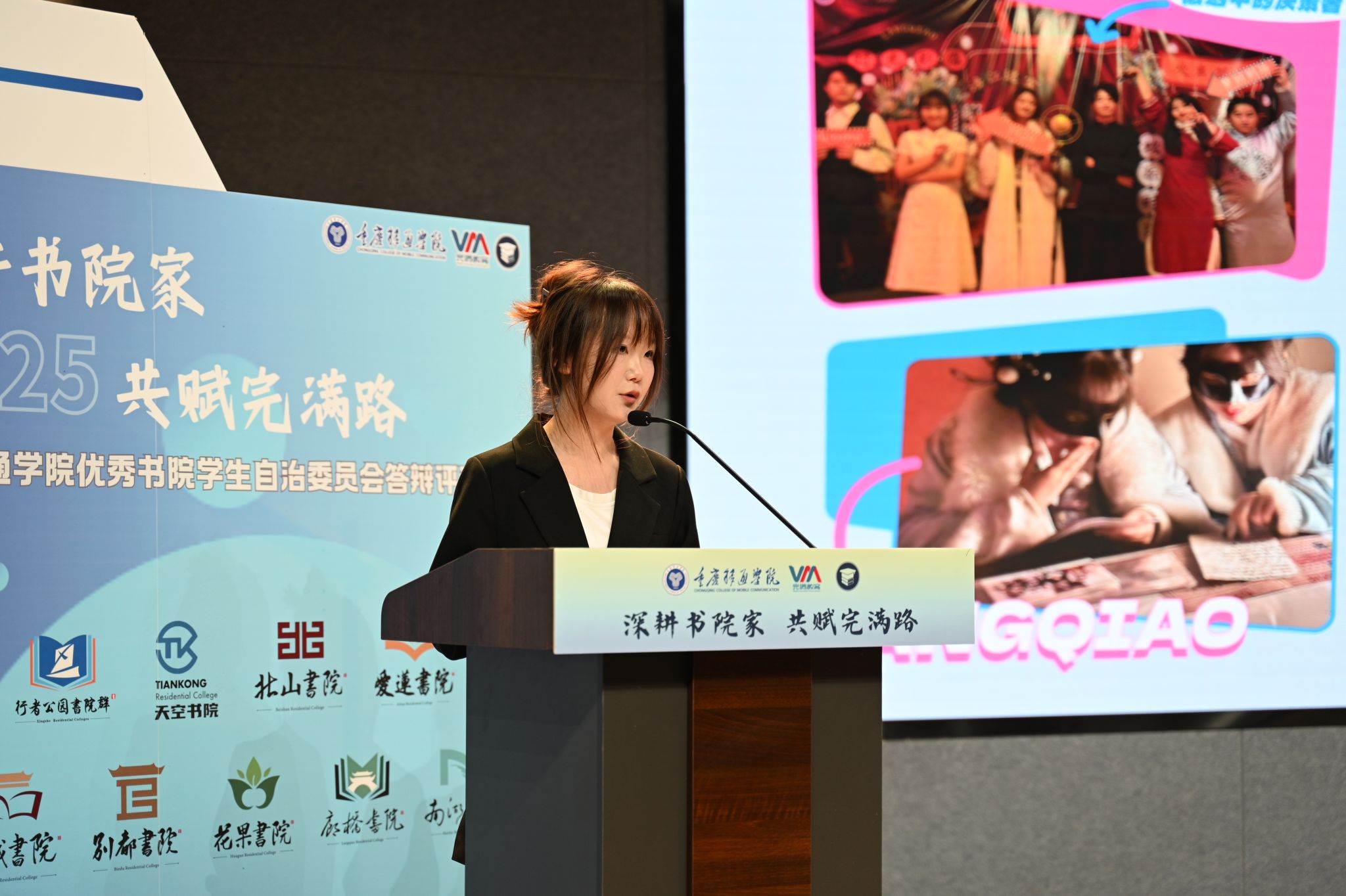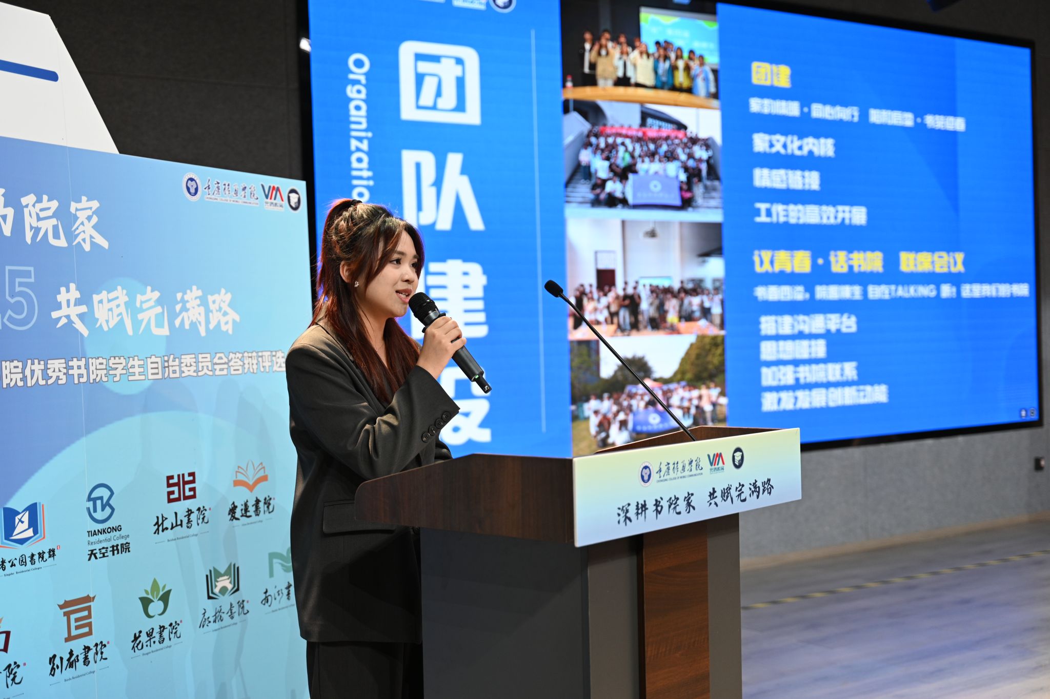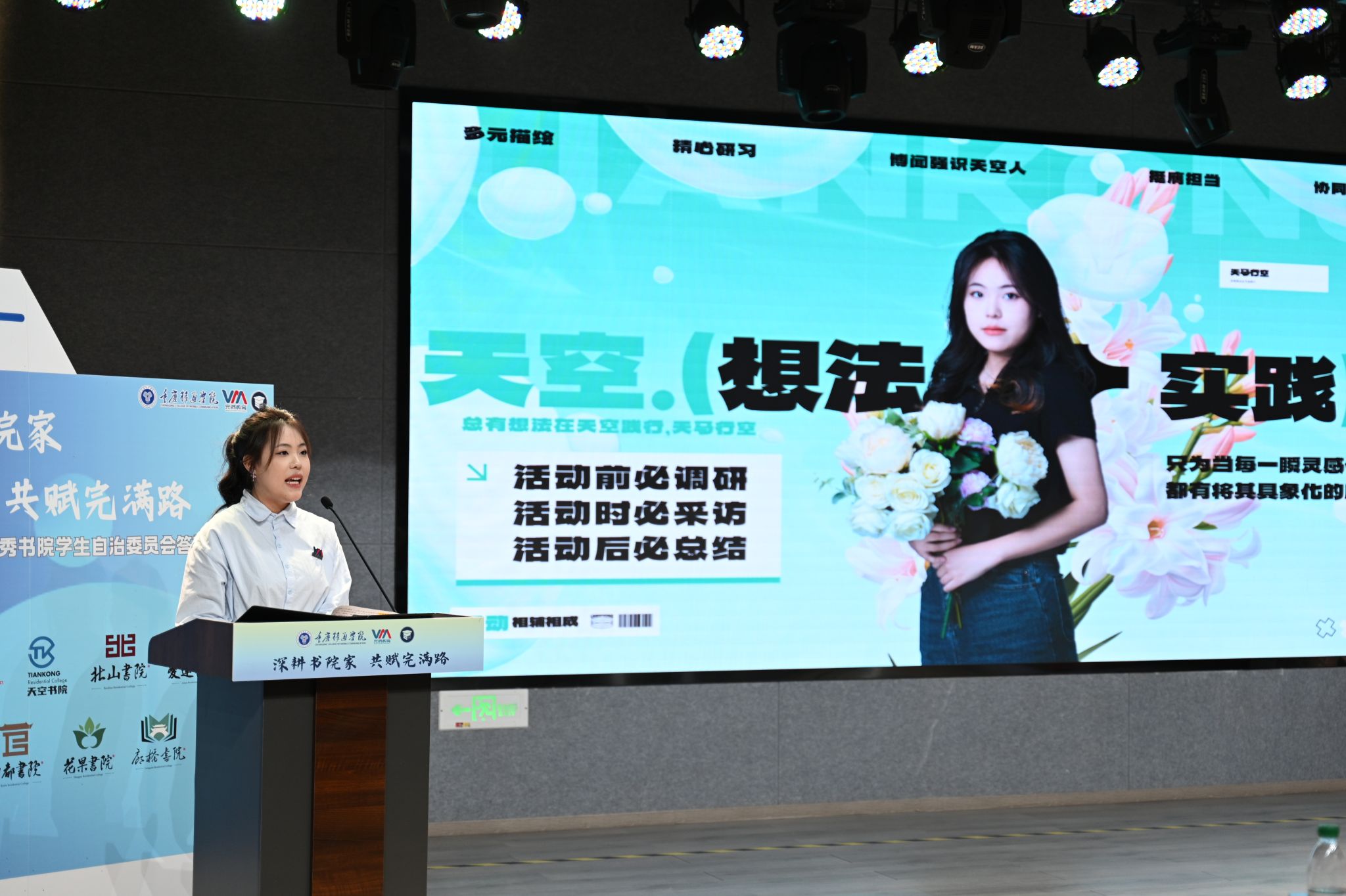 爱莲书院学生自治委员会用一本《书院顶流成长记》,传递爱莲无限的温馨魅力。天空书院学生自治委员会以《在天空,找到属于你的星辰大海》为题,呈现博闻强识天空人的自由成长,璀璨发光。花果书院学生自治委员会以《来花果,搞花活,我们是认真的!》为题,硬核快乐的团队,让书院工作高效又高能,最后由学生书院联合会汇报工作,作为书院部具体指导下的校级学生组织,始终发挥好“服务同学”的平台作用和“协调书院”的纽带作用。