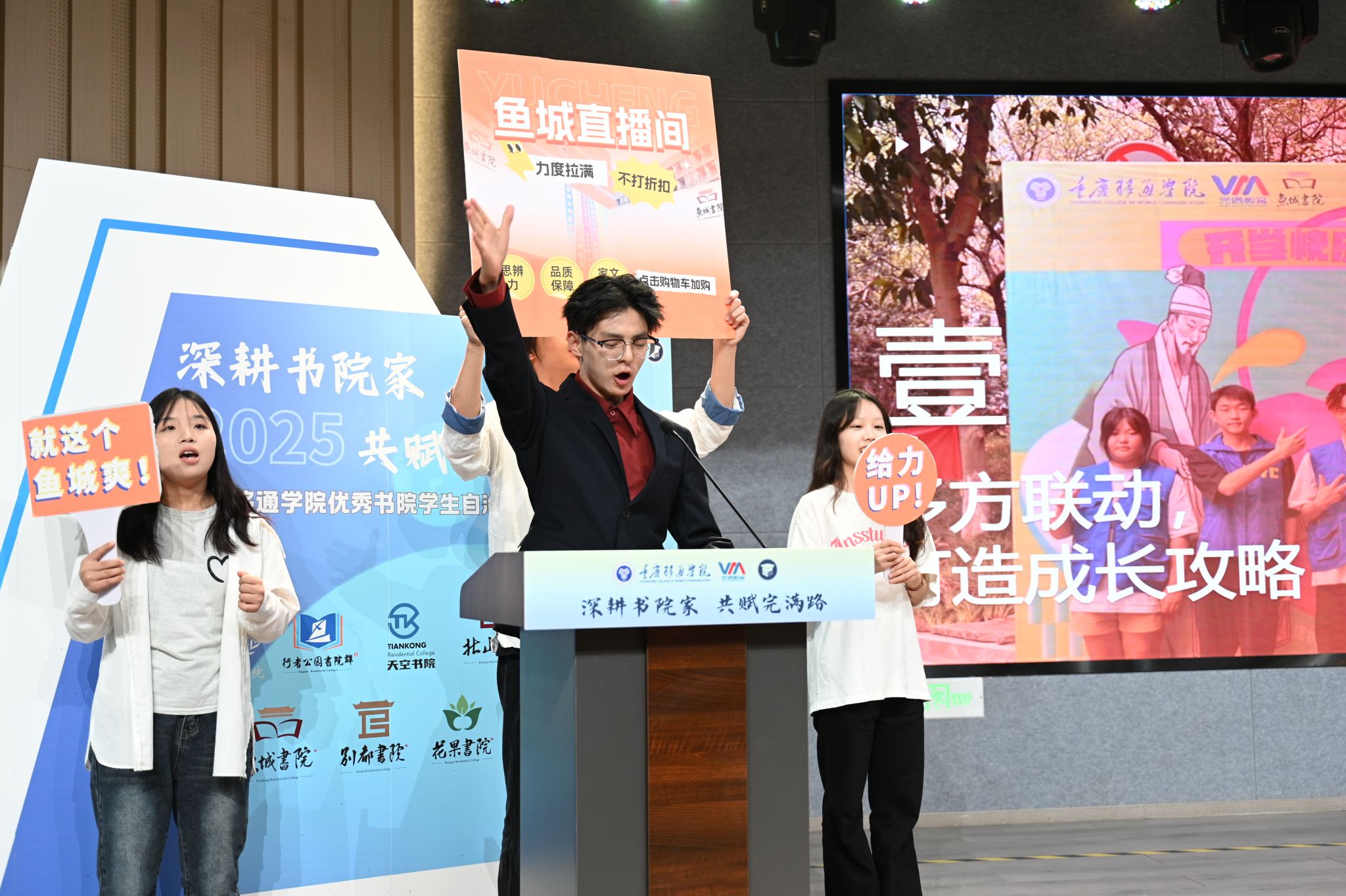 廊桥书院学生自治委员会以《阅尽千faner,千帆远航》为主题,诠释了廊桥人勇担当,敢拼搏的“折腾”精神。北山书院学生自治委员会以《北山之声》为主题,扎根培养基点,构建涵养意志品质、锤炼抗压能力、激发内生韧性的育人生态。鱼城书院学生自治委员则别具一格,带领现场评委和观众走入鱼城直播间,近距离感受最烟火、最思辨、最法律、最自律的鱼城氛围。南湖书院学生自治委员会以《在南湖,写一本查重率为0的书》讲述南湖学子执笔青春、自由的成长历程。