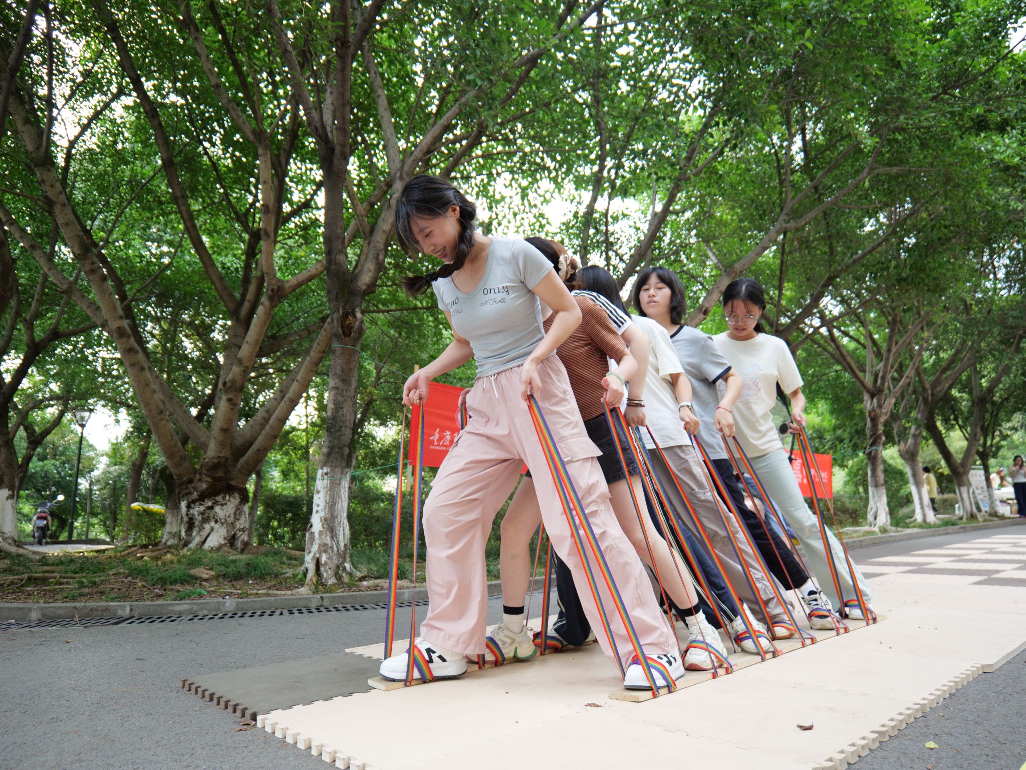 2025年9月10日,重庆移通学院以一场别开生面的校园版“男生女生向前冲”活动,献礼师恩,沸腾校园。此次活动由爱莲书院、营地教育中心主办,以“老师,同学,请就位!”为主题,在延续往年水陆双赛道趣味竞技的基础上,首次增设“教师专属赛道”,旨在以竞技体育为纽带,打破传统师生界限,强化情感联结,构建起朋辈互助、师生互动的多元成长圈层。活动围绕新学期启航、新生适应性教育及“一站式”学生社区建设展开,不仅丰富了校园文化载体,更拓展了师生互动的新型场域。活动吸引了全校40支学生队伍及12支教师队伍,共300余名师生热情参与,速度、激情与欢笑声汇聚成秋日校园最具动感的风景线!