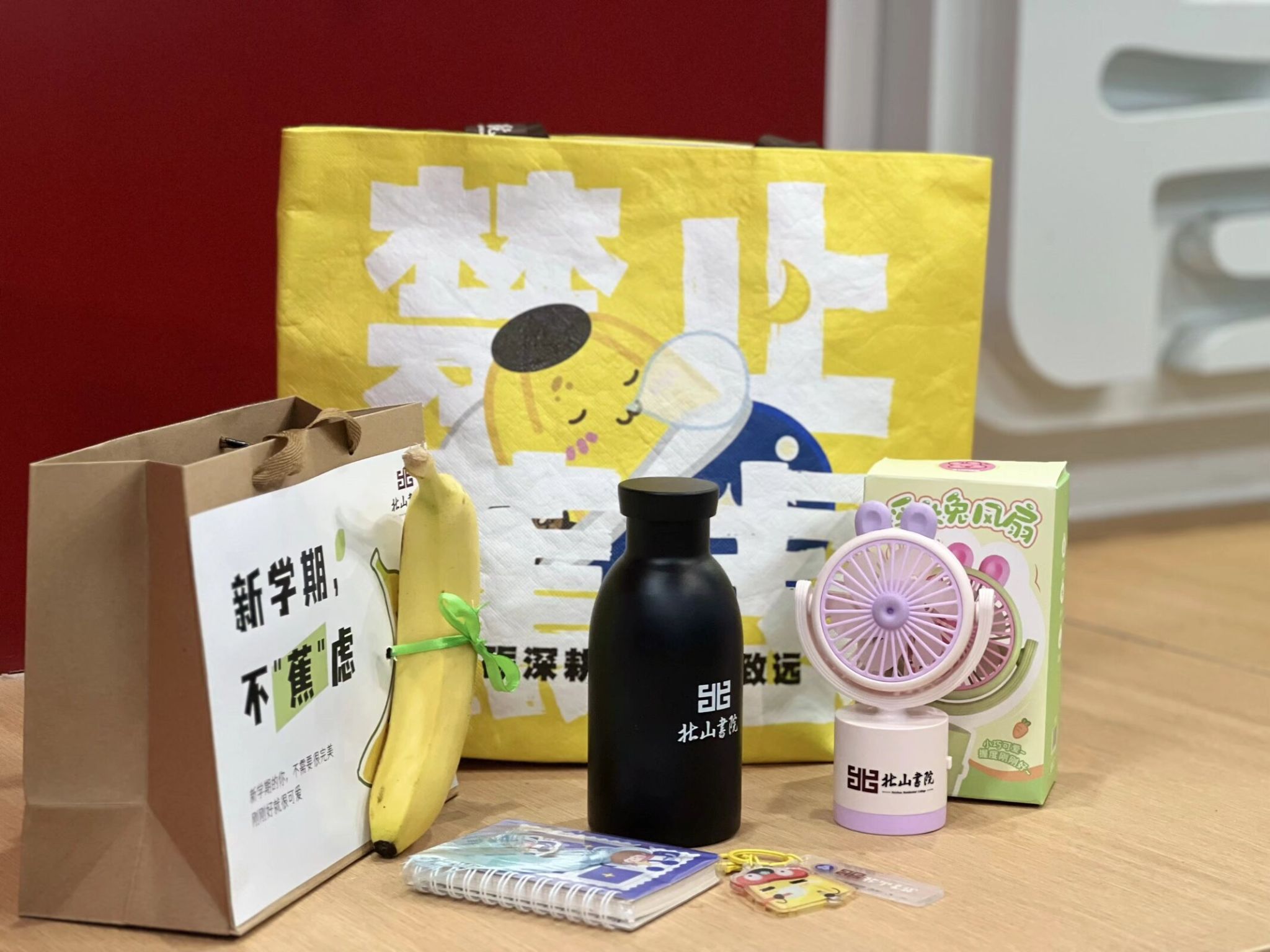 成功集齐三枚活动印章的同学还惊喜获赠“新学期不‘蕉’绿”主题礼包,并与书院吉祥物“小山蕉”合影。