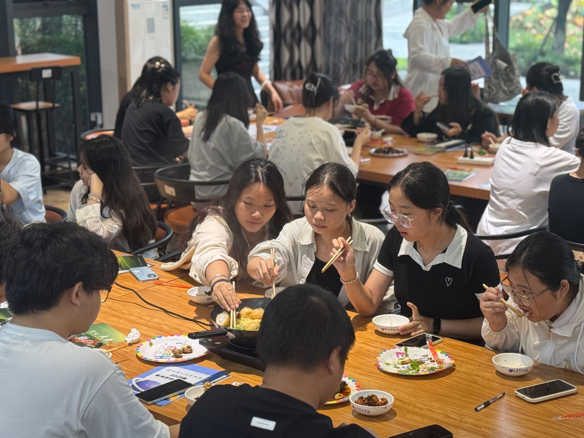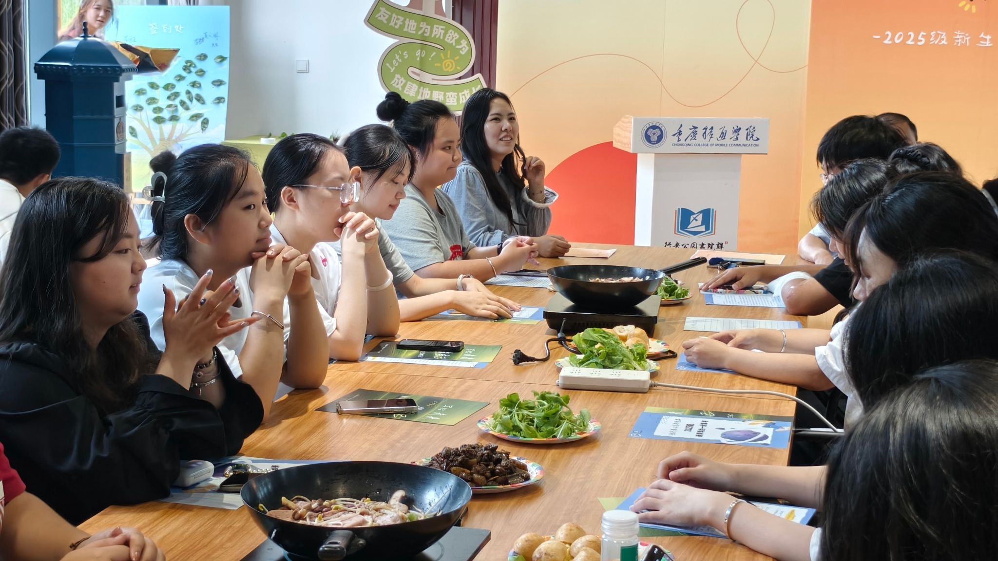互动环节将仪式推向高潮,书院师生通过破冰游戏迅速拉近彼此距离,欢声笑语不绝于耳。随后进行的家宴活动,更以围桌共餐的形式深化情感交流。师生之间错落而坐,滚烫的火锅氤氲着热气,化开了食材,也化开了彼此的距离。席间,学业的困惑、生活的趣事随笑语流转,在食物的香气与真诚的交谈中,“家”的暖意愈发浓烈,悄然浸润每个人的心底。