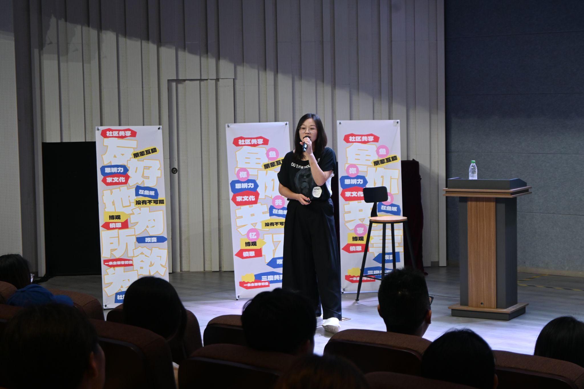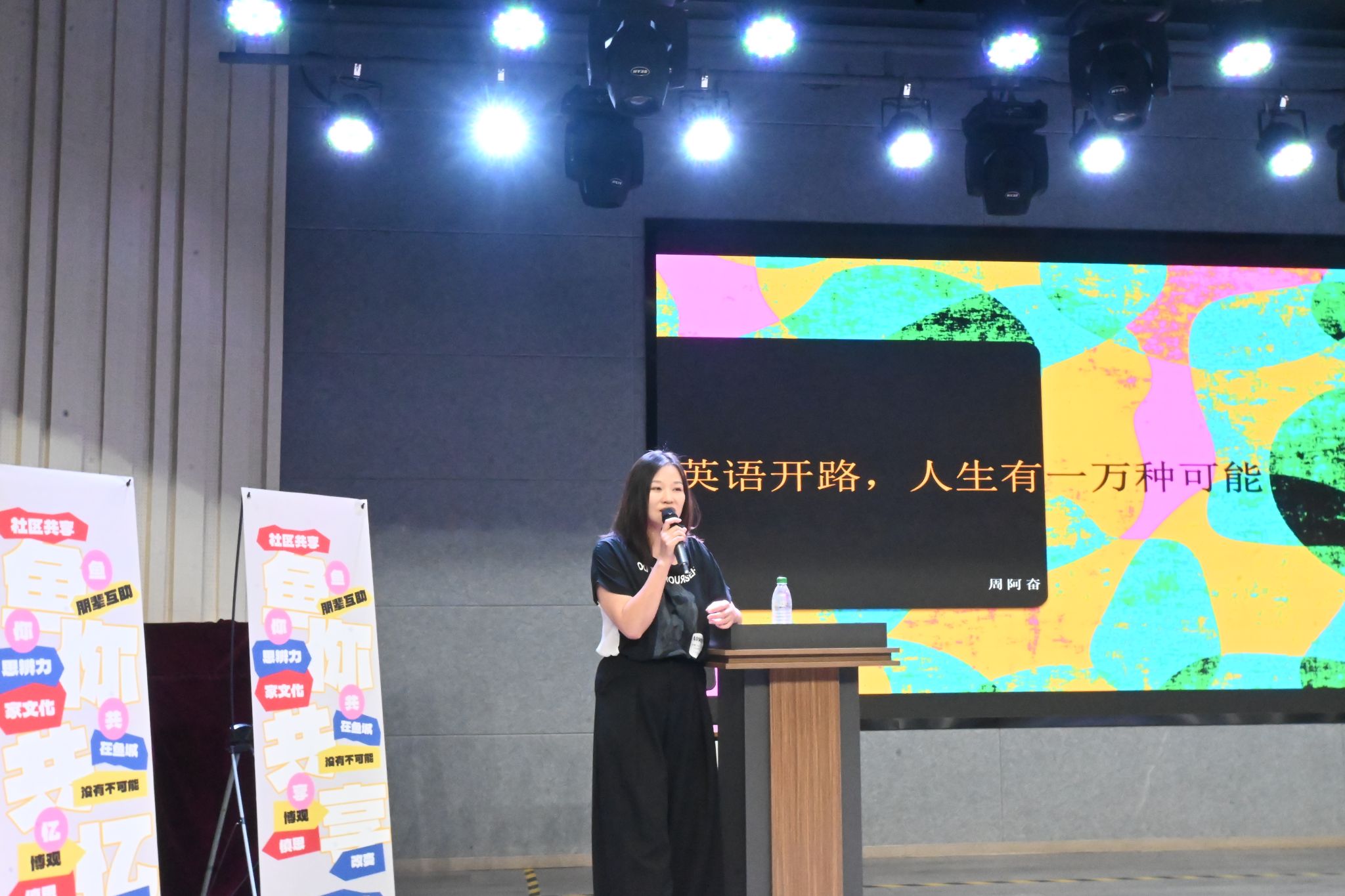 9月18日,鱼城书院三届一任学生自治委员会于六度空间星河音乐厅开展“英语开路,人生有一万种活法”主题分享会,书院教师团队、学生团队齐聚一堂,以家文化为根基,在新学期伊始为全新的书院大家庭注入新活力。分享会特别邀请Fen Acting Studio表演教室创始人、2008年北京奥运会志愿者、陆川导演前助理——周阿奋作为嘉宾,为书院学子分享她如何通过英语一次次实现不同的人生梦想,借英语之力为学生成长破局、为书院育人蓄能。