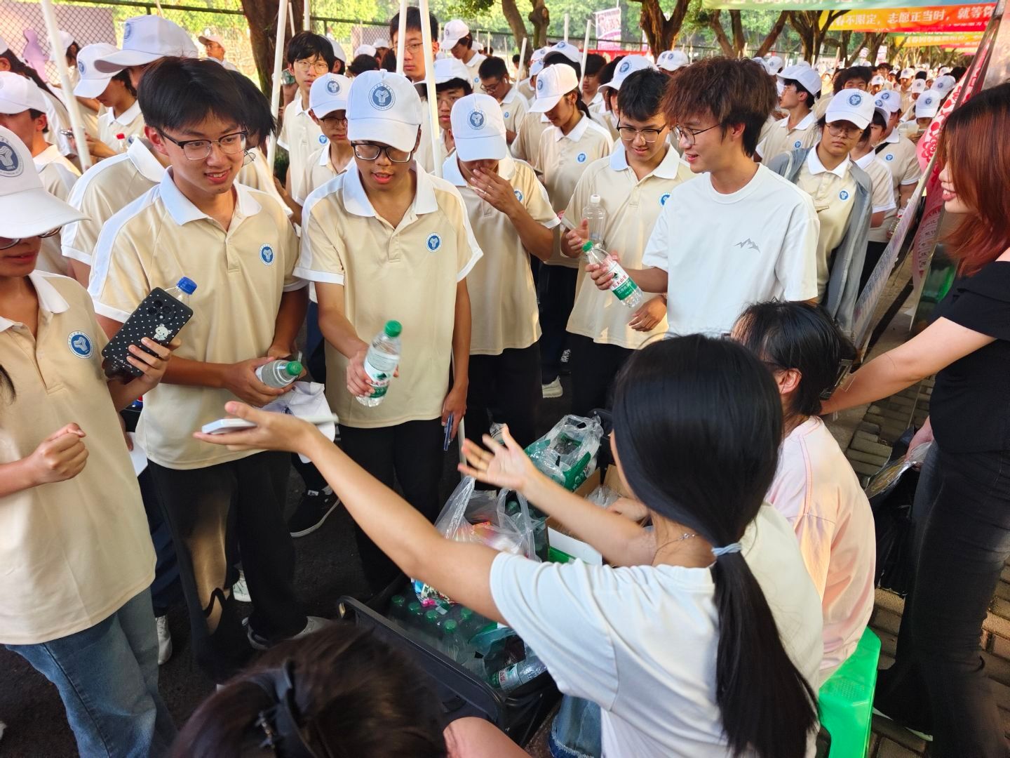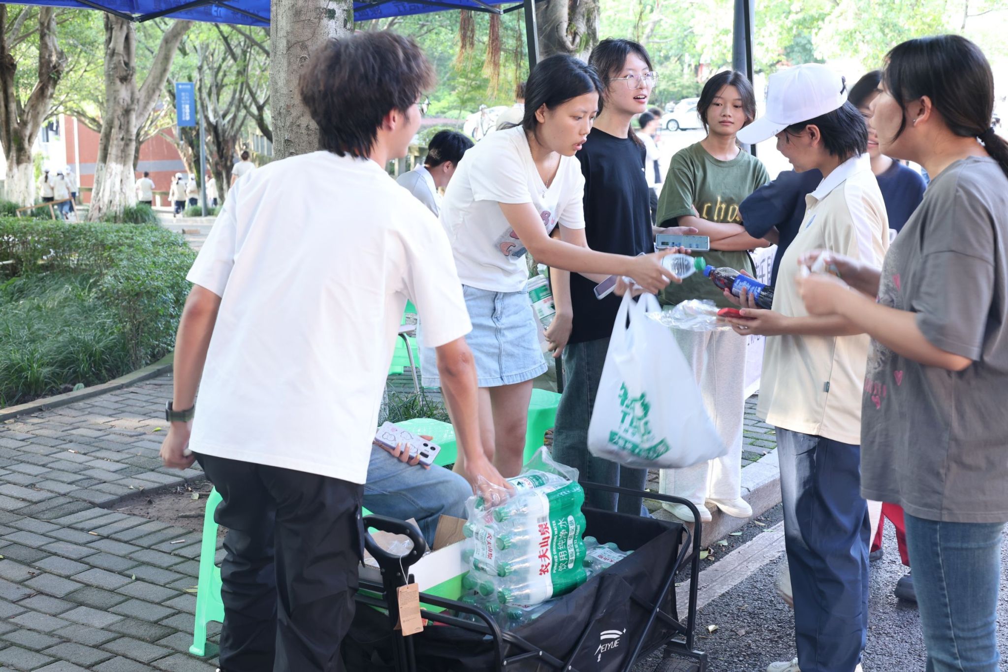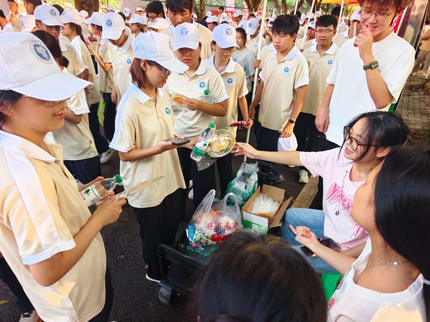 为进一步延续关怀,9月27日,北山书院将军训补给站直接开设到军训场地旁,将清凉与问候送到训练一线。志愿者们为新生们送上矿泉水和精心准备的文创扇子,在炎炎秋日中为他们带去一丝凉意与慰藉,也让“家文化”的温暖伴随迷彩青春的每一刻。