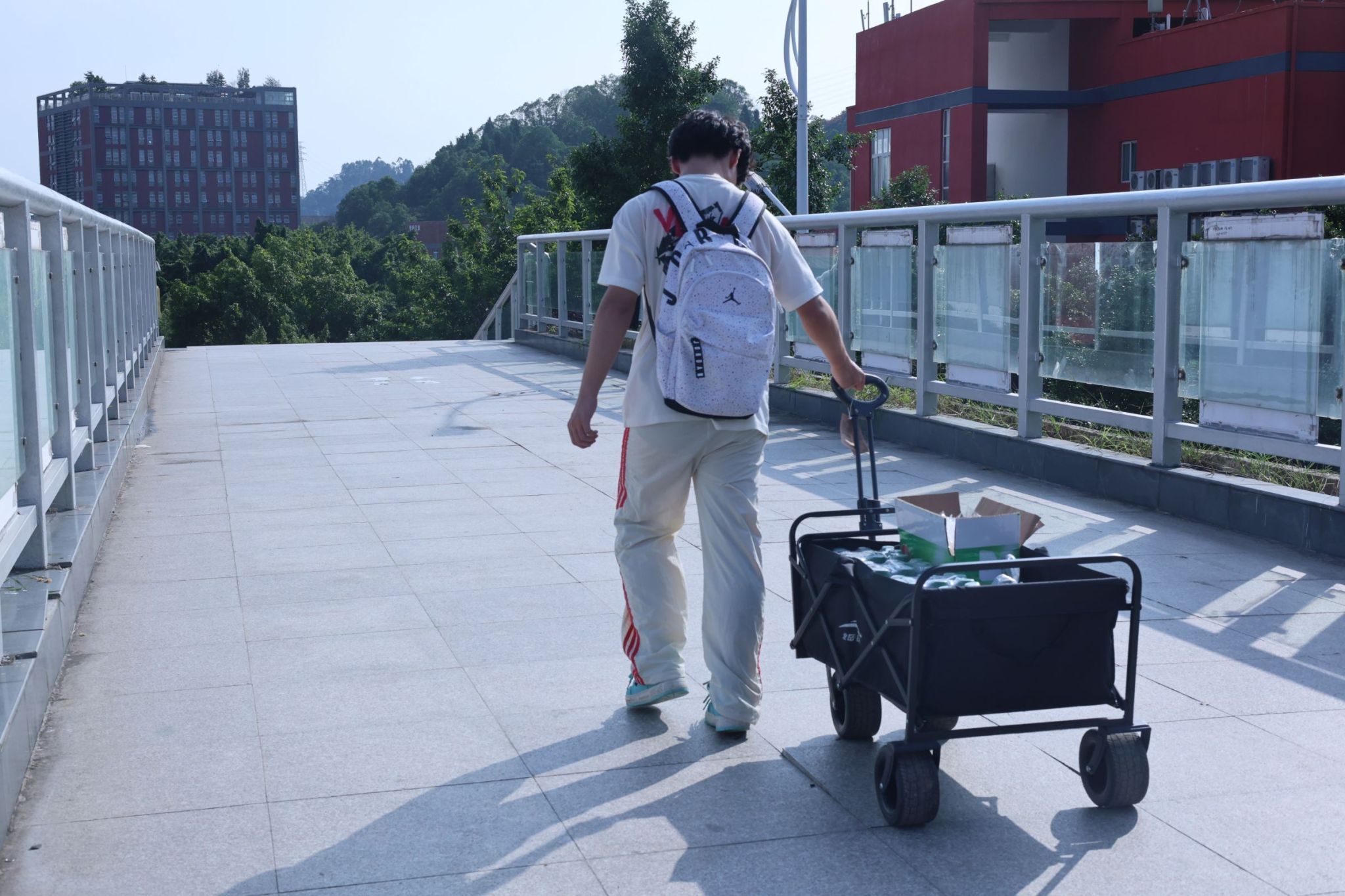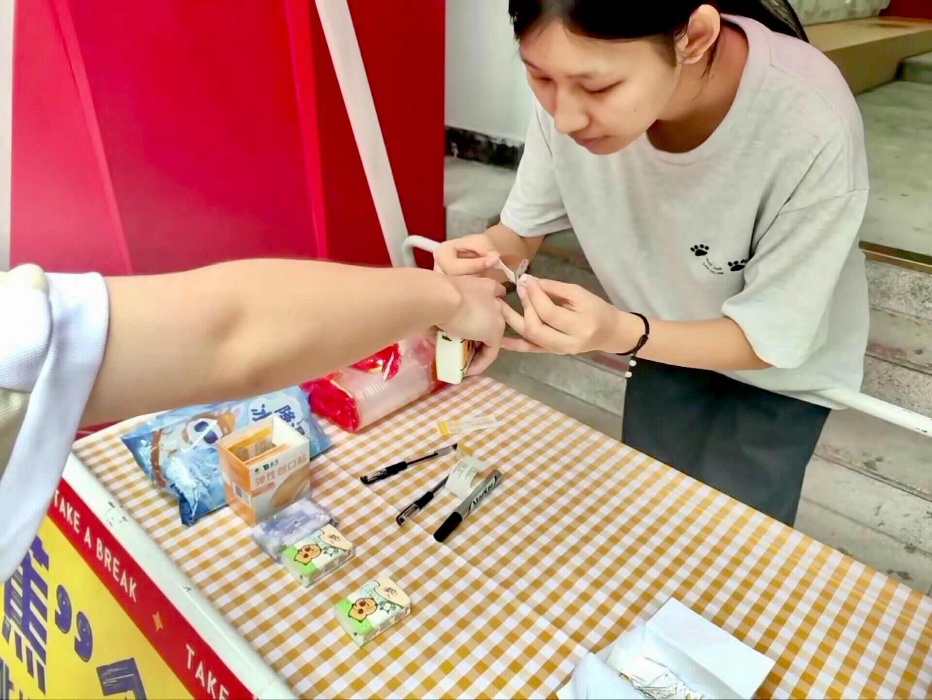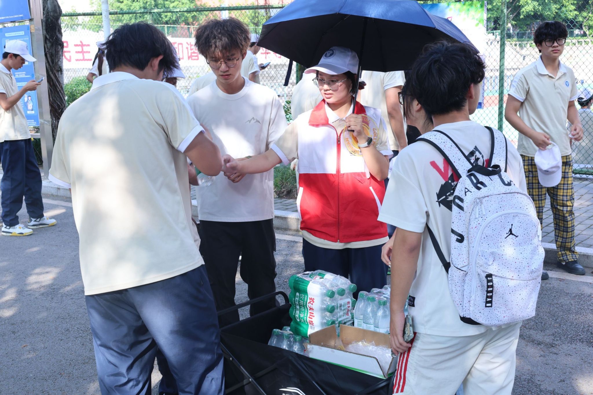 为进一步延续关怀,9月27日,北山书院将军训补给站直接开设到军训场地旁,将清凉与问候送到训练一线。志愿者们为新生们送上矿泉水和精心准备的文创扇子,在炎炎秋日中为他们带去一丝凉意与慰藉,也让“家文化”的温暖伴随迷彩青春的每一刻。