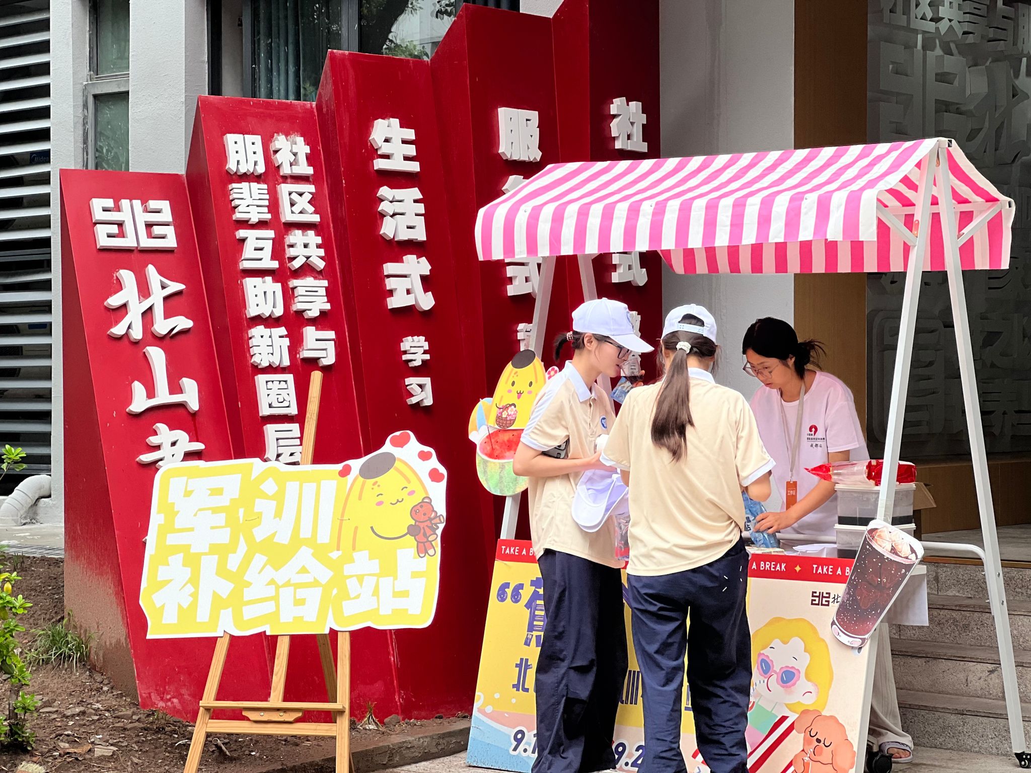 9月17日至21日,新生军训火热进行。北山书院以“蕉”个朋友为主题,围绕“家文化”筹备军训关怀活动,打造训练场边的“清凉驿站”,为参训学子送上慰问与精神支持。