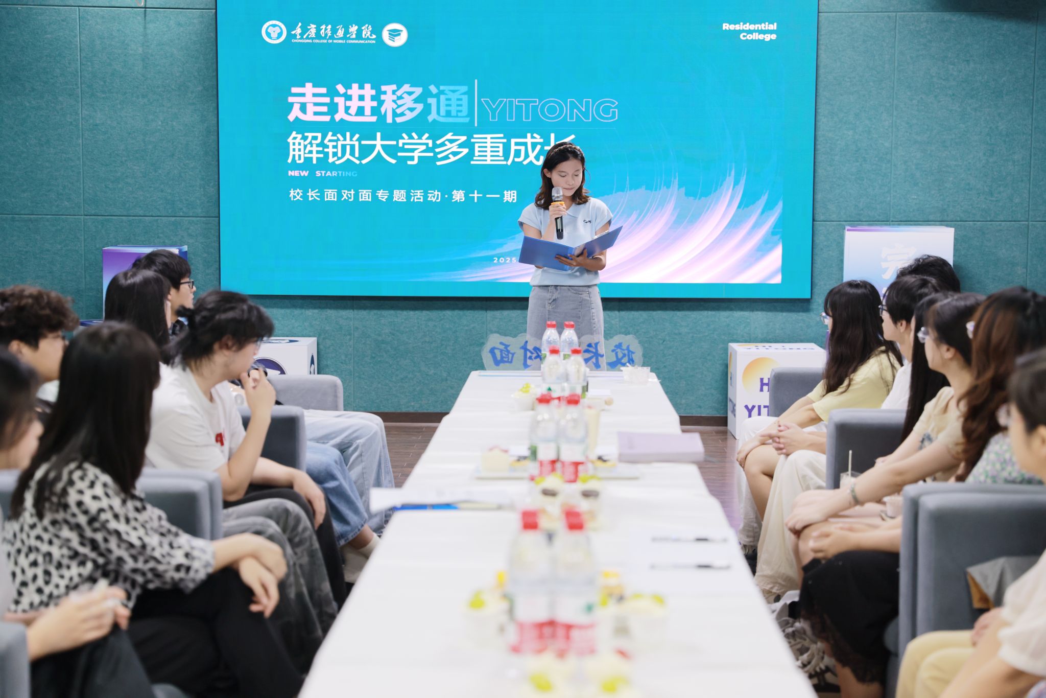 面对各位同学提出的通识教育问题,通识教学部执行主任李娇结合学校“四位一体双院制”培养模式,以“冰山模型”比喻通识教育的深层价值,强调其在培养学生跨学科认知与批判性思维方面的重要性,目前已建成“必修+选修”通识课程体系,开设钓鱼城文化、“幸福课”等特色课程近百门,并通过作家班、非遗工坊、影院教学等形式增强教学实效。除了课堂建设,学校依托通识教育与商科教育为在校师生提供了影评大赛、创意写作比赛、通识素养大赛等多样的全国性及校级赛事活动,并设置优厚的奖品奖励,为移通学子成长成才提供专业化平台。