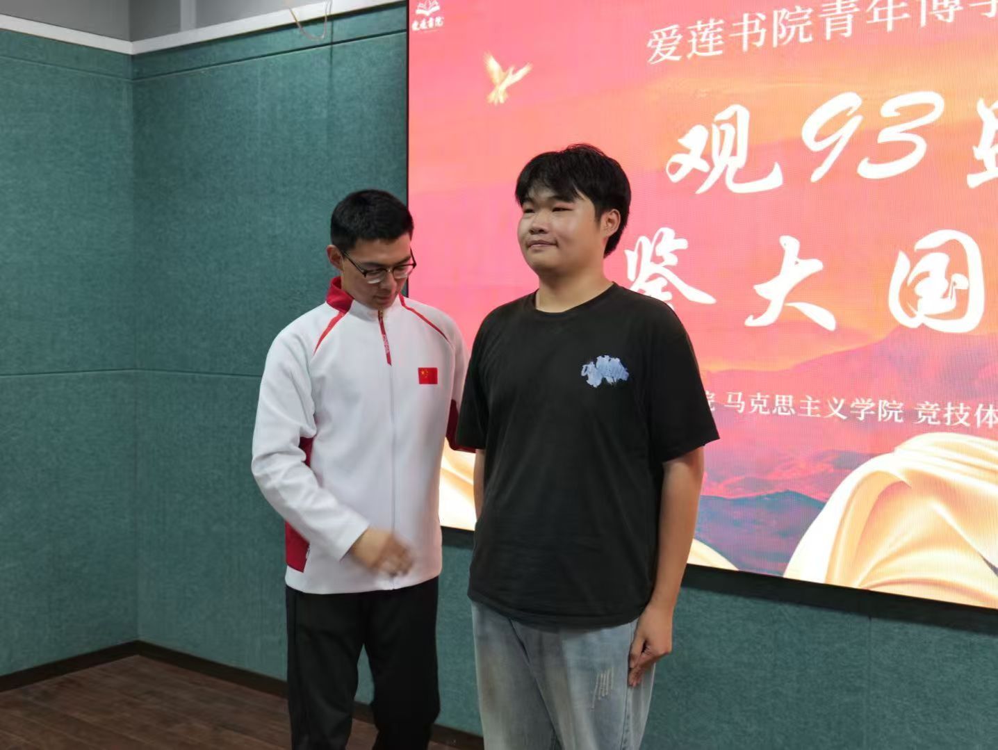 本次青年博学课堂以九三阅兵为切入点,成功将国家盛事转化为一场有深度、有温度、有力度的思政美育实践,不仅增强了学生的民族自豪感与家国情怀,也提升了其审美鉴赏力、团队协作意识与理性思辨能力。爱莲书院将继续秉持“以美育人、以文化人”理念,持续优化“青年博学课堂”内容设计与组织形式,将其打造为书院思政育人的重要平台,引导广大学子在致敬历史中砥砺前行,在鉴赏时代中树立信仰,努力成长为兼具人文素养、审美情操、担当精神的新时代青年。
