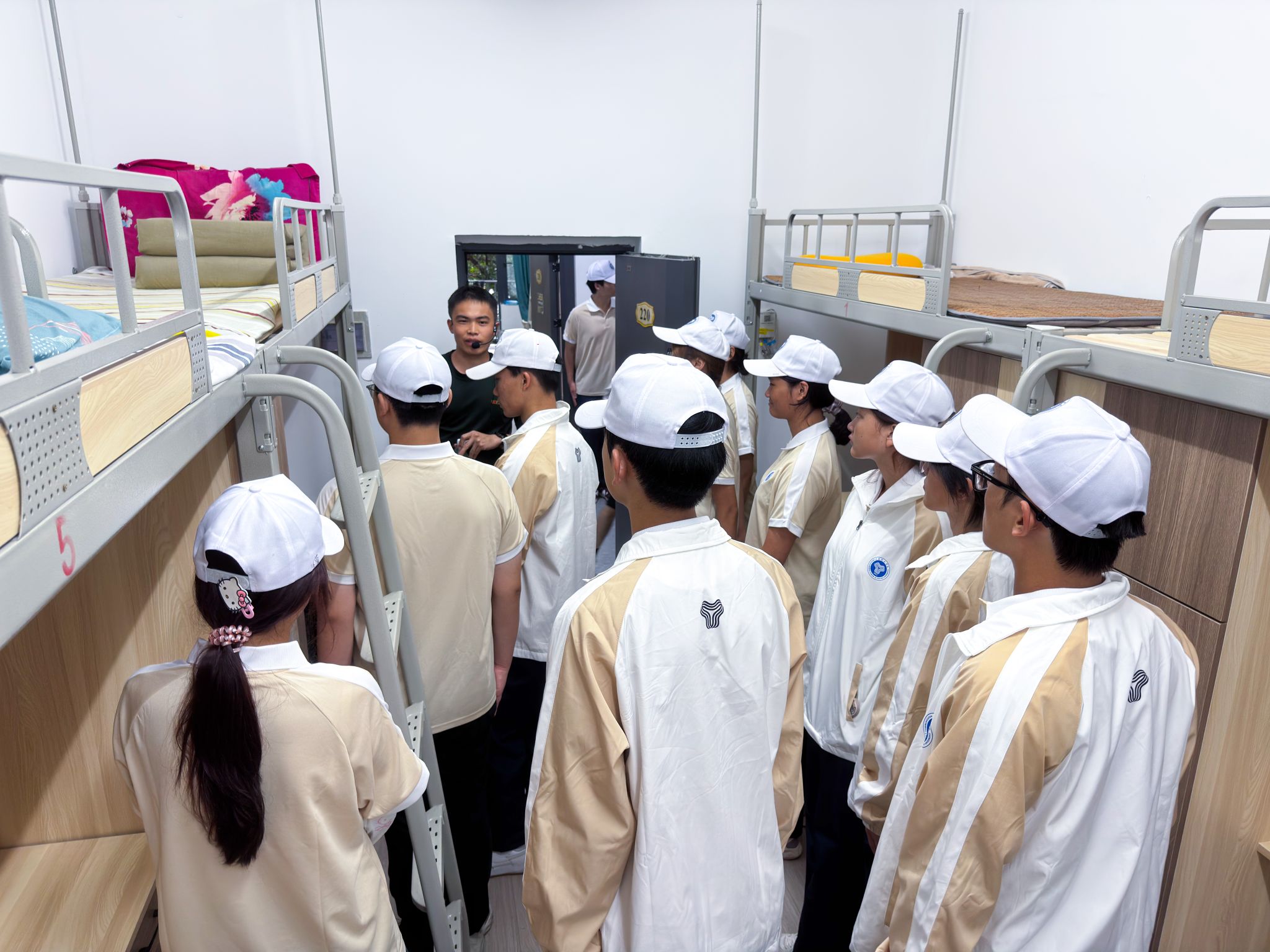 大赛覆盖2025级全体新生寝室,共计60余间寝室、近400名学生参赛。活动分为示范教学、线上展示和评比表彰三个环节。参赛寝室提交规范内务照、寝室合影照和创意照,评委从被子、物品、卫生到整体氛围四个维度打分,评选出一、二、三等奖。优秀作品在校内平台展示,形成“人人有责任、寝寝有榜样”的示范效应。