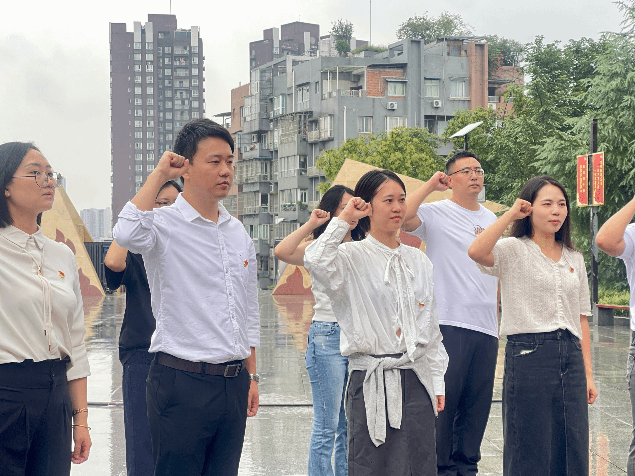 “我志愿加入中国共产党……”雨中的誓言铿锵有力,党员们凝视着党旗上的镰刀锤头,目光坚定如铁——这既是对入党初心的回望,更是向英烈许下的“接力承诺”。