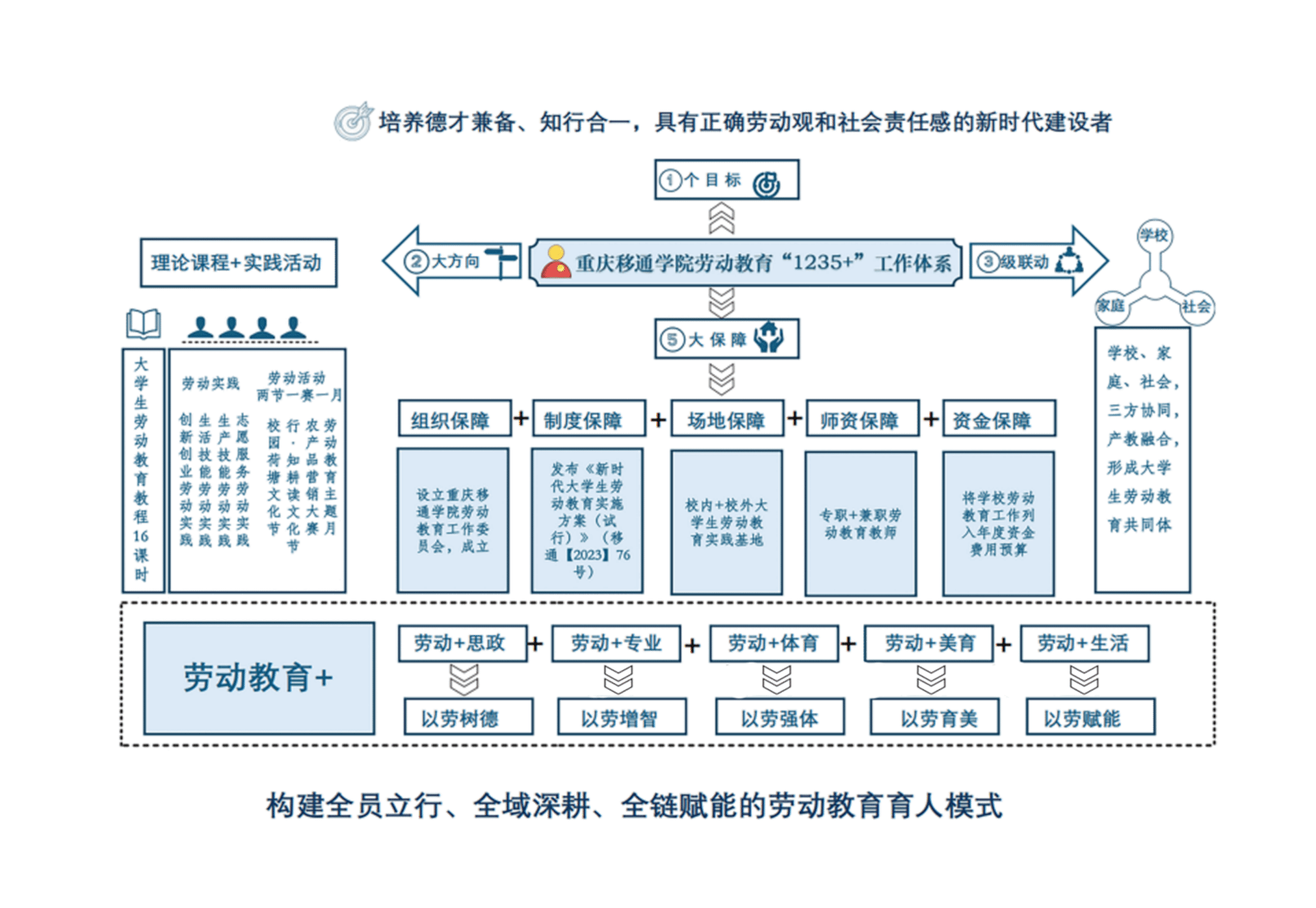 道阻且长,行则将至。我校劳动教育课程建设已按下“加速键”,后续学校劳动教育工作委员会办公室将持续完善全校劳动教育的顶层设计与体系脉络,积极拓宽视野,定期邀请劳动教育领域资深专家进校指导,博采众长,融汇创新;进一步细化对劳动教育课程师资的“专业化”、“专家化”培训,落地相关激励措施;进一步优化“重庆移通学院劳动教育1235+工作体系”,做大成果,提高声誉;让劳动教育切实成为助力学生成长的“助燃剂”,全力打造具有移通特色、深受学生喜爱、育人成效显著的劳动教育品牌,为培育肩负民族复兴使命的时代新人输送更多劳育动能。