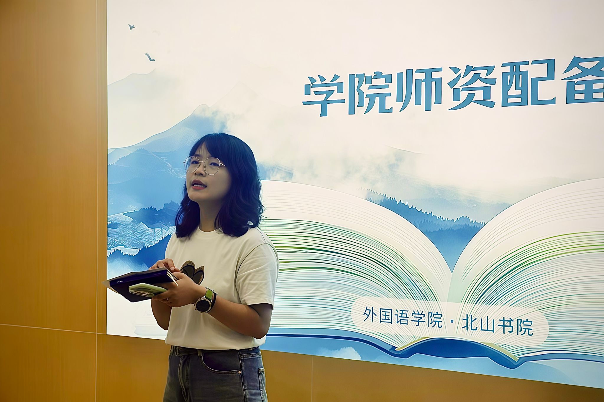 最后,马喆书记上台致辞,强调了外国语学生坚持晨读的重要性,肯定了北山书院学业支持中心作为学院教学延伸载体的重要性。马书记结合外国语学院“语言导向”特色与北山书院红色文化资源,提出“夯实语言基础,提升专项技能”鼓励教师参与晨读领读、学生主动利用中心资源,共同将学业支持中心打造成助力学生语言能力提升与全面发展的优质平台。