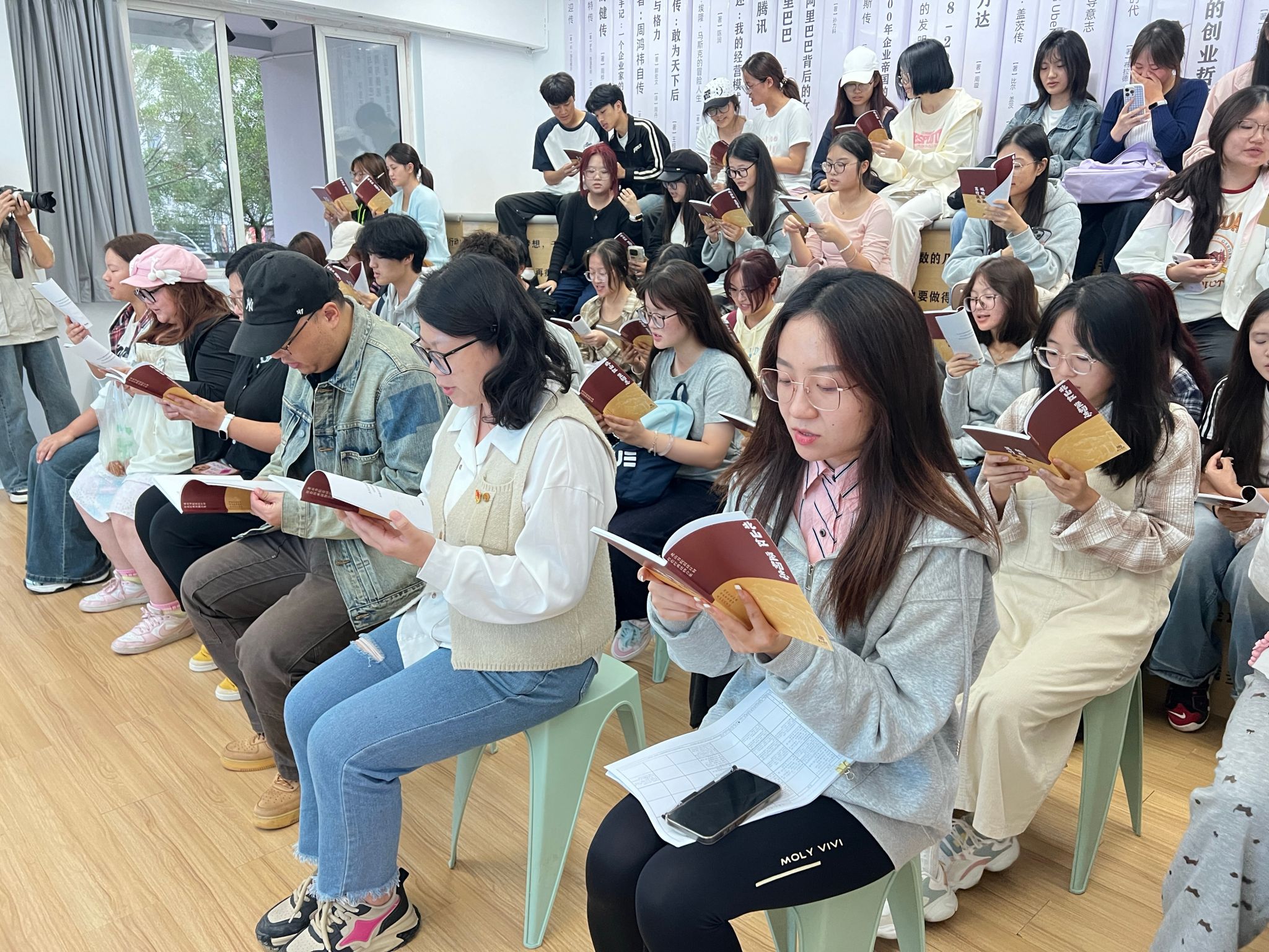活动现场,师生们手捧诗集《北山红·坚韧志》,齐声诵读《囚歌》《七律·长征》等红色经典篇目,激昂顿挫的声浪裹挟着革命先辈的理想情怀,在空间内久久回荡,让文字中的信仰力量跨越时空,直抵在场每一位师生的心灵深处。