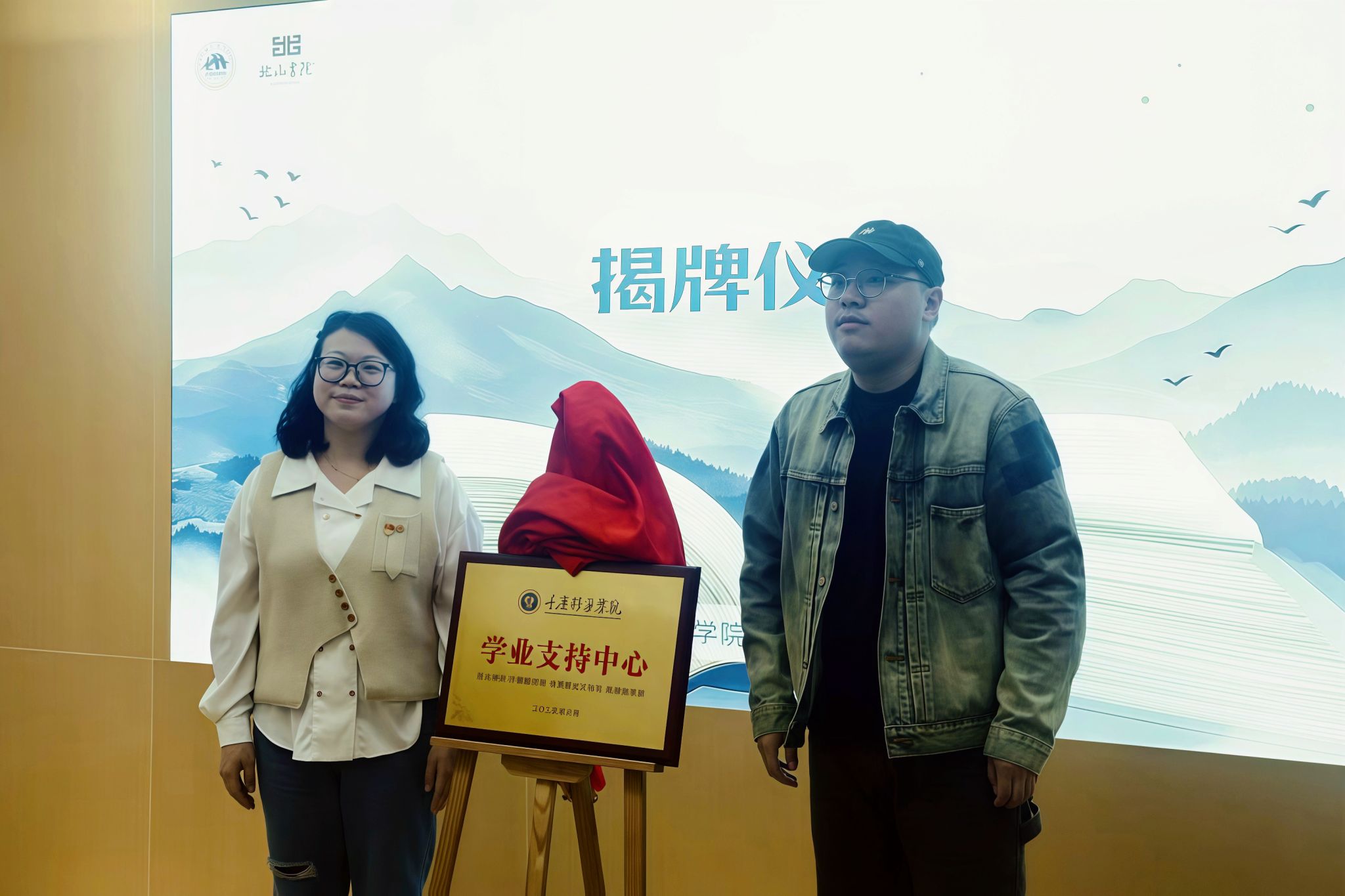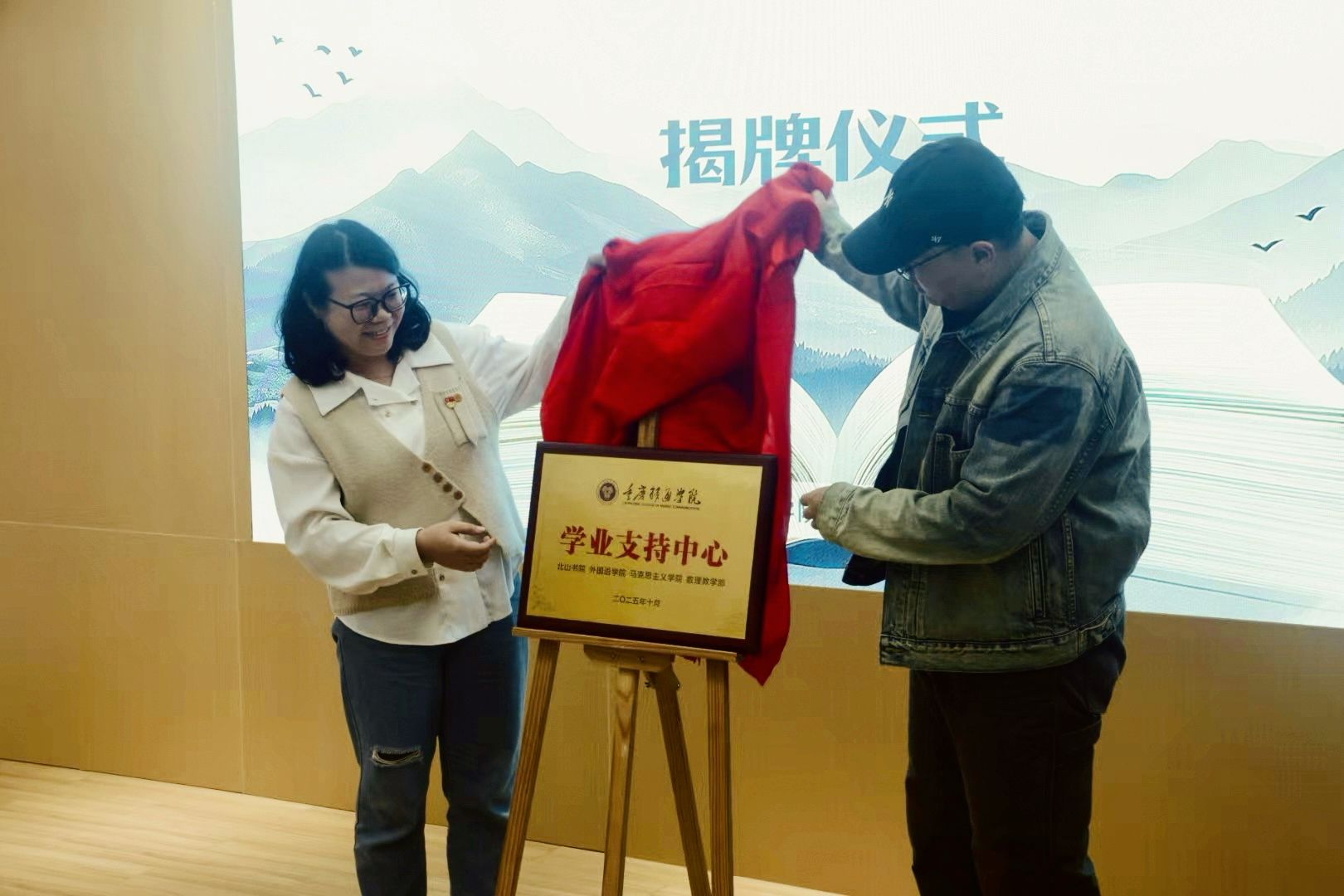 马喆书记与黄新燕老师共同为学业支持中心揭牌,标志着“书声破晓·笃学致远”晨读计划正式启动与学业支持中心的落地,是重庆移通学院探索“文化浸润+学业赋能”育人路径的生动实践,将助力学生在书香与专业服务中涵养学风、成长成才。