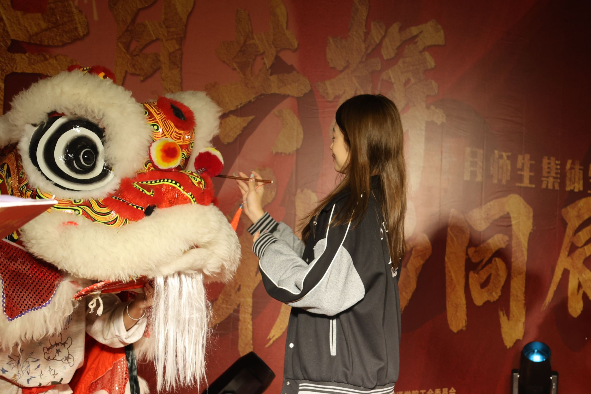 暮色初合,华灯初上。晚七时许,寿星师生们在悠扬的国风雅乐中陆续入场。于入口处依古礼行“沃盥”之仪,清水涤尘,诚心净意,象征着以一颗澄澈明净之心迎接佳辰。顷刻间,锣鼓喧天,气势恢宏,一场精彩的醒狮表演将现场气氛瞬间点燃。在庄重的点睛环节,寿星代表张旭老师和田雲鑫同学手执朱砂笔,为祥狮赋予灵气与生命。“一点左眼,灵气满身;二点右眼,福气盈门!”伴随着洪亮的祝祷,被点亮的瑞兽腾挪起舞,将吉祥与喜庆洒满现场的每一个角落,也正式拉开了生日会的华彩序幕。