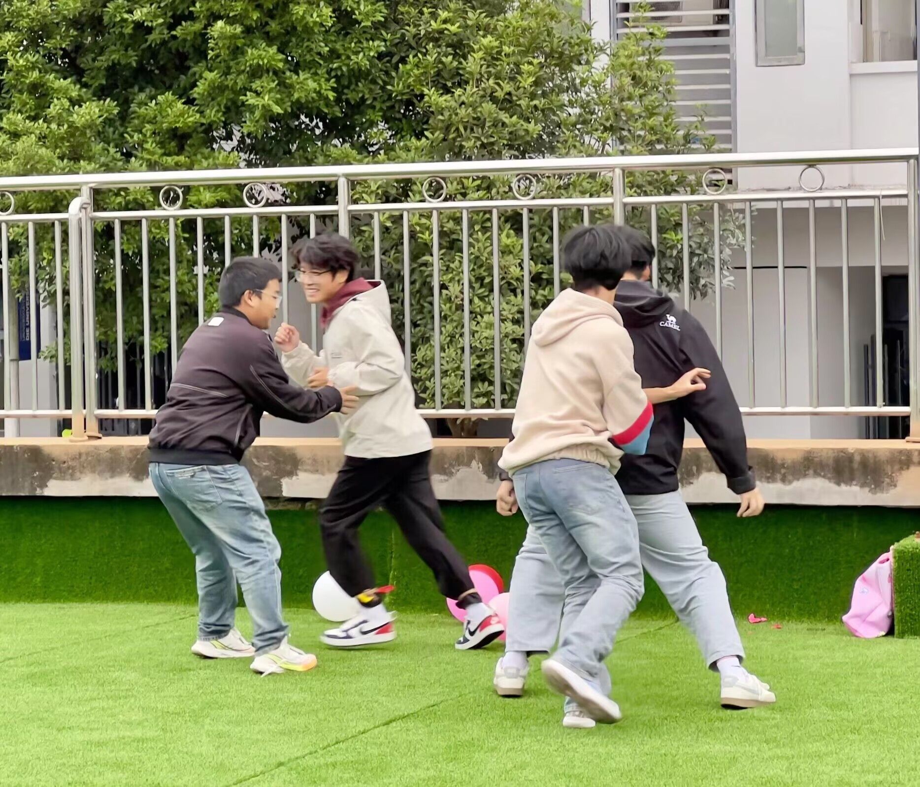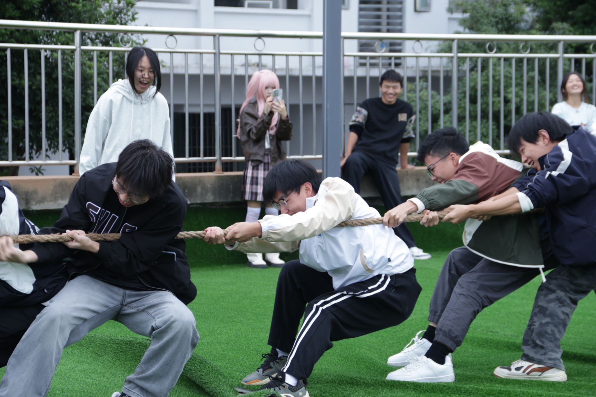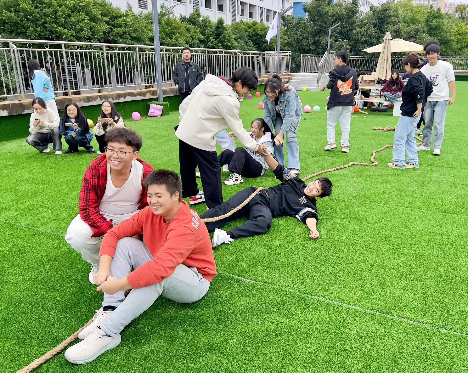 “还差五毛!男同学快来一个!”清脆的喊声划破空气,“桃花朵朵开”游戏瞬间点燃全场,大家快速跑动调整站位,欢笑声此起彼伏,破冰仪式就此拉开序幕。