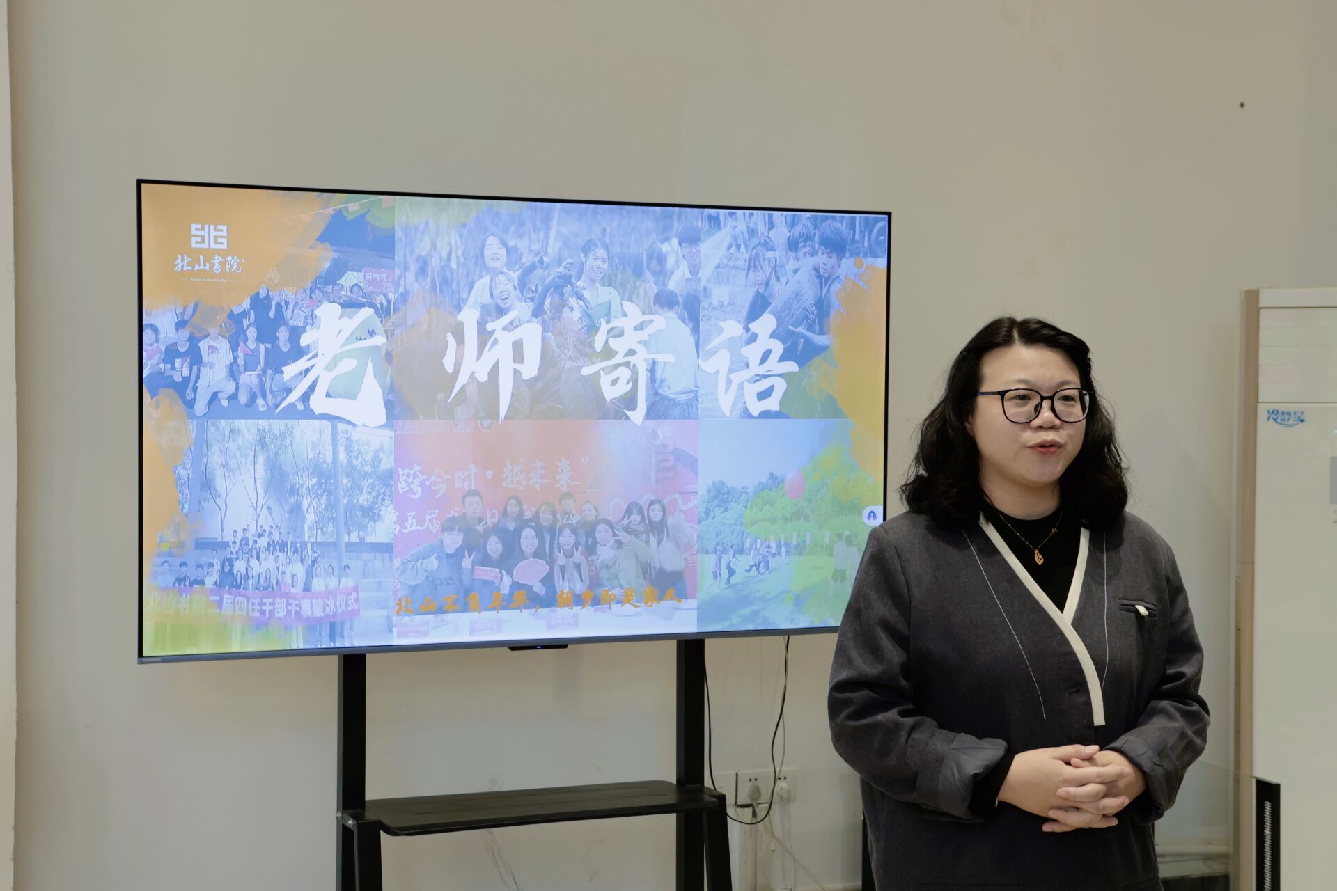 “北山的‘坚韧’,从不是蛮干,是认准目标后的咬牙坚持,是遇挫时的不肯退缩。”书院大家长黄新燕老师话语温和却充满力量。她分享往届学生“从屡屡碰壁到突破自我”的故事,轻声叮嘱:“书院是连接家庭与宿舍的温暖纽带,你们会在这里结识并肩伙伴。未来或许有难走的路,但身后有北山这个‘家’,就没有跨不过的坎。”暖流般的话语,为新团队注入了前行的底气。