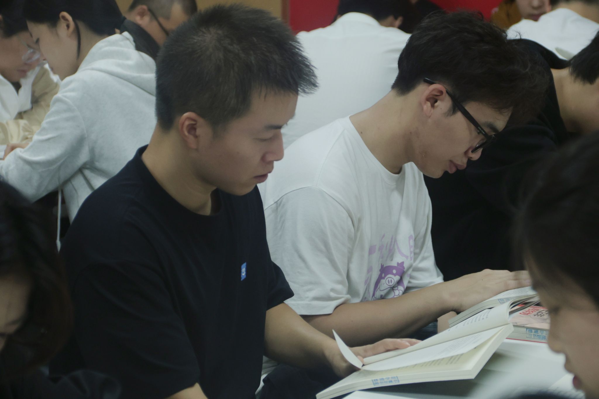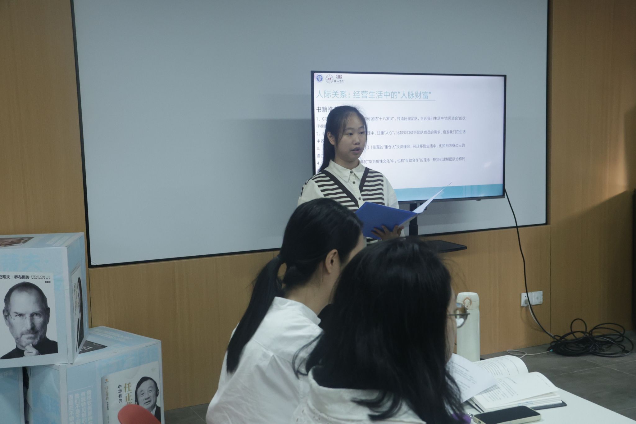 活动伊始,主持人引导同学们暂别电子设备,开启30分钟无干扰沉浸式阅读——这既是对书香校园“专注治学”理念的践行,也为学子提供了在文字中沉淀思考的空间。阅读过程中,同学们聚焦传记中大咖的人际经营细节:从马云凝聚十八罗汉的团队搭建智慧,到彭蕾“倾听需求、关注人心”的管理艺术,再到任正非华为狼性文化里的协作共生理念,每一段文字都成为链接大咖经验与校园生活的桥梁。