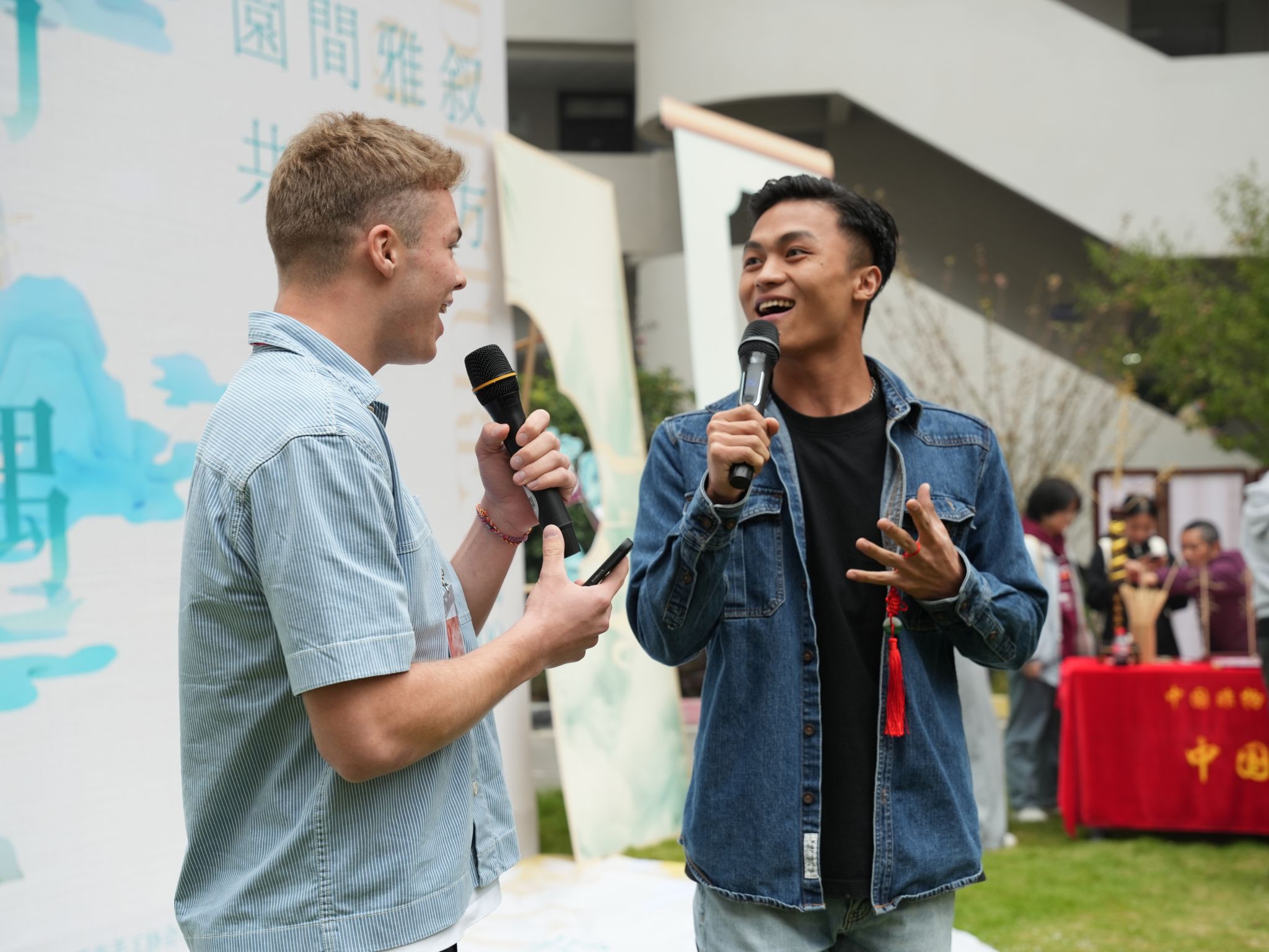 草坪舞台上,武术表演“龙腾虎跃”的刚劲招式,让外国学子频频举起手机记录;古筝婉转的旋律里,中外师生轻拍节奏,沉浸在丝竹雅韵中;中国戏法的“巧思”,更是引来德国游学团师生的阵阵惊呼。此刻,中国文化不是书本里的符号,而是跃动在眼眸、指尖、耳畔与舌尖的鲜活温度。