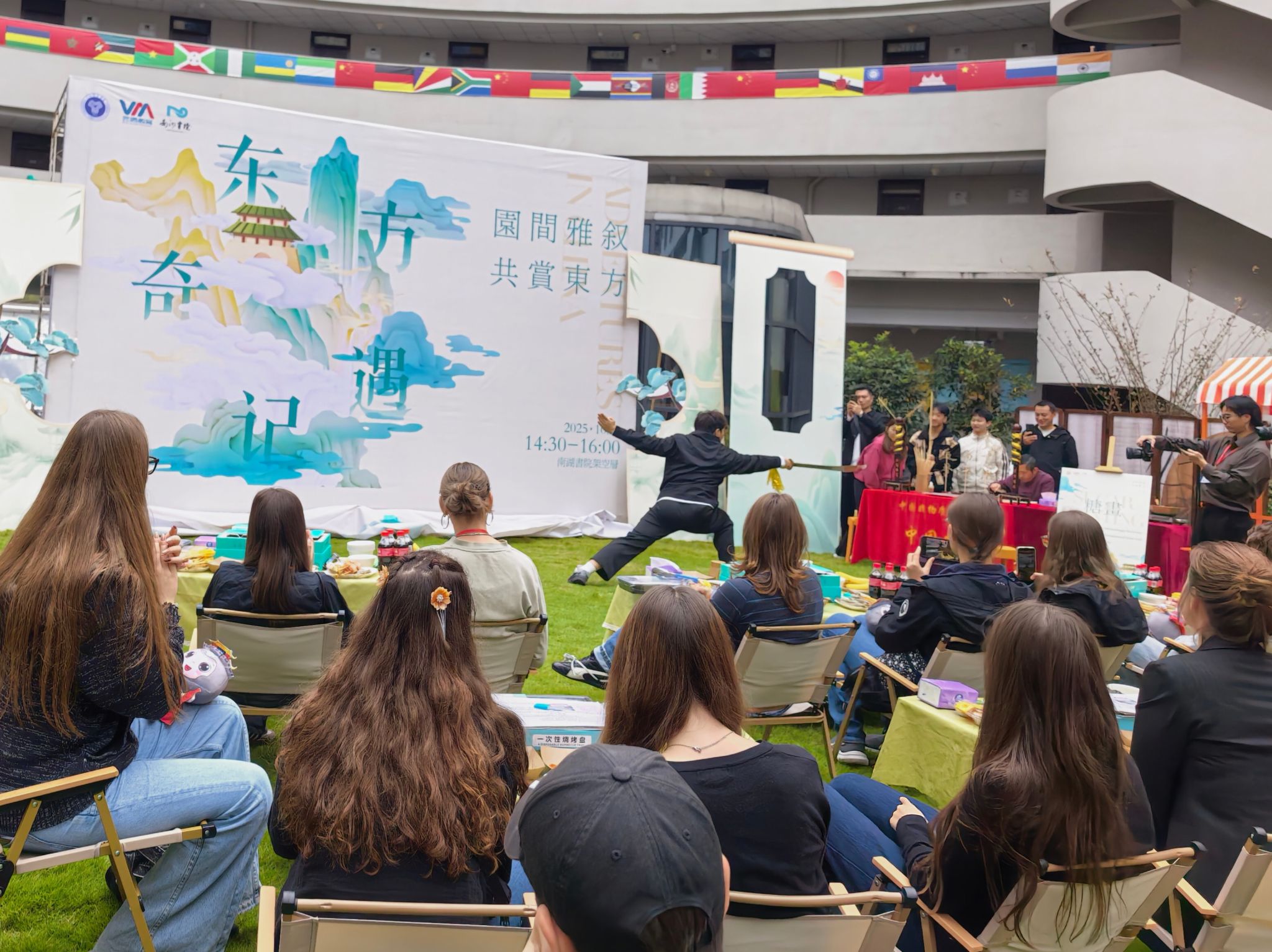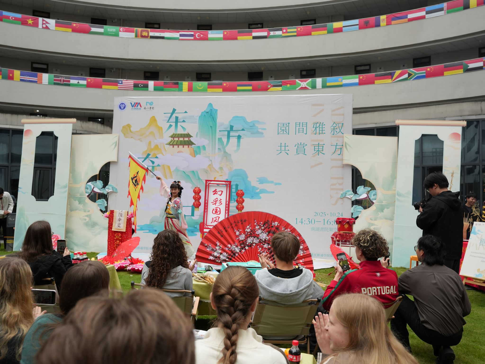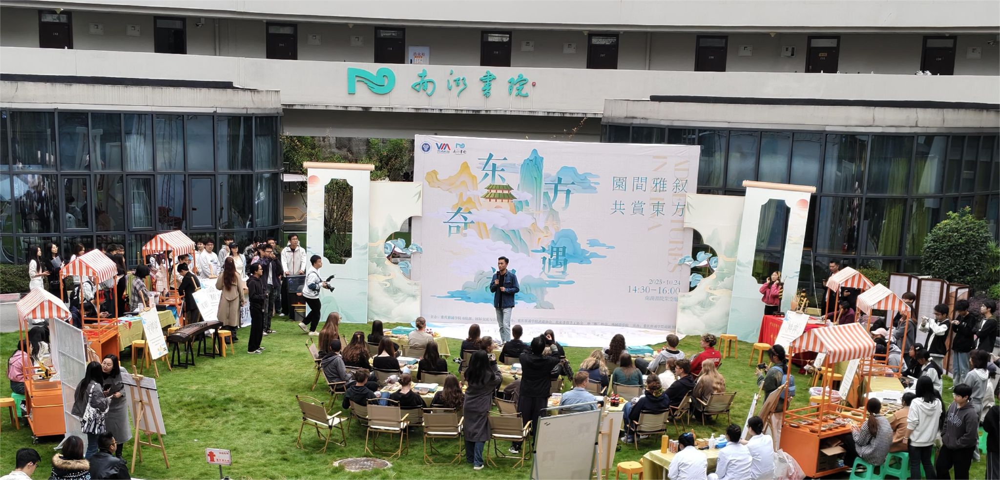 合川桃片的清香裹着糖画的甜蜜,传统文化表演伴着中外学子的交流声——10月24日下午,在南湖书院草坪上,由重庆移通学院书院部和国际交流与合作处主办,南湖书院、合川“三民斋”桃片公司、合川区中医院承办,鱼城书院、天空书院、外国语学院、钓鱼城科幻学院、武道协会、炫彩手作手工协会、冲“雅”协会等协办的“东方奇遇记——园间雅叙,共赏东方”中外文化交流活动隆重举行。重庆移通学院各书院、学院、社团与德国ASG公益教育集团游学团27名外籍师生深度交流,以体验为纽带,在沉浸式互动里触摸东方文化肌理,让跨文化的共鸣在书院悄然生长。
