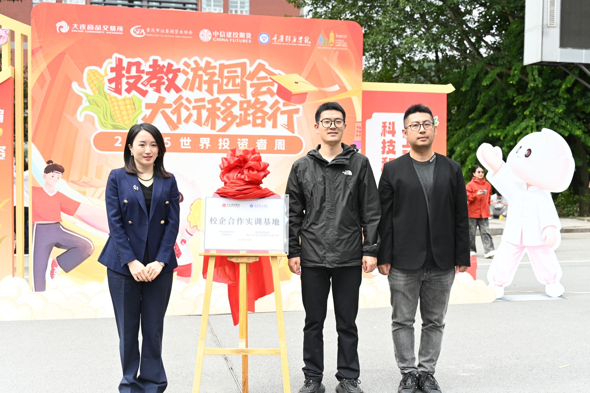 活动启动仪式上,重庆移通学院保卫处处长彭洪、中信建投期货投教基地负责人蔡颖分别从校园安全管理与投资者教育角度提出对于校企深度融合的探索。随后,通信与信息工程学院党总支副书记熊斌、鱼城书院综合办主任金鑫与蔡女士共同揭牌“校企合作实训基地”,为培养具有专业技术背景的高情商经营管理人才提供专业平台及资源的条件保障。
