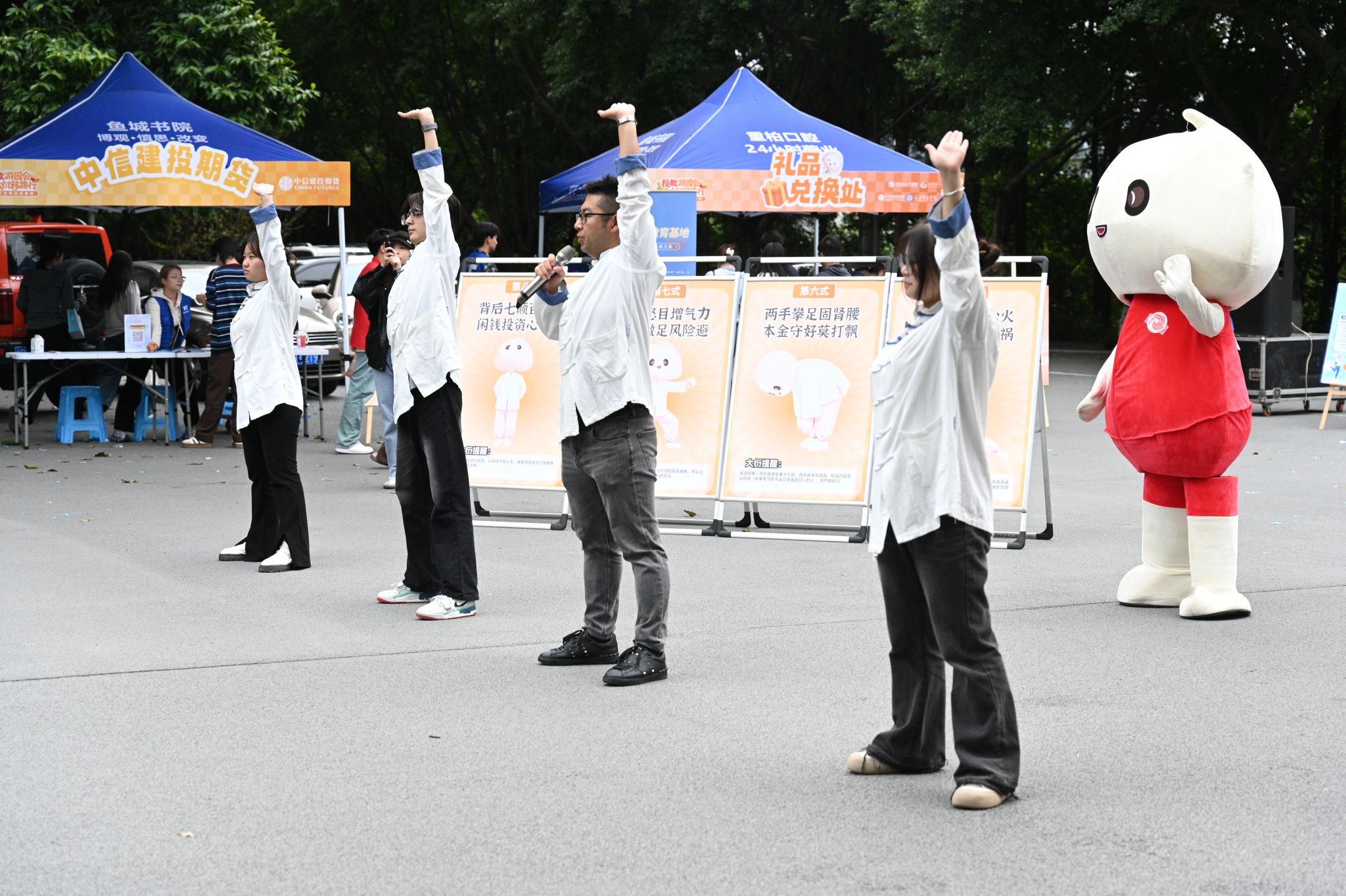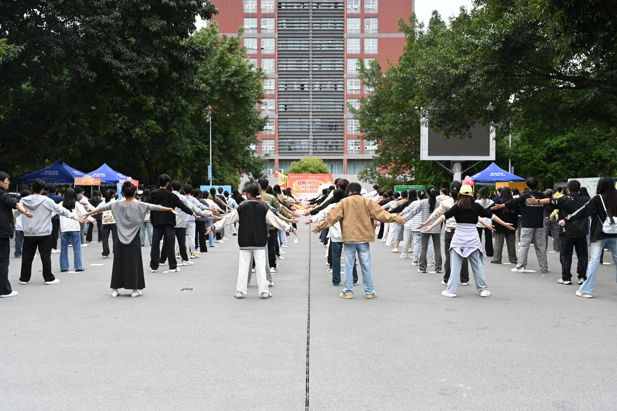 作为中国传统养生功法,百人八段锦开展过程中,师生动作整齐划一,配合“两手托天理三焦,分散投资风险消”“调理脾胃须单举,高息诱惑要远离”等融合投教知识的口诀,实现运动健身与知识记忆相结合的双重效果。