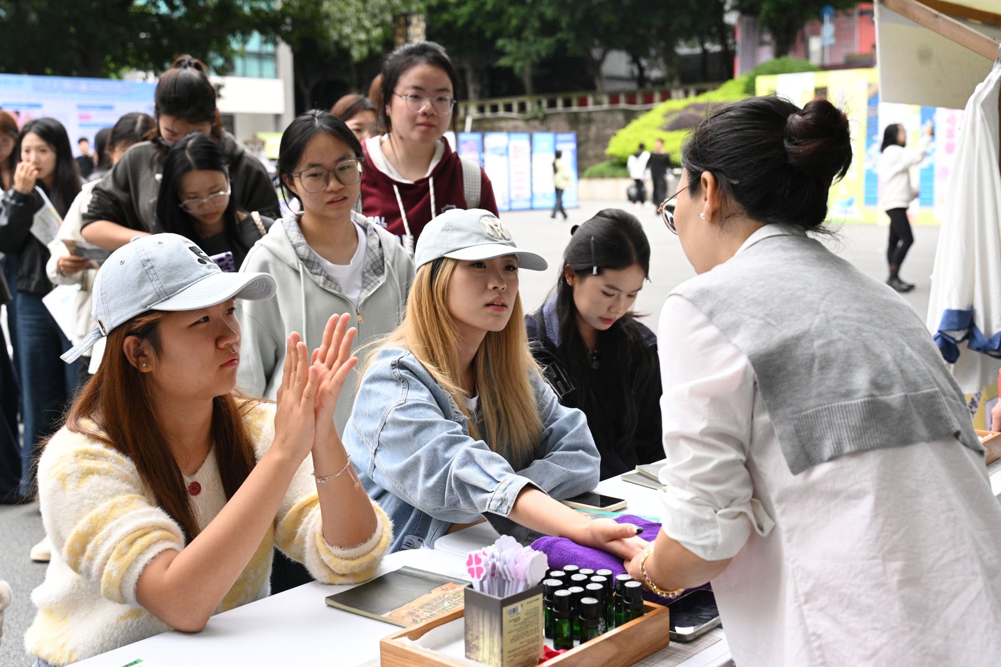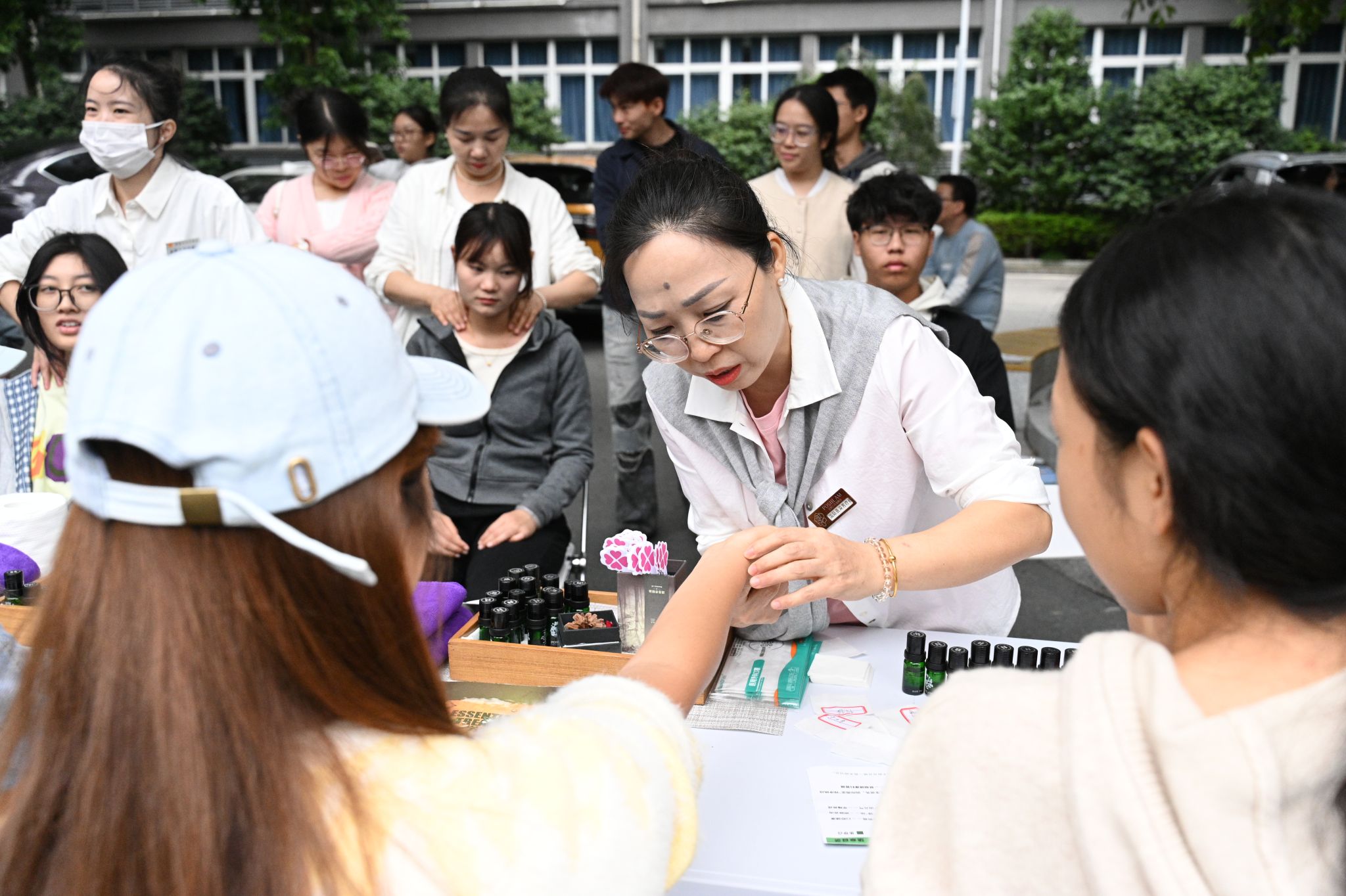 合川宏仁医院医生现场把脉面诊,为师生提供健康咨询和日常皮肤管理建议。宝琪兰精油芳疗师带来天然精油按摩,温润的香气伴着专业手法,既精准疏通久坐僵硬的肩背经络、缓解肌肉酸痛不适,又以自然芳香舒缓日常焦虑情绪,实现身体劳损修复与心理压力释放的双重呵护,让师生在芳香疗愈的沉浸式体验中,切实感受生命健康教育“身心同养”的温暖传递。通过早睡打卡引导师生养成规律作息,让健康习惯融入日常。