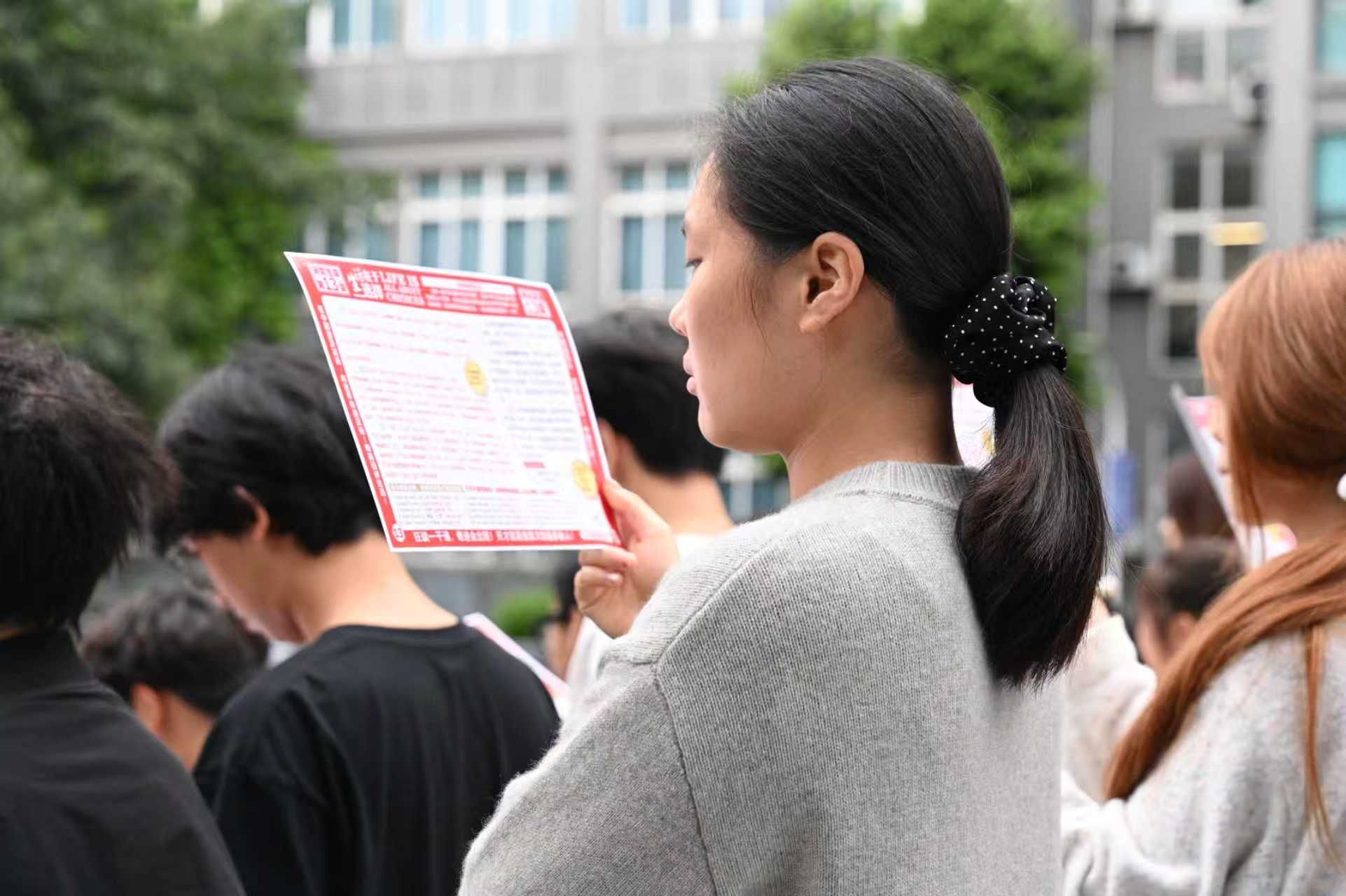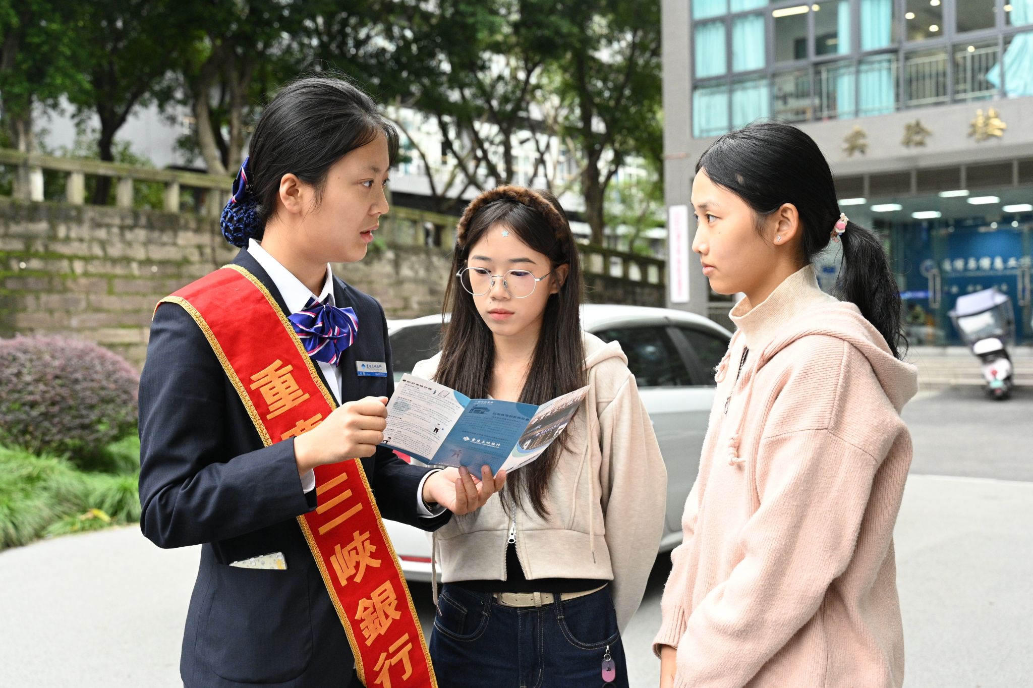 合川区人民法院“车载便民法庭”进入校园,开放法庭空间供学生参观,播放反诈案例宣传片,让学生近距离感受司法庄严。重庆三峡银行工作人员通过“反诈拒赌”案例讲解,提升学生支付安全意识。此外,金融求职答疑屋中,中信建投工作人员为有金融从业意向的学生解答行业前景、简历优化等问题,实现法治教育和职业规划的有机延伸。