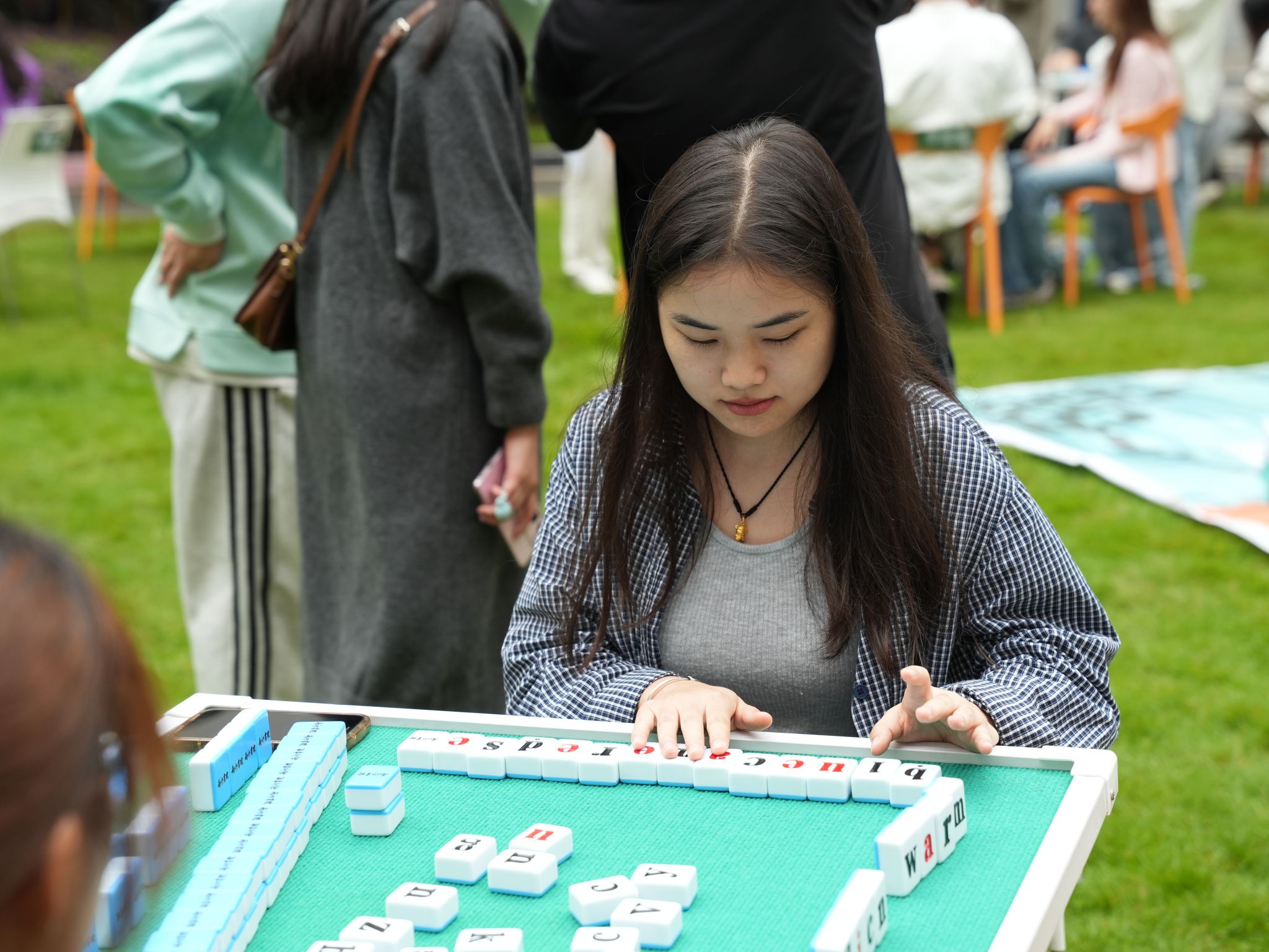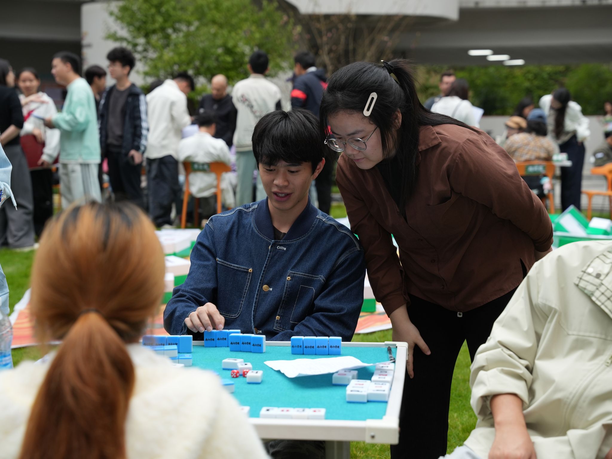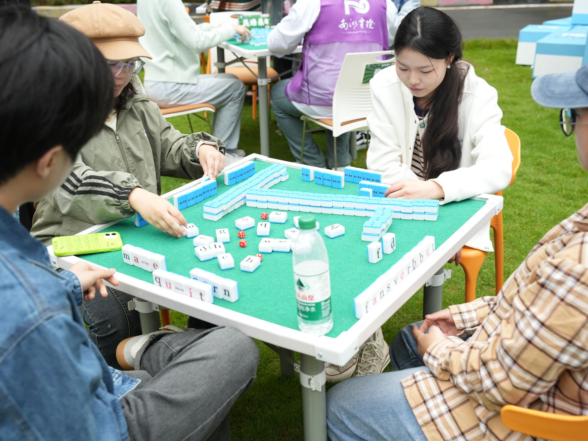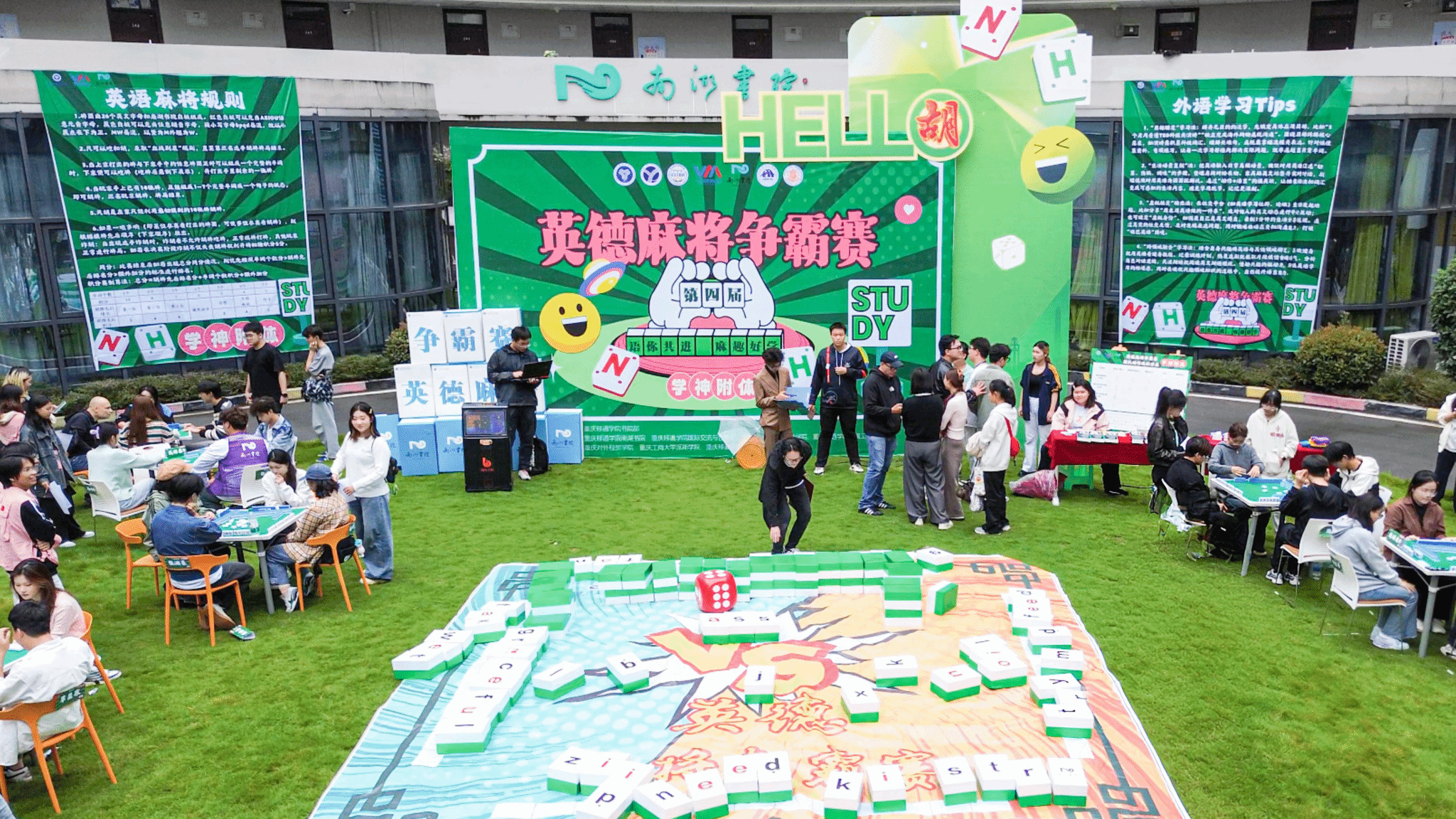 秋光潋滟,绿草如茵。2025年10月17日下午,由重庆移通学院书院部主办,南湖书院、国际交流与合作处、外国语学院、德国工程学院共同承办,重庆对外经贸学院、重庆工商大学派斯学院、重庆移通学院冲“雅”协会协办的“‘语’你共进·麻趣好学——第四届英德麻将争霸赛“在南湖书院空间内欢乐开赛。重庆移通学院、重庆对外经贸学院、重庆工商大学派斯学院,三校师生齐聚南湖书院,以“英德麻将”为独特媒介,将外语学习、团队协作、思维竞技与社区文化交流巧妙融合。不仅是高校“一站式”学生社区建设的生动实践,更是新时代青年自觉锤炼国际影响力、涵养从容大国自信的精彩亮相。