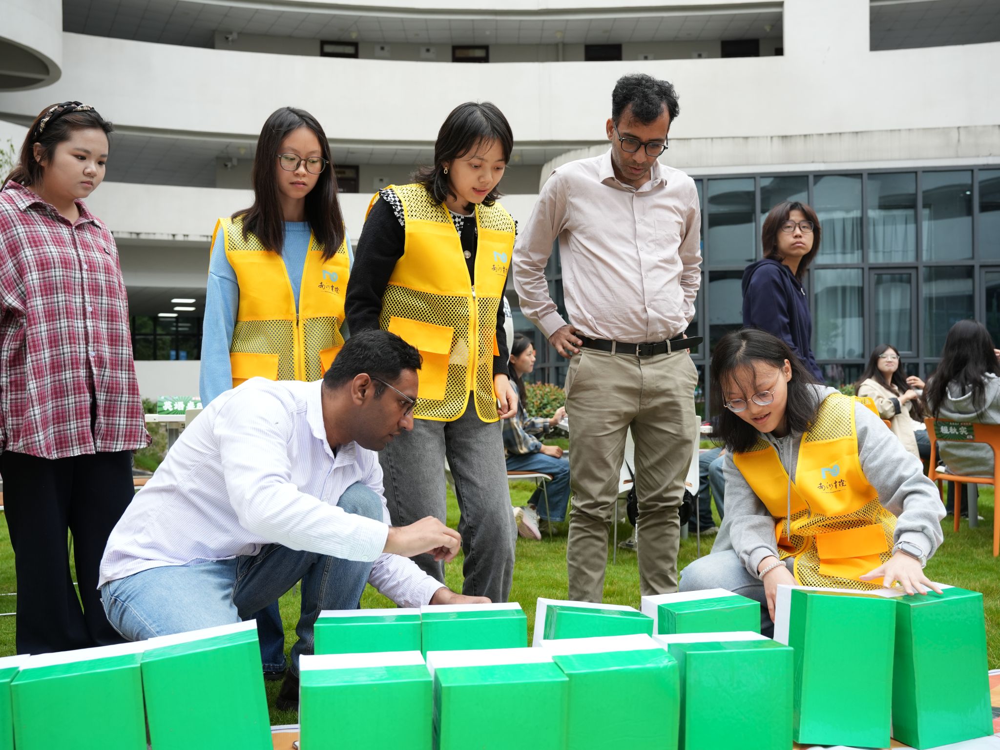 骰子掷下,欢呼响起——由重庆移通学院、重庆对外经贸学院与重庆工商大学派斯学院三校师生与外教留学生代表队共同参与的团队PK赛火热开战!