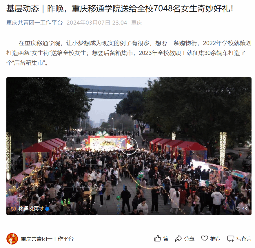 基层动态|重庆移通学院送给全校7048名女生奇妙好礼!