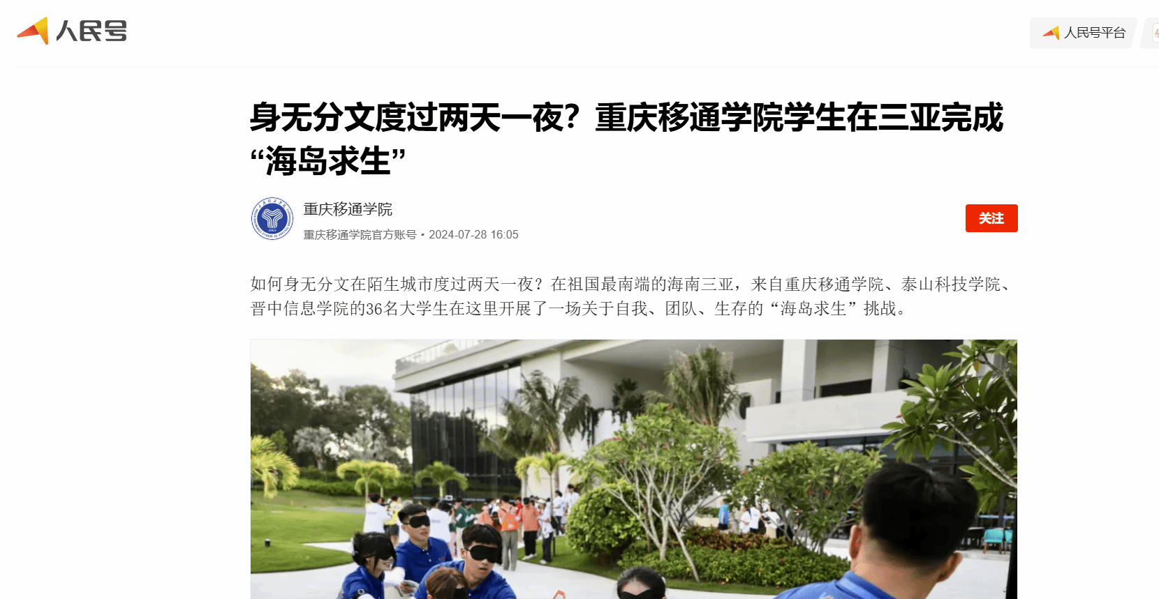 网易新闻:身无分文度过两天一夜?重庆移通学院学生在三亚完成“海岛求生”