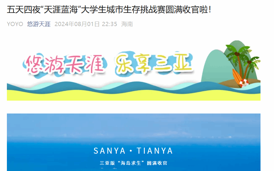 三亚市天涯区旅游和文化广电体育局:五天四夜“天涯蓝海”大学生城市生存挑战赛圆满收官啦!